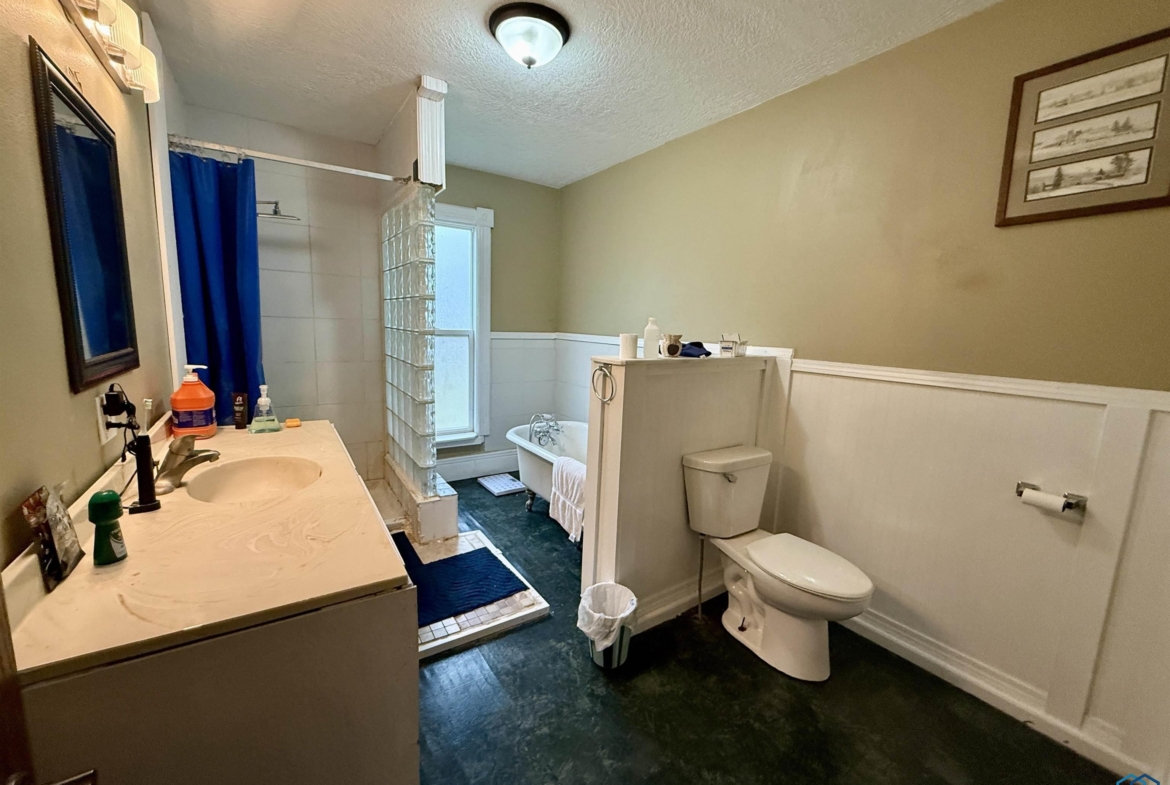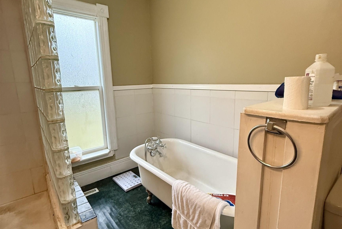 Full Bath | Main | 8' x 12' 5" | Claw foot tub, Vinyl |