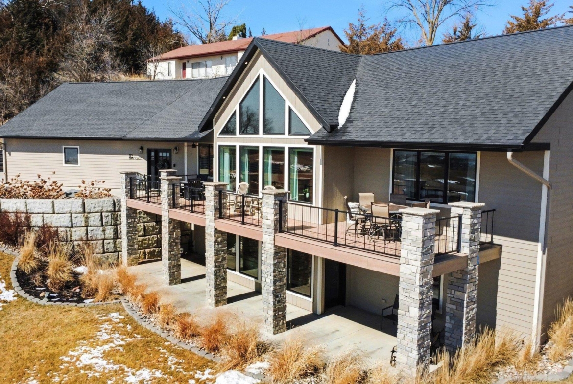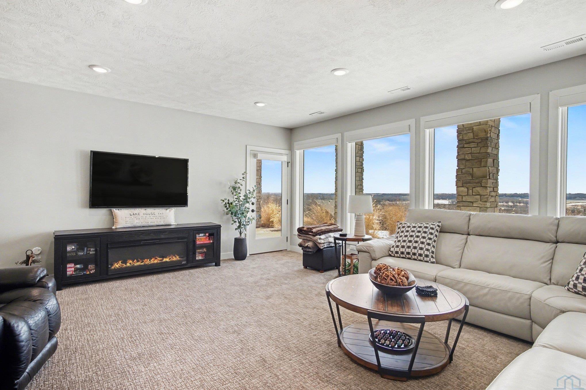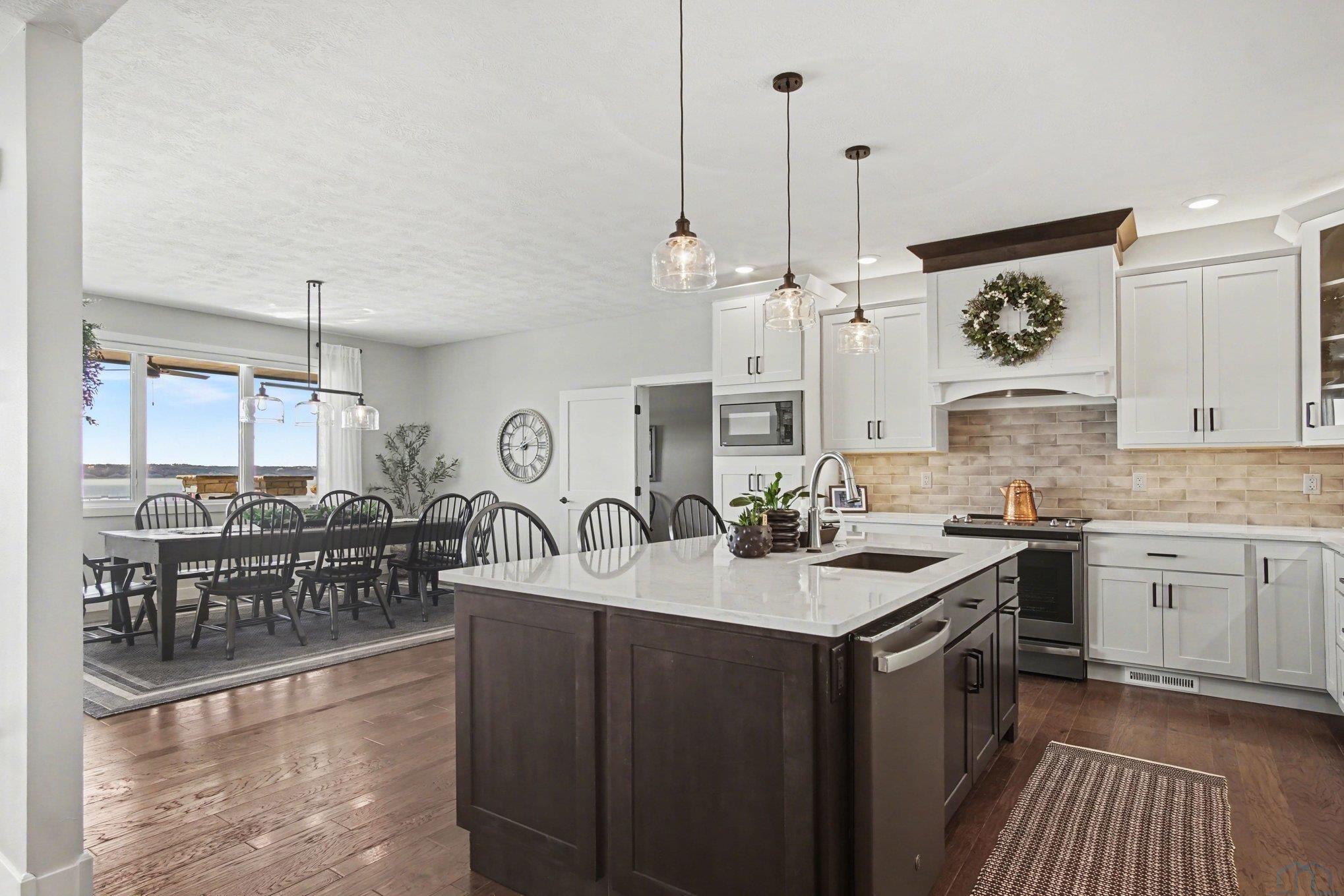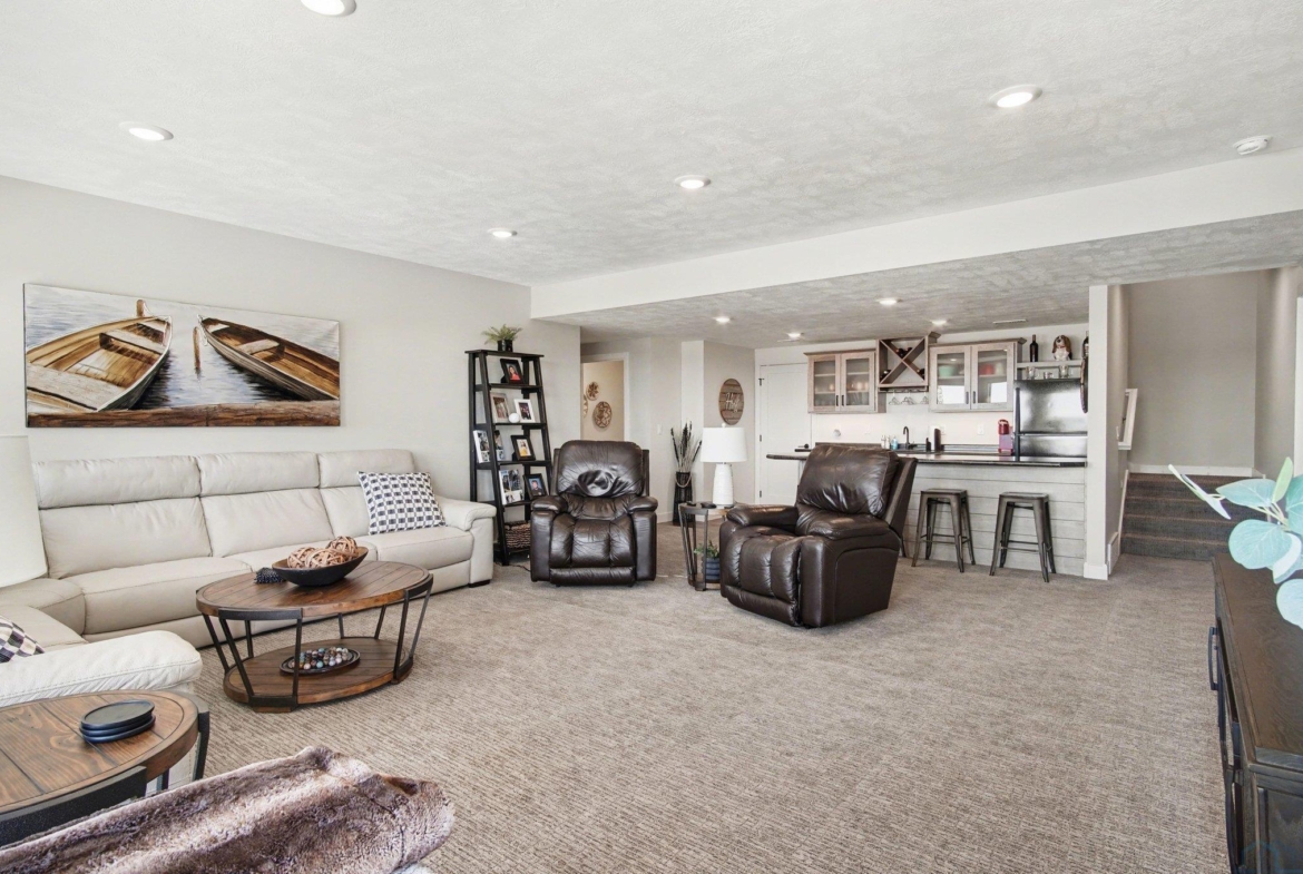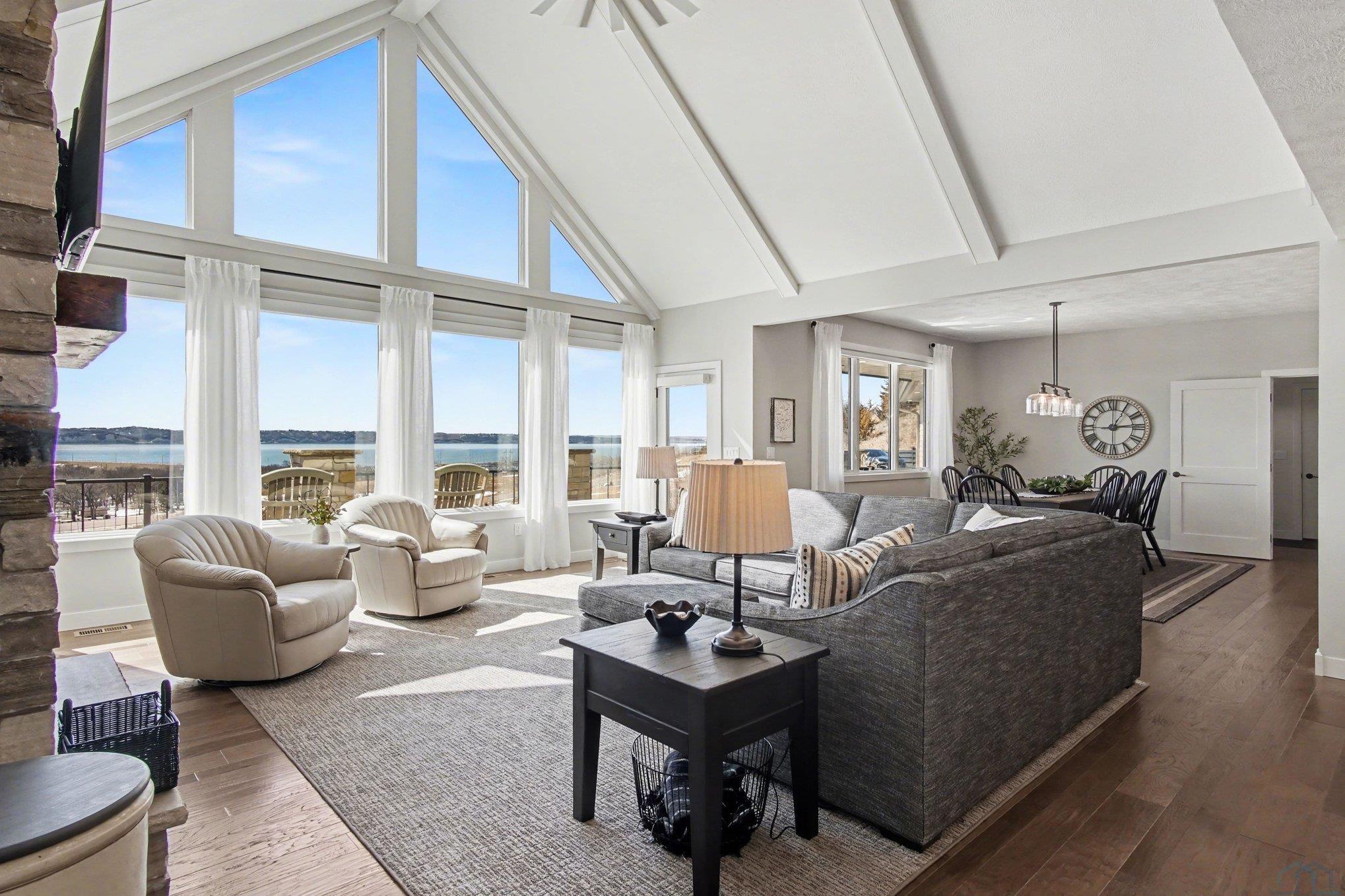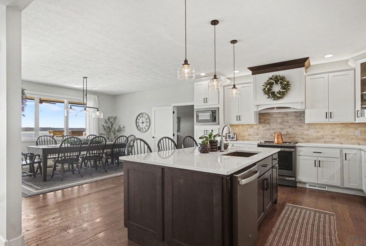 EXPERIENCE refined living in this beautifully crafted home set on approximately one acre in the desirable lake area. Offering over 4,300 finished square feet, this spacious residence features four bedrooms and four bathrooms with a thoughtfully designed layout that blends comfort and style. SPECTACULAR lake views The main level offers invited living space with stone fireplace and showcases an open living space that flows seamlessly into the kitchen and dining area, highlighted by a large center island. The private primary suite offers a well-appointed bath, spacious walk-in closet with convenient main floor laundry. The finished walkout lower level expands the living space with additional bedrooms, bathrooms, and a generous family room complete with a wet bar—perfect for entertaining or hosting guests. Additional highlights include a heated attached garage with over 1,400 square feet, underground sprinkler system, and scenic water views. This impressive property offers modern construction, exceptional space, and a prime location near the lake.