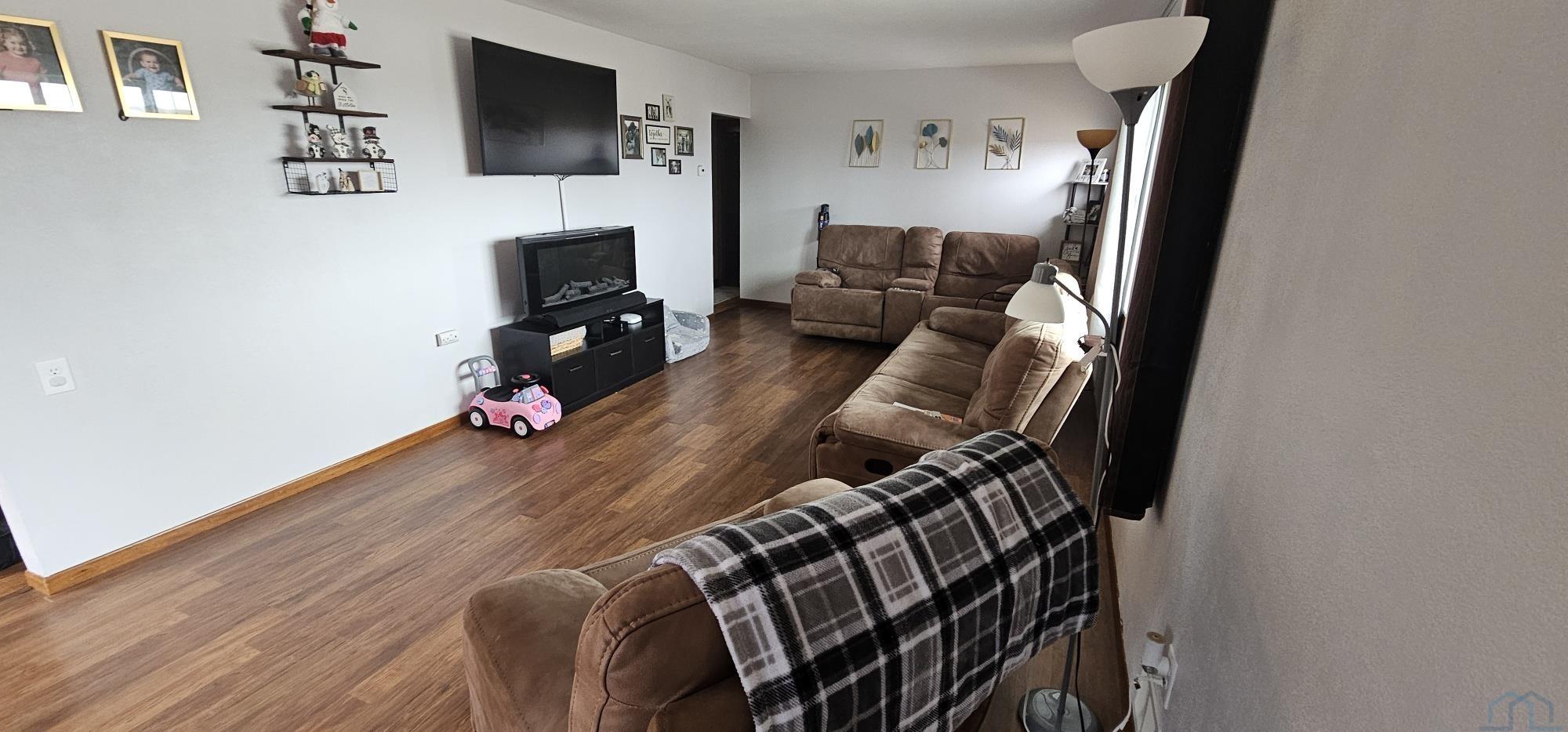Adorable Lake Cottage with Walkout Basement & Scenic Views This charming lake cottage offers 2 bedrooms and 1 bathroom with a walkout basement featuring a family room and bonus room—perfect for extra living space, guests, 3rd bedroom (NO EGRESS) or a home office. Main floor features roomy living room (NEW flooring 2024) and open concept dining to kitchen. Tuck under garage and extra space workshop room with convenient access to family room. The home has NOT been affected by flooding and is truly move-in ready with tons of NEW! Featuring NEW exterior paint, NEW front door and NEW front windows, NEW interior paint, NEW roof (2024)and NEW flooring. NEW a/c unit (2025), NEW outlets, NEW vents, NEW showerhead (2024), NEW front windows (2024), NEW kitchen light fixtu.res and NEWLY painted deck. NEW exterior door from basement will be installed. Enjoy peaceful mornings and evenings watching wildlife on the lake and exploring the nearby Adams Nature Preserve, all while being within walking distance to Dakota Valley Schools. A rare opportunity to enjoy lake living, nature, and convenience all in one cozy package