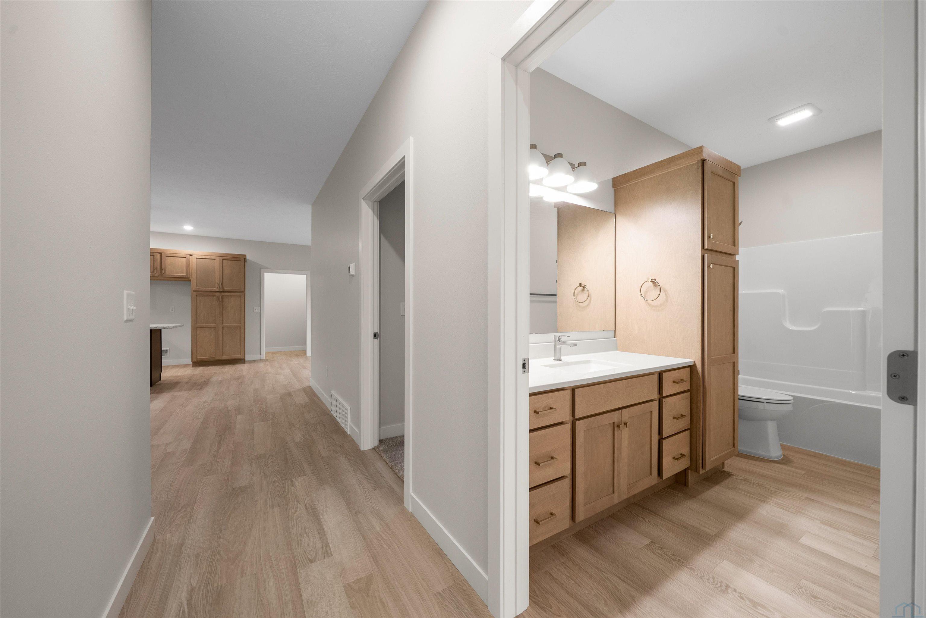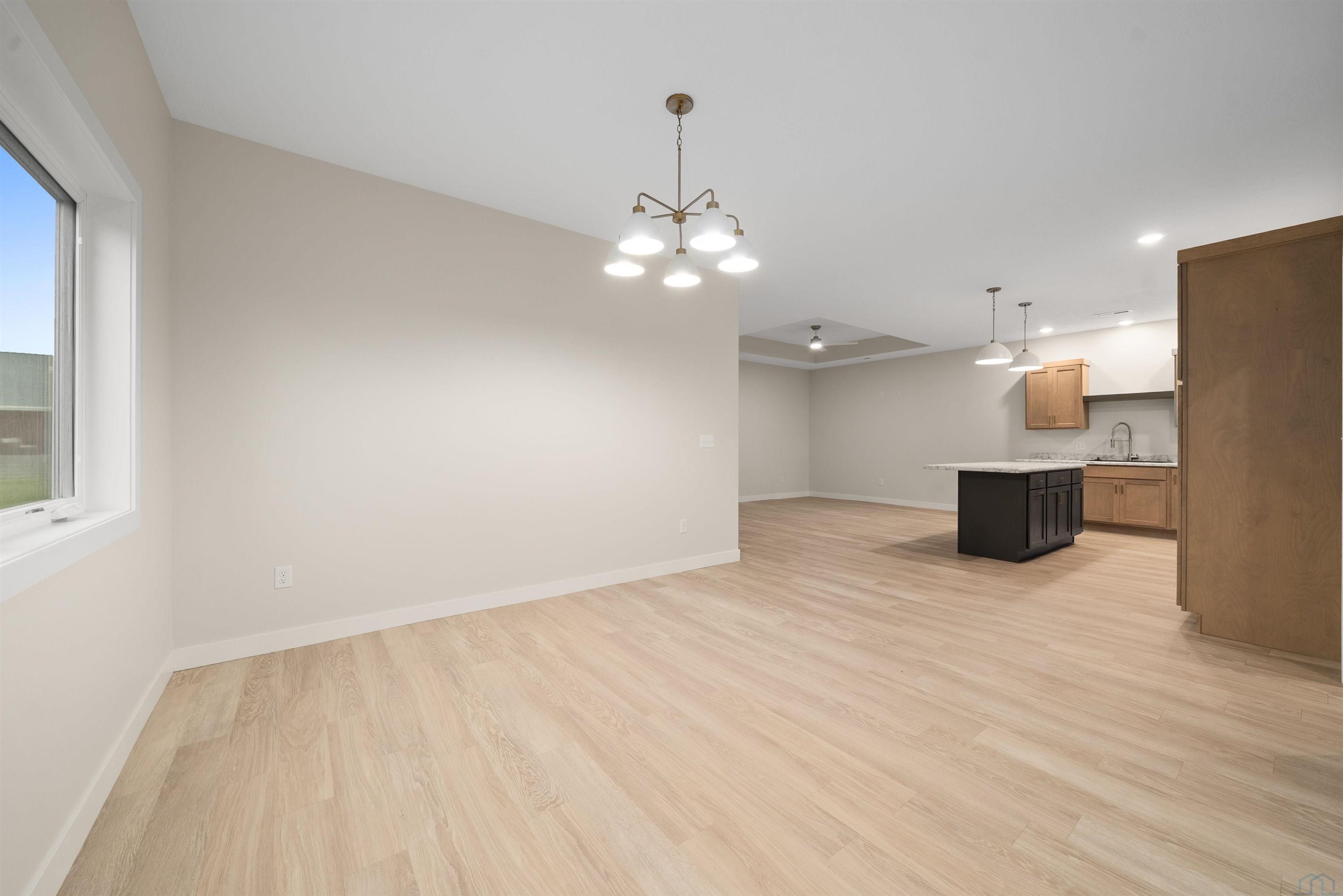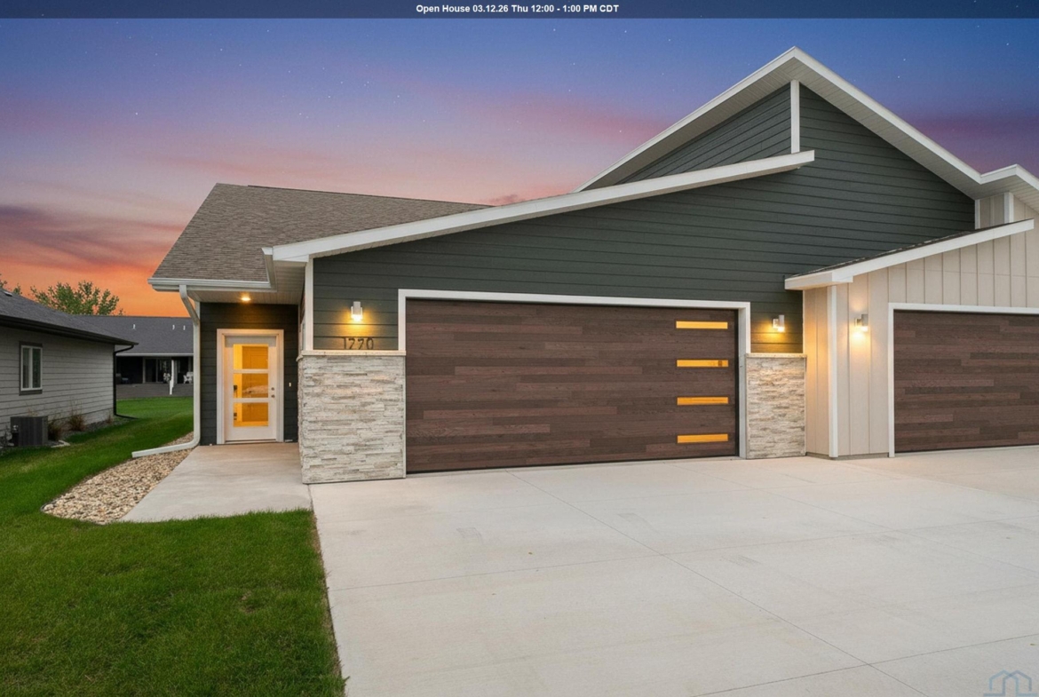 Step into style and comfort with this stunning, brand-new construction twin home, featuring a convenient slab-on-grade design. This home is thoughtfully designed for modern living with an open-concept layout that seamlessly connects the kitchen, dining, and living areas. The kitchen is a chef’s delight, offering abundant cabinetry, a spacious island, and a large pantry cabinet with pull-out drawers—perfect for both everyday meals and entertaining. Throughout the home, you’ll appreciate stylish touches like three-panel doors and a 10-foot tray ceiling in the living room. The main floor laundry room is conveniently located with a pocket door and provides extra storage with additional cabinets and counter space. Your primary suite is a true retreat, boasting a luxurious walk-in onyx shower, double vanities with ample counter space, and a pocket door leading to a spacious walk-in closet. Across the hall, you’ll find two additional bedrooms, both with double closets, and a full bath complete with a linen cabinet. The finished two-stall garage features a modern garage door and a service door for easy access. Outside, enjoy a tasteful patio and a fully landscaped yard with sod and a sprinkler system. This home also includes high-efficiency windows and is prepped for in-floor heating. Located in the beautiful Bliss Pointe development, this quality-built home by AMS Building Systems is a must-see! Interior photos and video are of 1220 side only. Both 1220 and 1222 Zitkala-sa currently available.