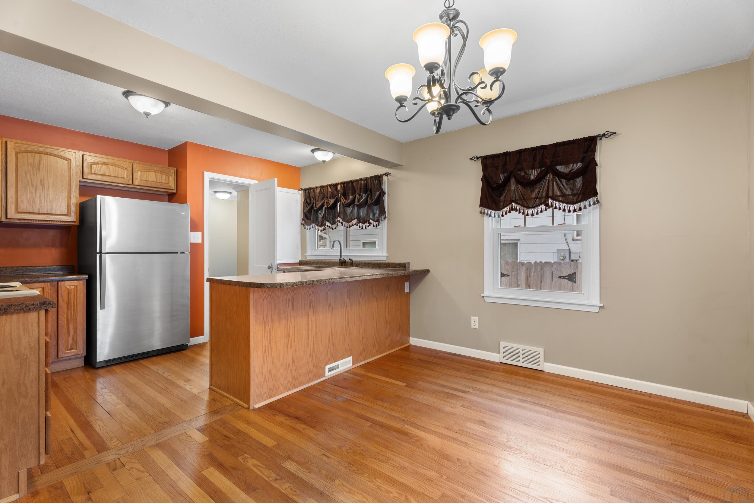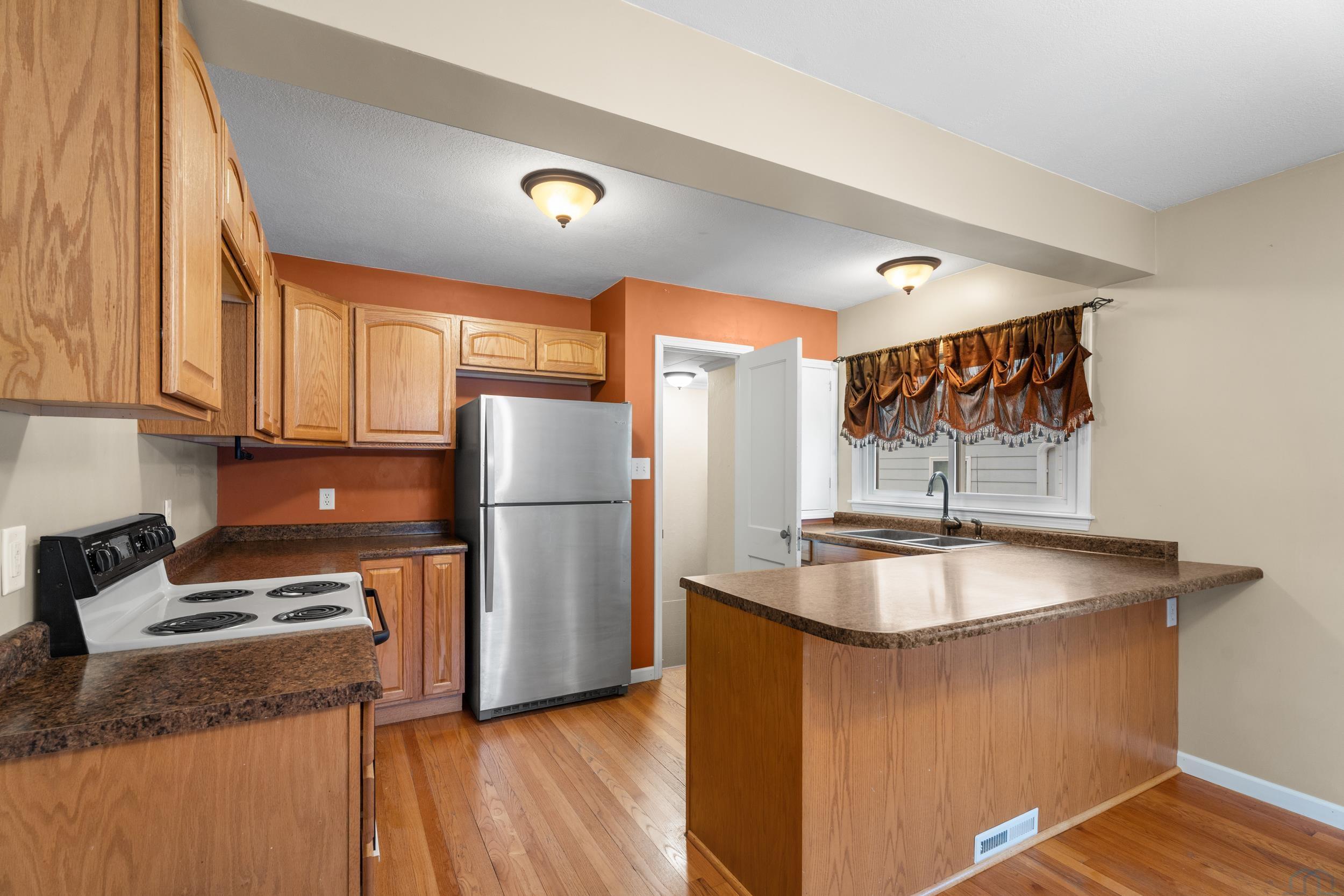 You won’t believe how much space there is in this home by looking from the street! Screened porch • Fenced yard + patio • 3 finished levels close to Prentis Park, downtown & USD. 1947 story-and-a-half with 2,214 finished sq ft and a warm, cozy feel—hardwood floors, foyer entry, built-ins, and separate living & dining rooms. Main level offers two bedrooms, full bath, and kitchen (all appliances included). Upstairs bedroom plus finished lower level with family room, bedroom, full bath, and laundry/storage (JUST remodeled by AMS). Central A/C + natural gas forced-air heat. Outdoor perks include private fenced yard, garden, and a 1-car detached garage with alley parking. Vermillion Grade School (0.5 mi) Vermillion Middle School (0.5 mi) Vermillion High School (1.4 mi)