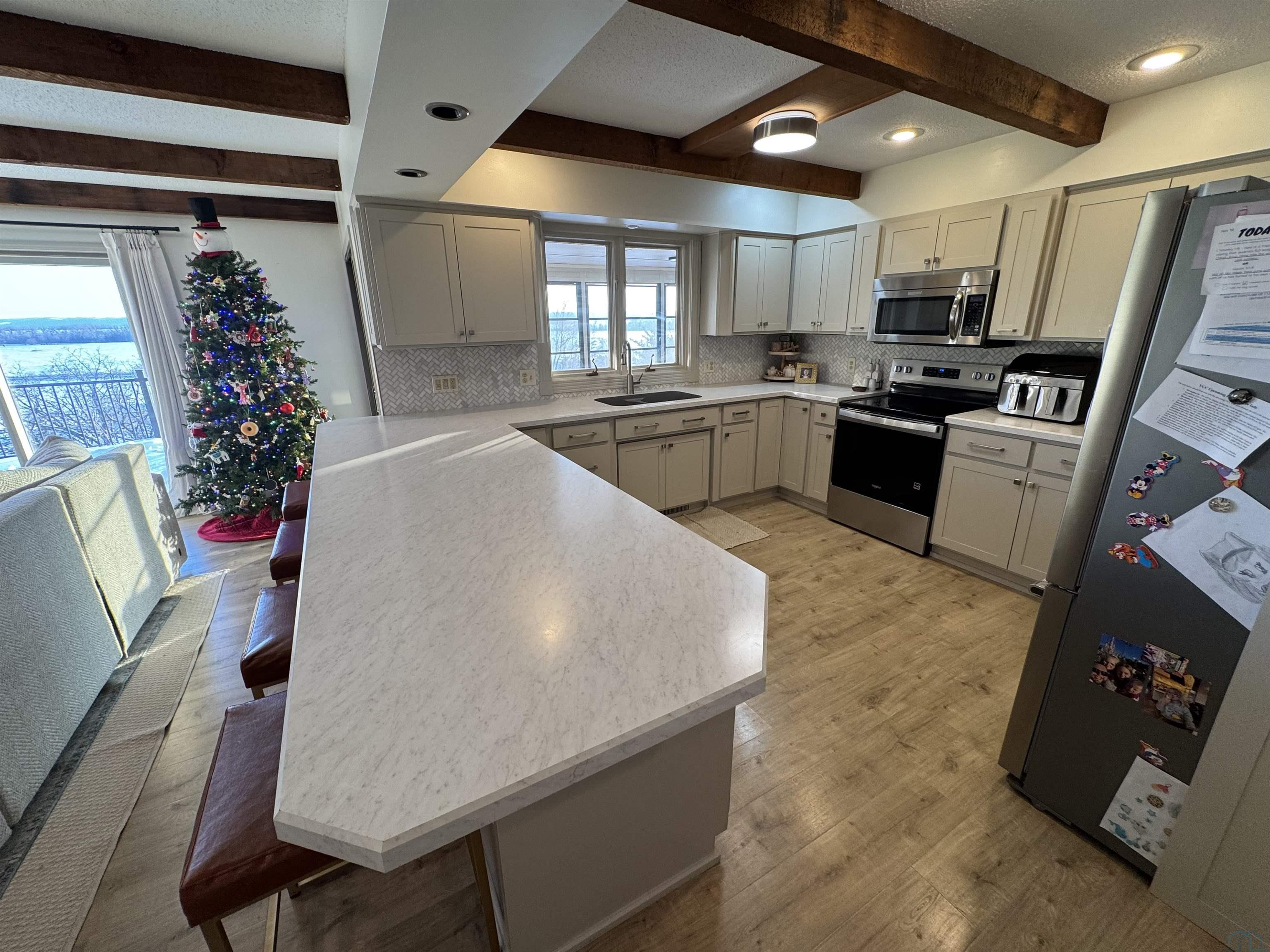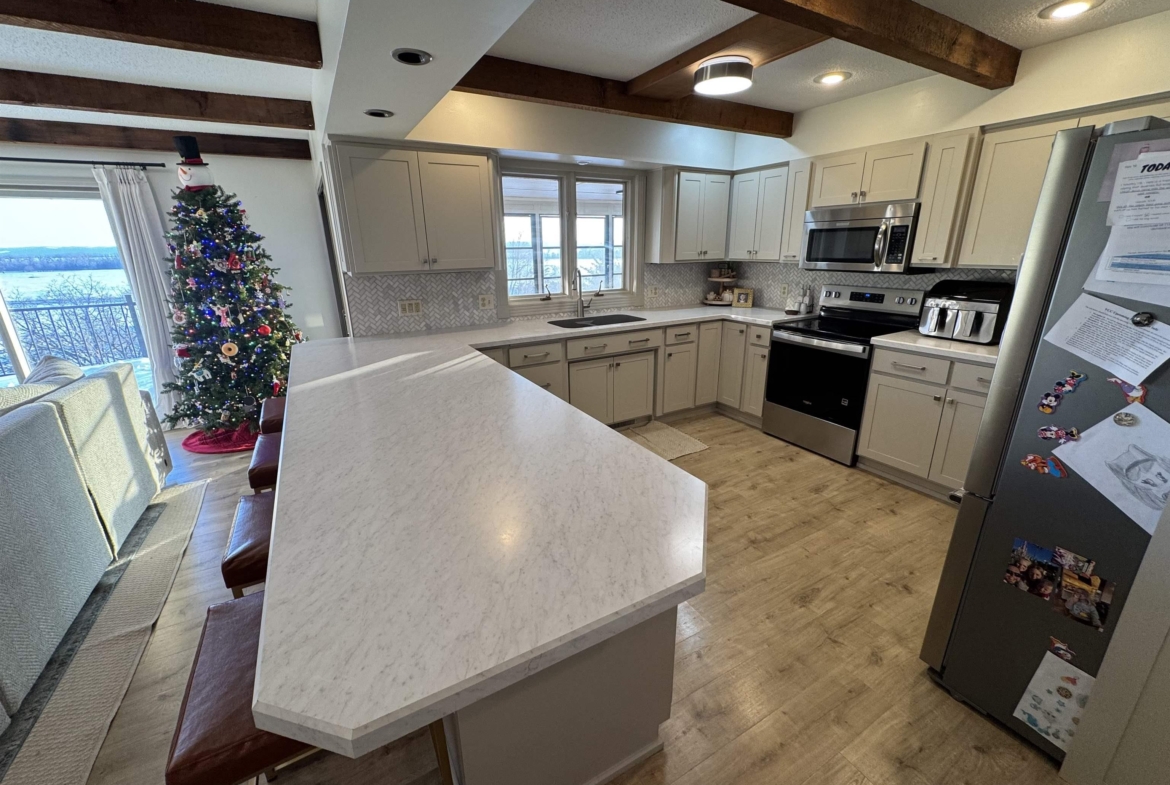 Welcome to this beautifully updated 5 bedroom, 3.75 bath home, thoughtfully updated from top to bottom to blend modern comfort with timeless charm. Inside, you’ll find new flooring and paint throughout, creating a bright and cohesive feel. The updated bathrooms and kitchen feature contemporary finishes, adding both style and convenience to your daily routine. The heart of the home offers plenty of space for gathering, relaxing, and entertaining. Step out onto the newly built deck – perfect for outdoor dining or morning coffee. One of the standout features is the inviting three-season porch, which overlooks the bluff, offering breathtaking views. Whether you’re watching the sunrise or sunset, this space truly brings the outdoors in. This home offers a rare combination of comfort, style, and scenery. Fully updated and move-in ready, it’s the perfect setting for your next chapter.