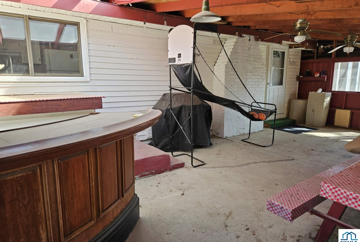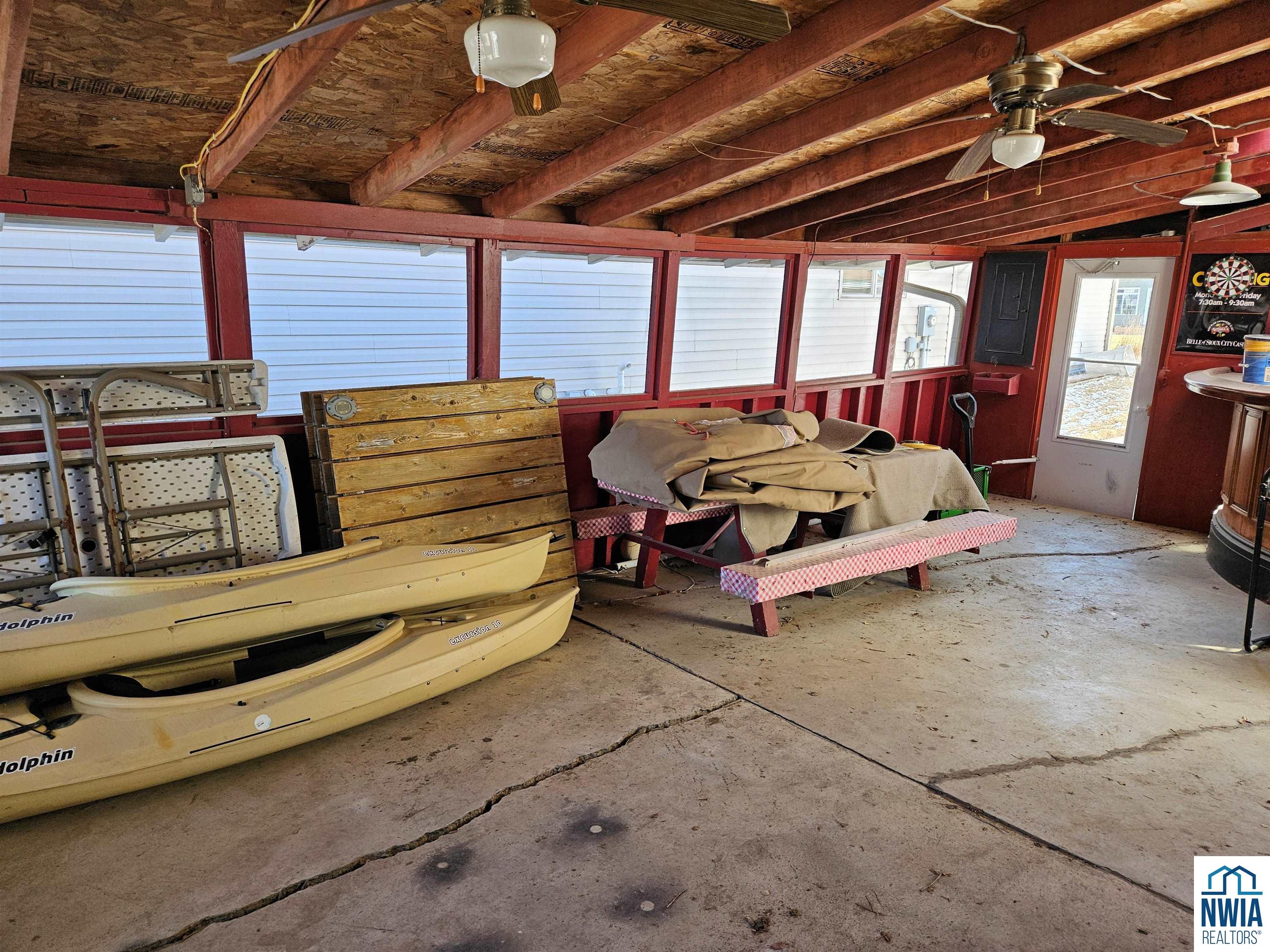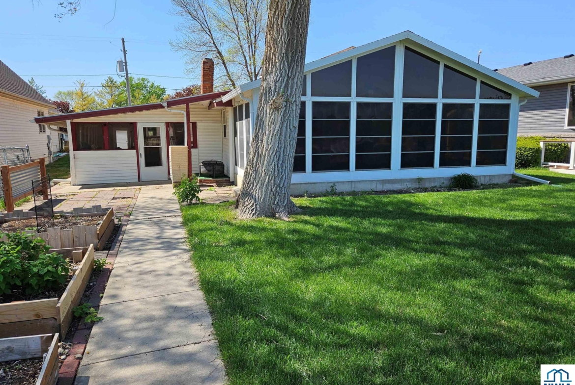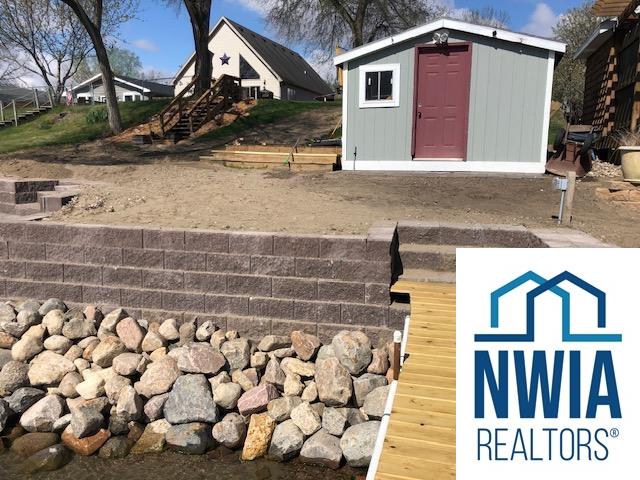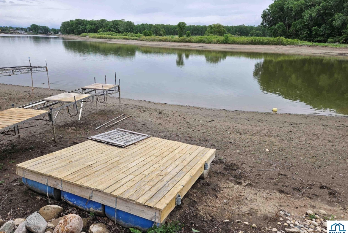 Come enjoy this refreshed and updated bungalow on McCook Lake. 2 bedrooms/1 bath, eat-in kitchen and large living room with faux fireplace, sliders to 9 x 23 Screen Builder three season porch with pine wall, vaulted ceiling, CF and windows with great lake views. Partially furnished and ready for fun times to begin. The lake front is renewed and updated with retaining wall, sandy beach area, dock house/storage and new deck on firepit level. Wildlife, refurbishing of the lake and rejuvenated interior space makes this sweet bungalow a must see. The entry door is in the 16 x 28 screened in porch on the side of the house which makes for a great entertaining space and covered entry. Kitchen is updated w/engineered wood flooring, white cabinets, butcher block counter tops, stainless farm sink and tile backsplash behind the stove. Kitchen appliances frig, stove & DW stay. Primary suite has a large walk in closet but this closet could easily be converted into a bedroom or used as an office. Completely updated bath with tile, new fixtures and vanity & mirror so adorable. As you go to the lake there is a nice sized and updated dock/storage shed 15 x 12 for the lake gear with a new deck off it. There is an updated dock for the lake toys, new lakeshore work completed that is so nice for evenings near the firepit. Yard is now sprinkled, raised garden boxes conveniently placed near screened porches and lots of trees removed for safety and better views of the lake. Another small storage shed 10 x 8 is on the street side, located near the one stall oversized attached garage.