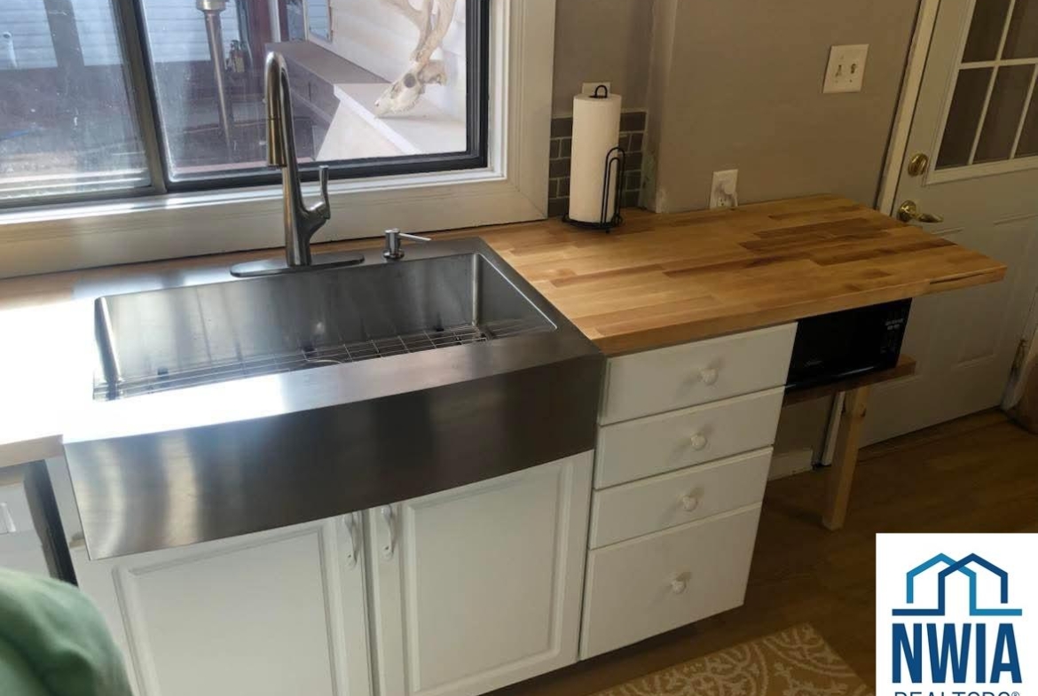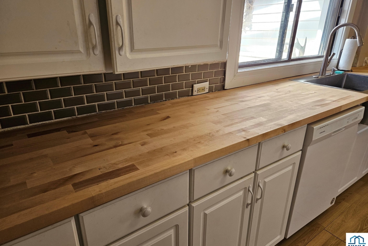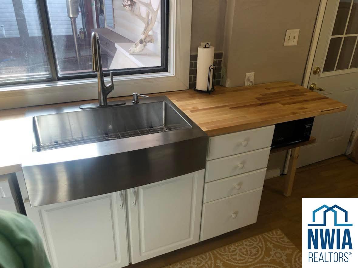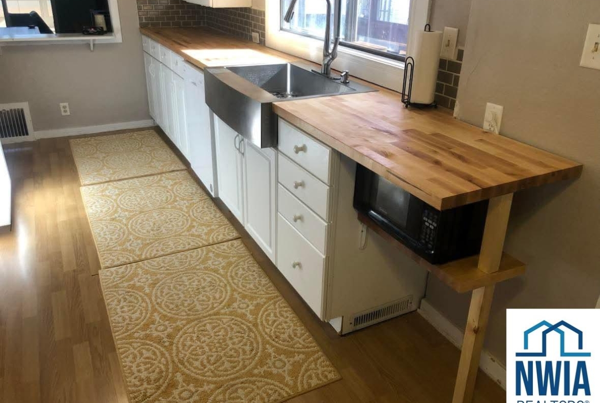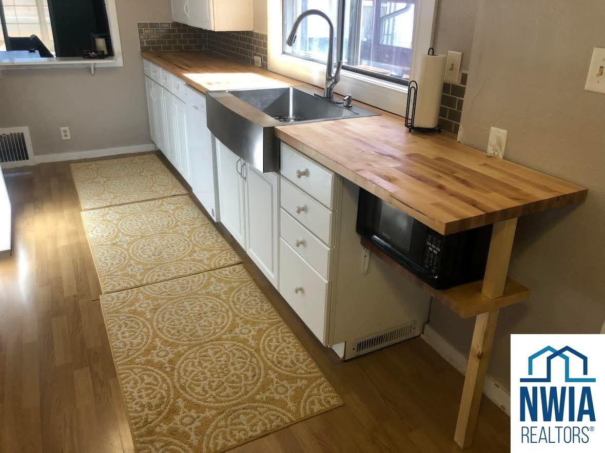 Kitchen | Main | 8 x 19 | eat-in, updated floors, butcher block/farm sink, bck splash |