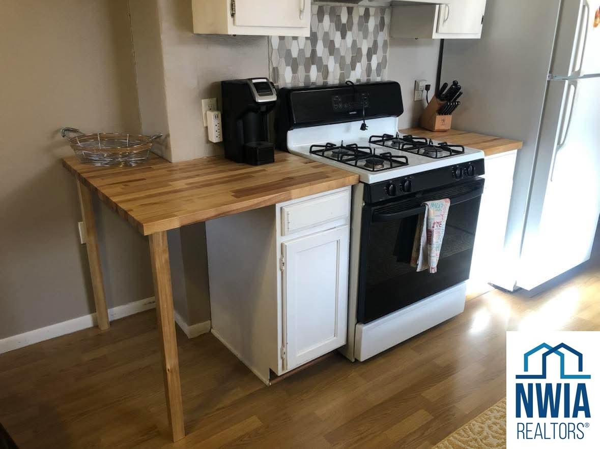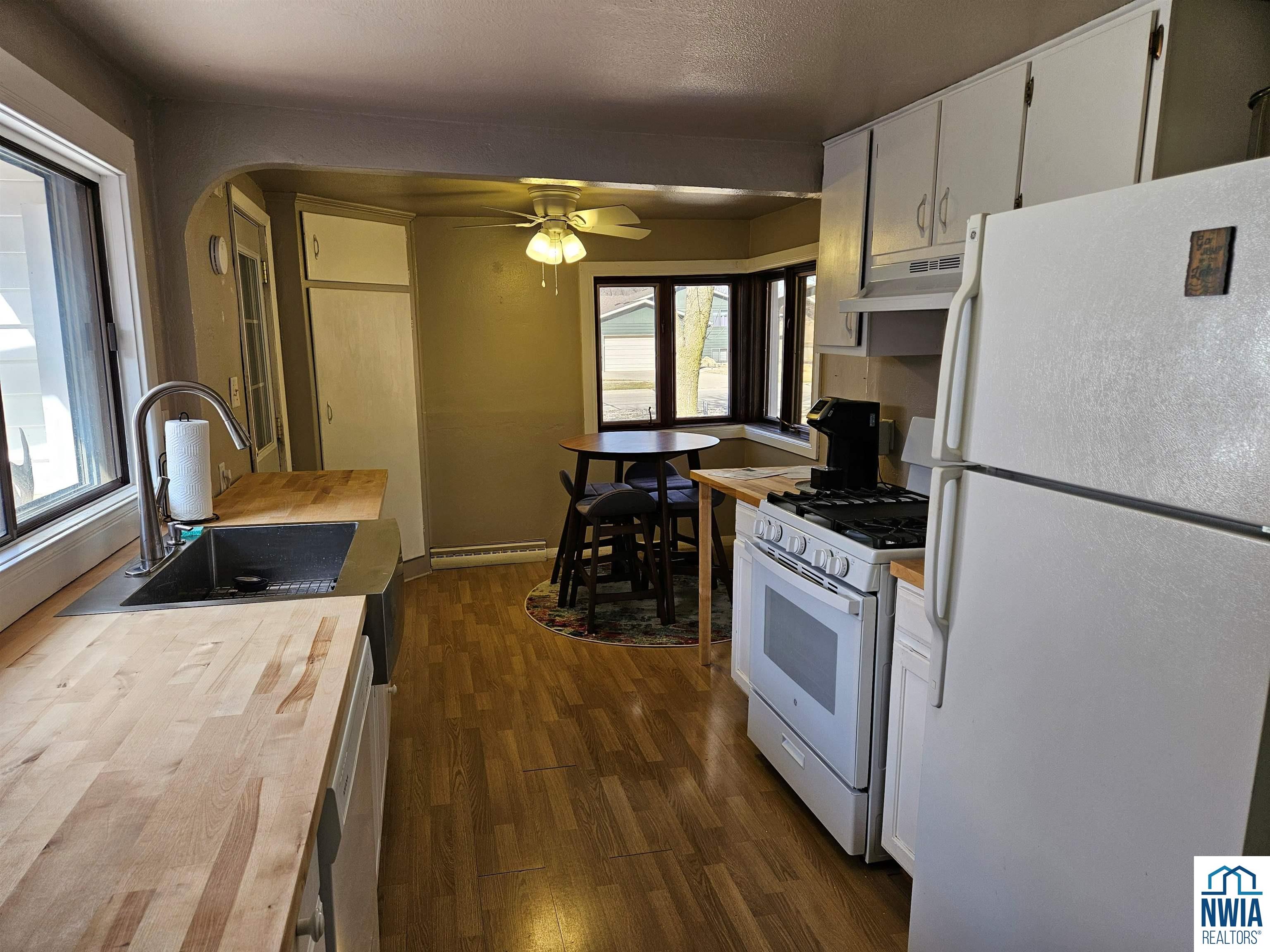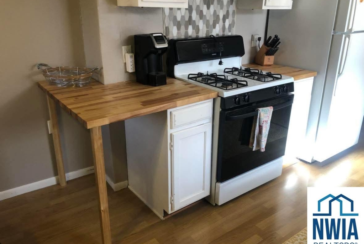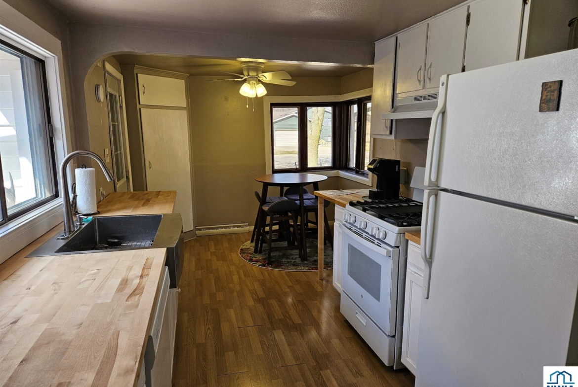 Kitchen | Main | 8 x 19 | eat-in, updated floors, butcher block/farm sink, bck splash |