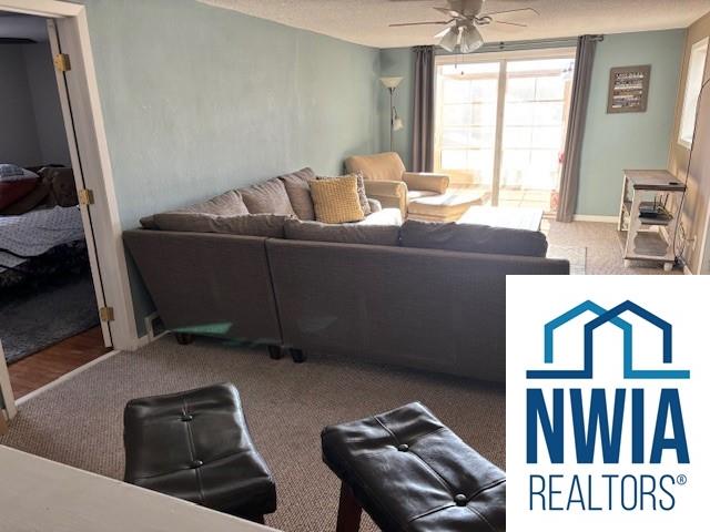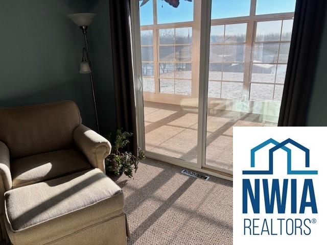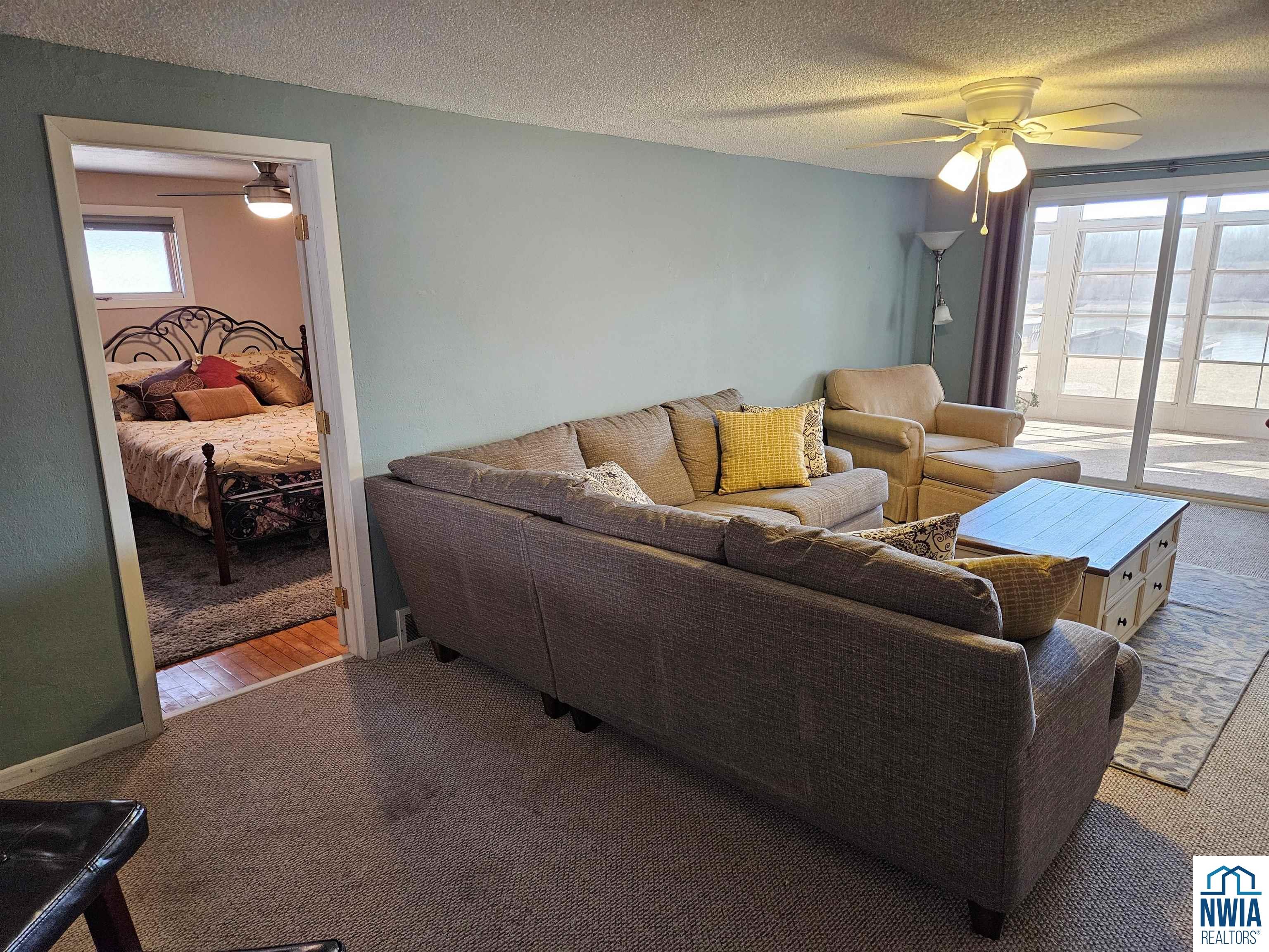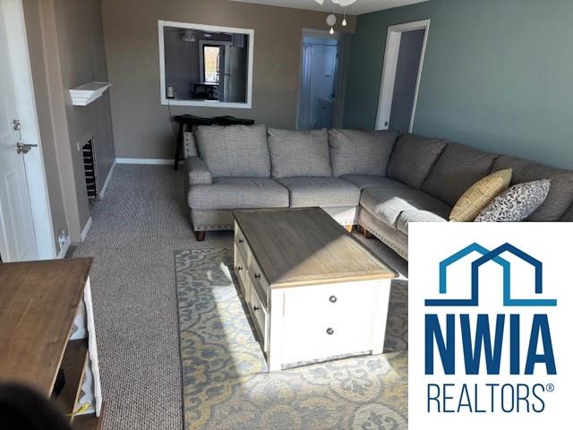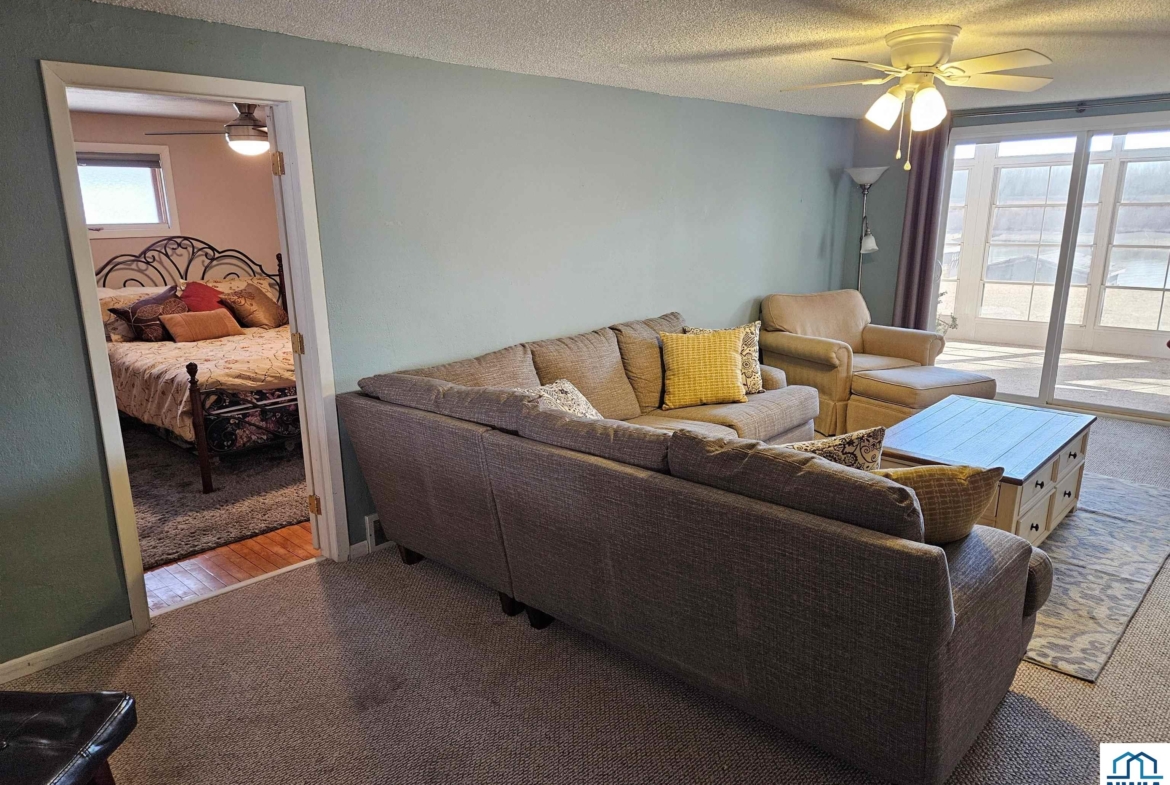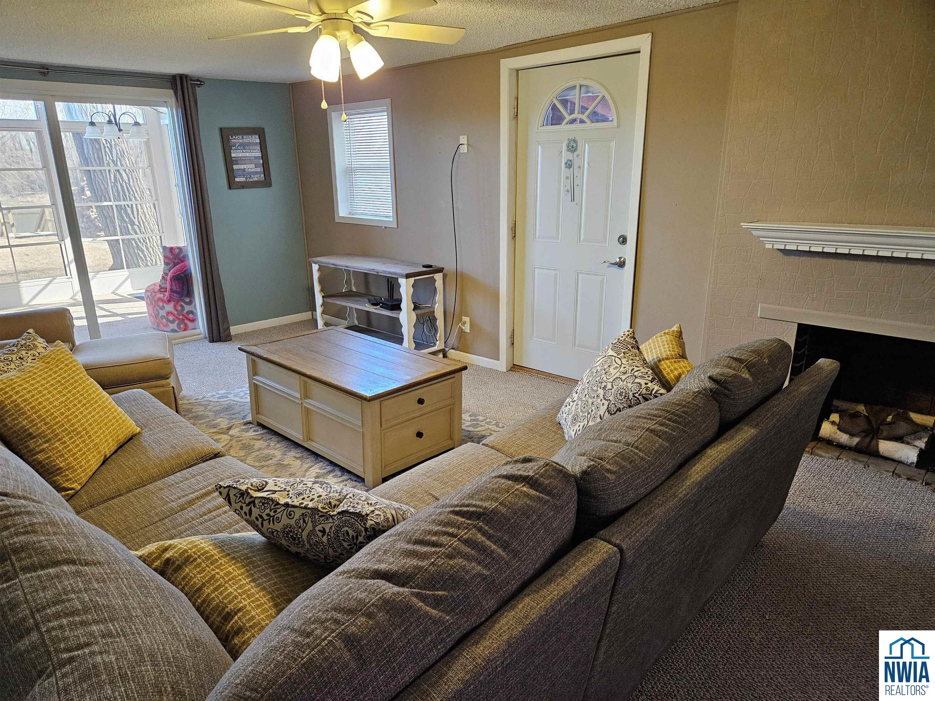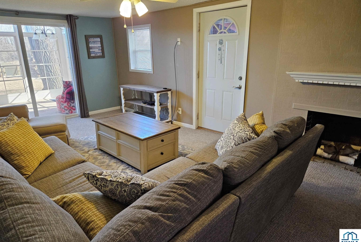 Living | Main | 11 x 22 | carpet, lake view, slider to 3 season room, faux fireplace |