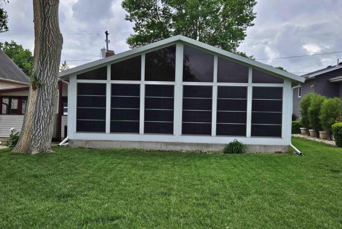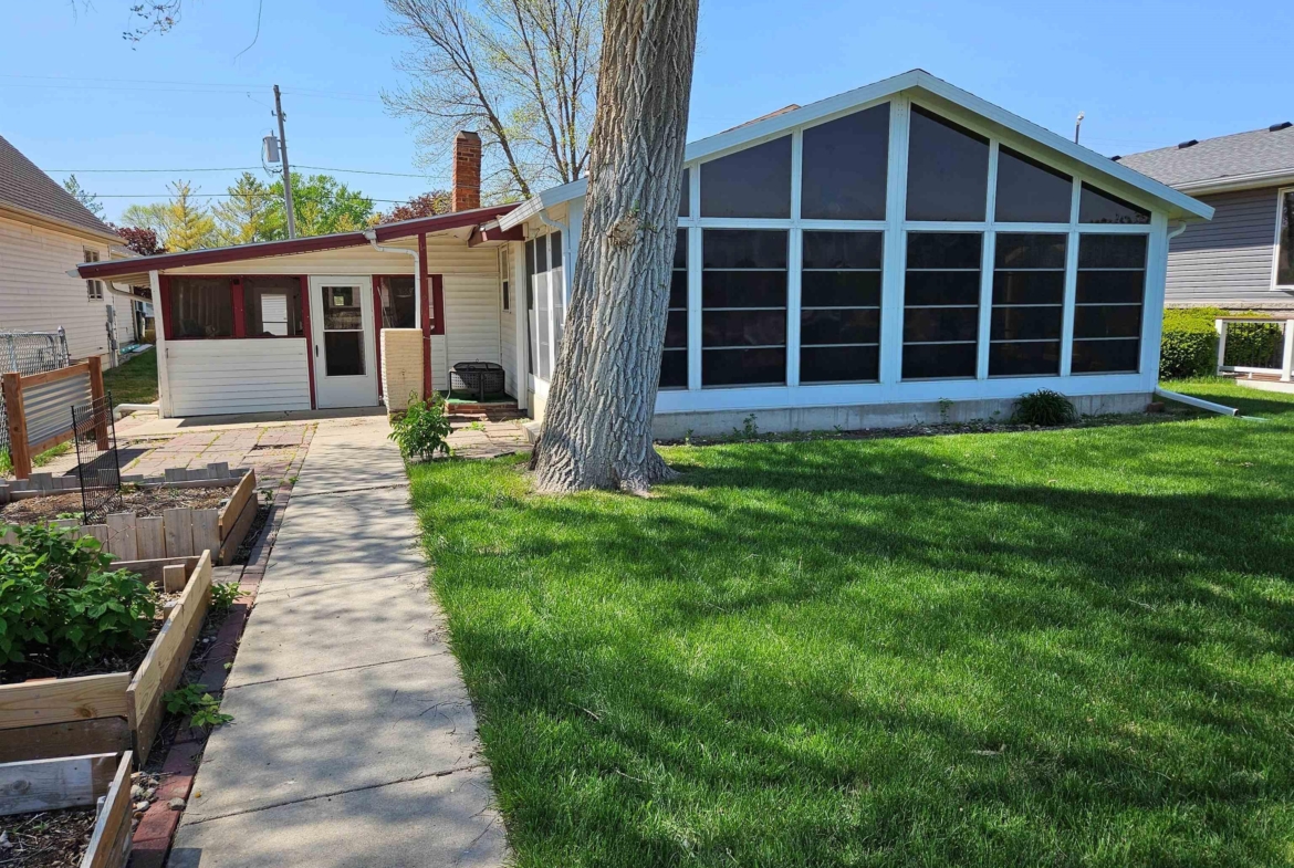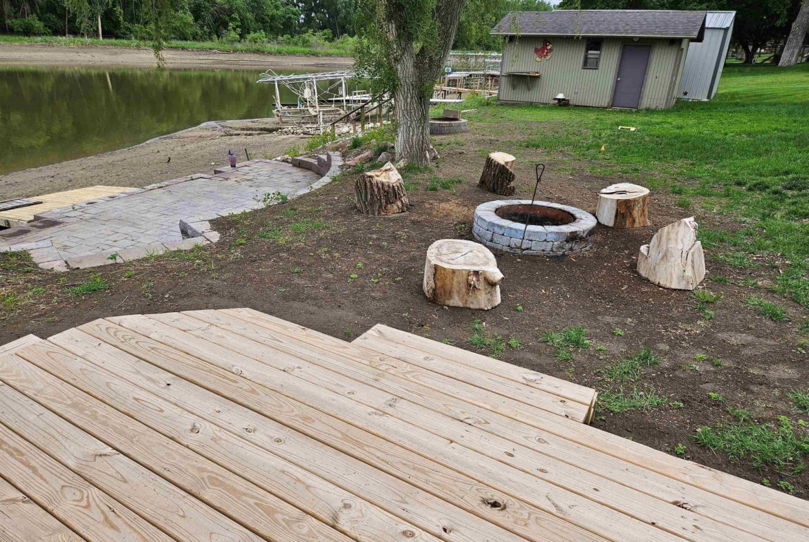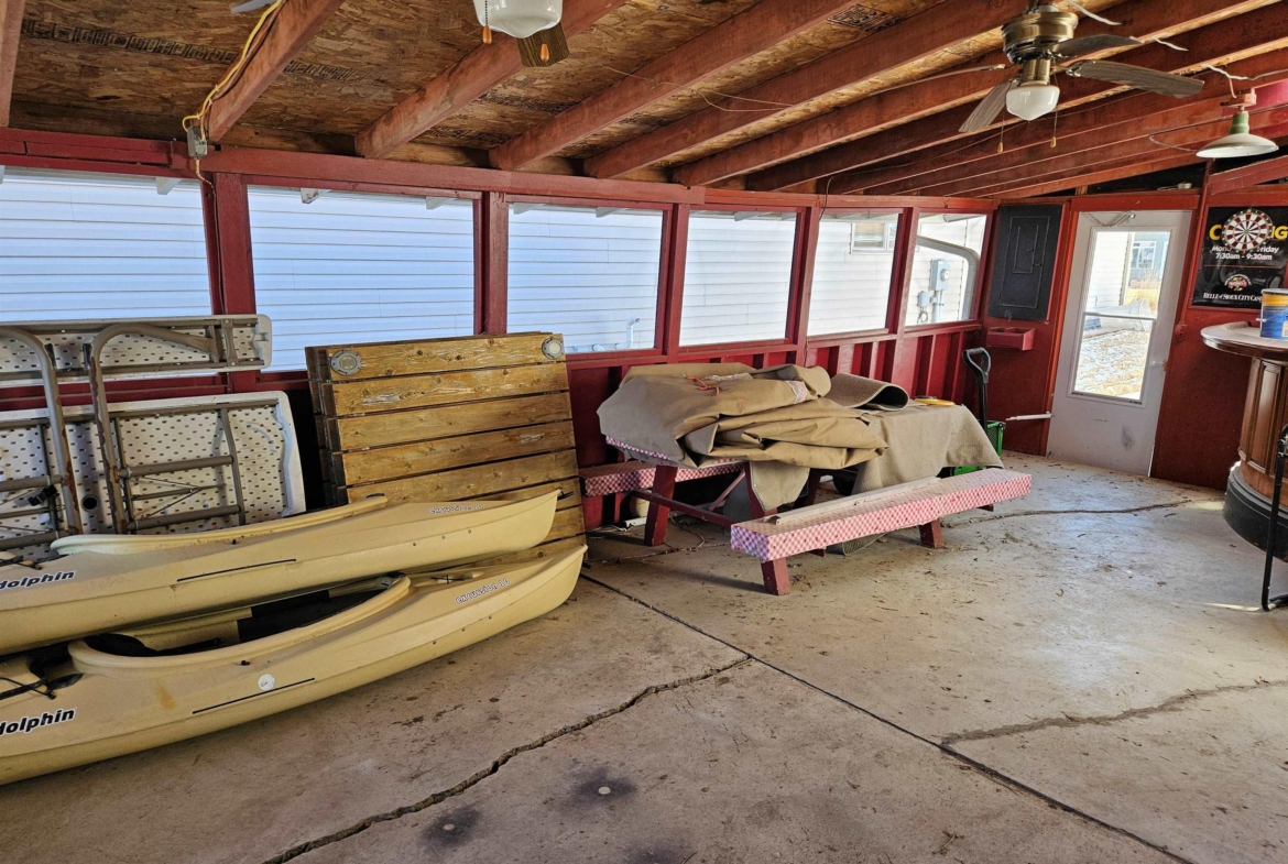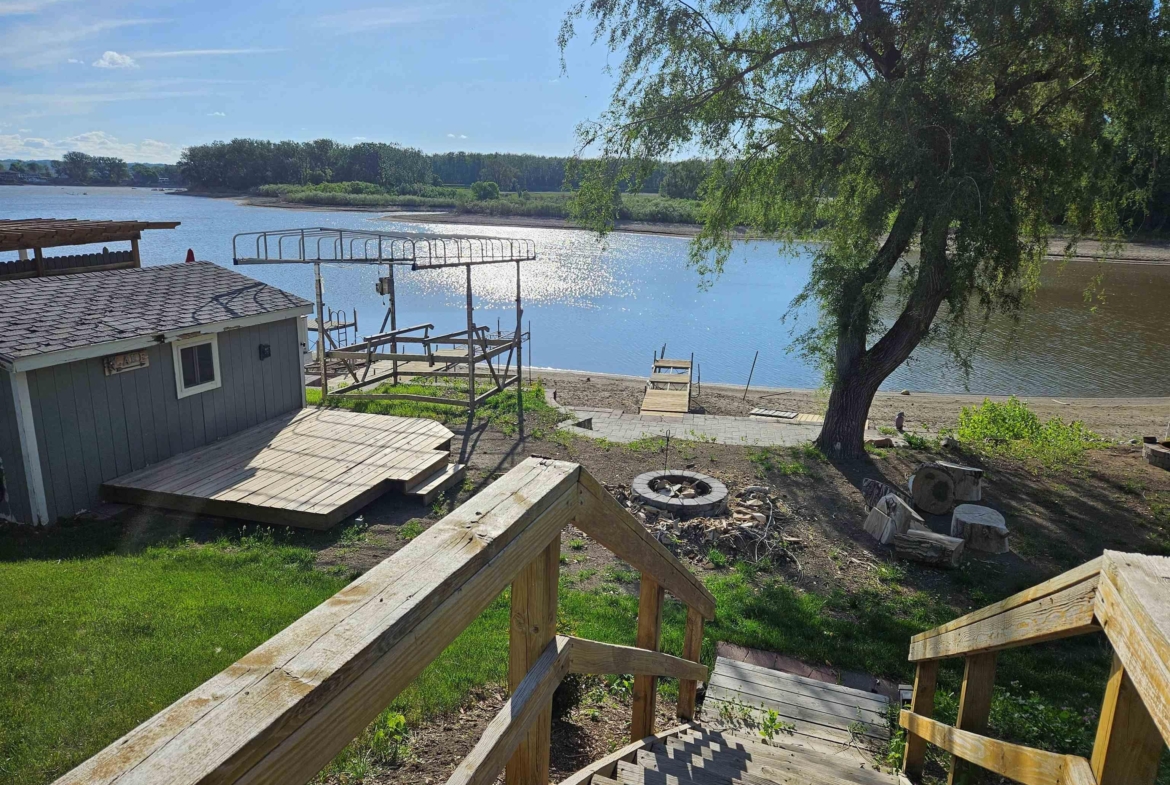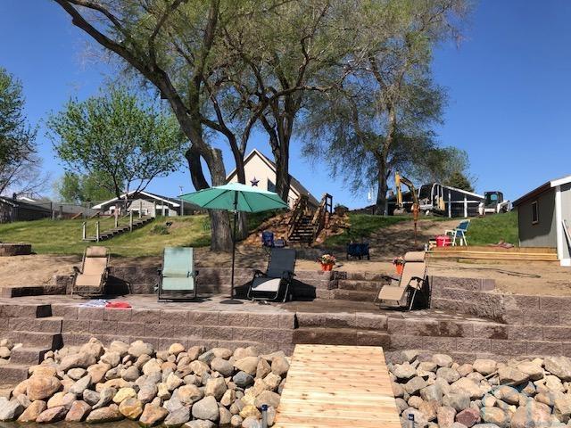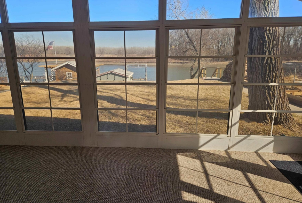 Come enjoy this refreshed and updated bungalow on McCook Lake. 2 bedrooms/1 bath, eat-in kitchen and large living room with faux fireplace, sliders to 9 x 23 Screen Builder three season porch with pine wall, vaulted ceiling, CF and windows with great lake views. The lake front is renewed and updated with retaining wall, sandy beach area, dock house/storage and new deck on firepit level. Wildlife, refurbishing of the lake and rejuvenated interior space makes this sweet bungalow a must see. The entry door is in the 16 x 28 screened in porch on the side of the house which makes for a great entertaining space and covered entry. Kitchen is updated w/ laminate floor, white cabinets, butcher block counter tops, stainless farm sink and tile backsplash behind the stove. Kitchen appliances frig, stove & DW stay. Primary suite has a large walk in closet but this closet could easily be converted into a bedroom or used as an office. Completely updated bath with tile, new fixtures and vanity & mirror so adorable. As you go to the lake there is a nice sized and updated dock/storage shed 15 x 12 for the lake gear with a new deck off it. There is an updated dock for the lake toys, new lakeshore work completed that is so nice for evenings near the firepit. Yard is now sprinkled, raised garden boxes conveniently placed near screened porches and lots of trees removed for safety and better views of the lake. Another small storage shed 10 x 8 is on the street side, located near the one stall oversized attached garage.