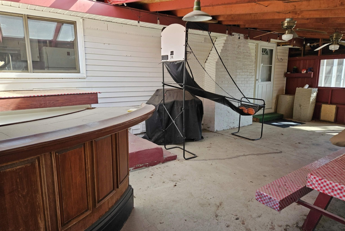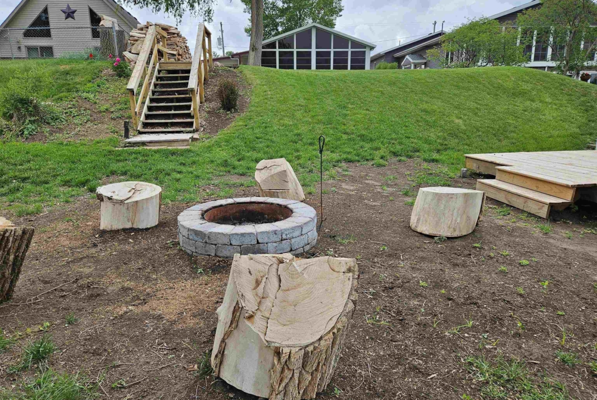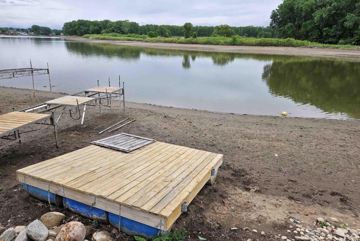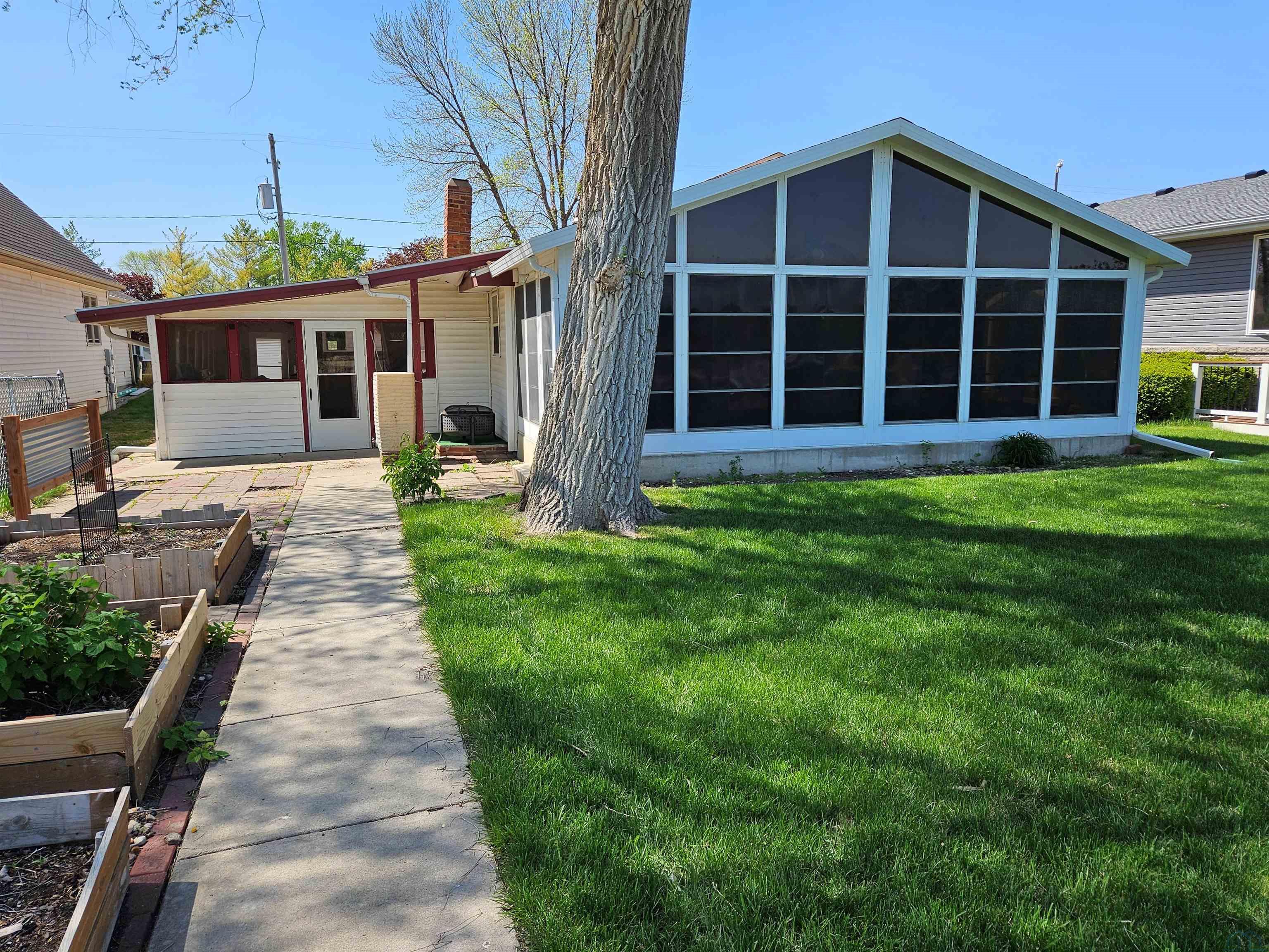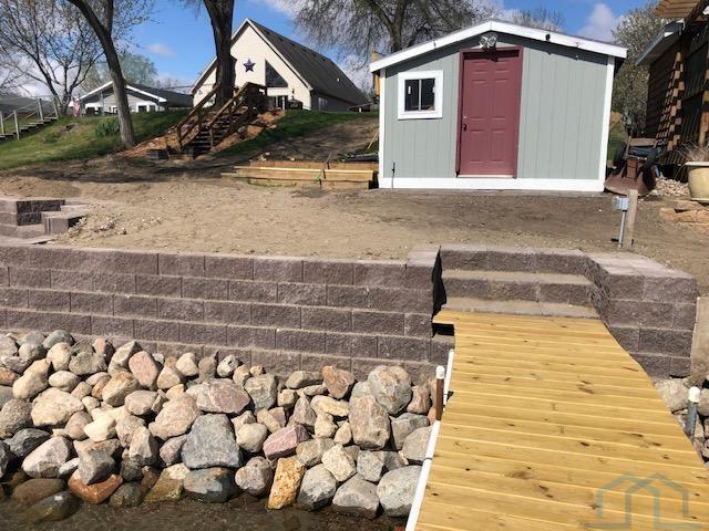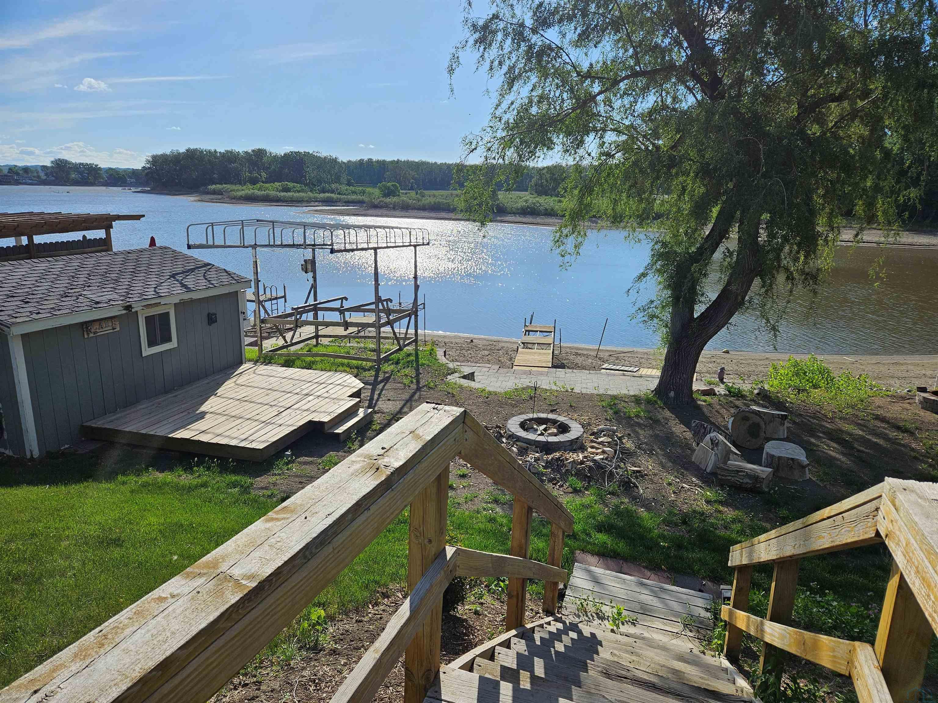 Come enjoy this refreshed and updated bungalow on McCook Lake. 2 bedrooms/1 bath, eat-in kitchen and large living room with faux fireplace, sliders to 9 x 23 Screen Builder three season porch with pine wall, vaulted ceiling, CF and windows with great lake views. The lake front is renewed and updated with retaining wall, sandy beach area, dock house/storage and new deck on firepit level. Wildlife, refurbishing of the lake and rejuvenated interior space makes this sweet bungalow a must see. The entry door is in the 16 x 28 screened in porch on the side of the house which makes for a great entertaining space and covered entry. Kitchen is updated w/ laminate floor, white cabinets, butcher block counter tops, stainless farm sink and tile backsplash behind the stove. Kitchen appliances frig, stove & DW stay. Primary suite has a large walk in closet but this closet could easily be converted into a bedroom or used as an office. Completely updated bath with tile, new fixtures and vanity & mirror so adorable. As you go to the lake there is a nice sized and updated dock/storage shed 15 x 12 for the lake gear with a new deck off it. There is an updated dock for the lake toys, new lakeshore work completed that is so nice for evenings near the firepit. Yard is now sprinkled, raised garden boxes conveniently placed near screened porches and lots of trees removed for safety and better views of the lake. Another small storage shed 10 x 8 is on the street side, located near the one stall oversized attached garage.