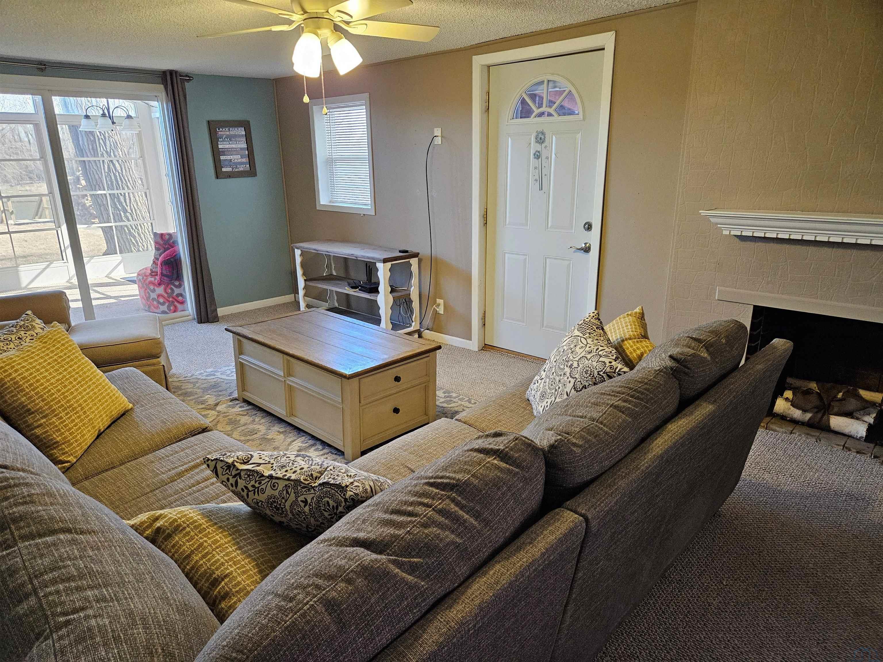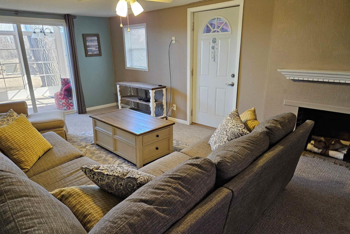 | Living | Main | 11 x 22 | carpet, lake view, slider to 3 season room, faux fireplace |