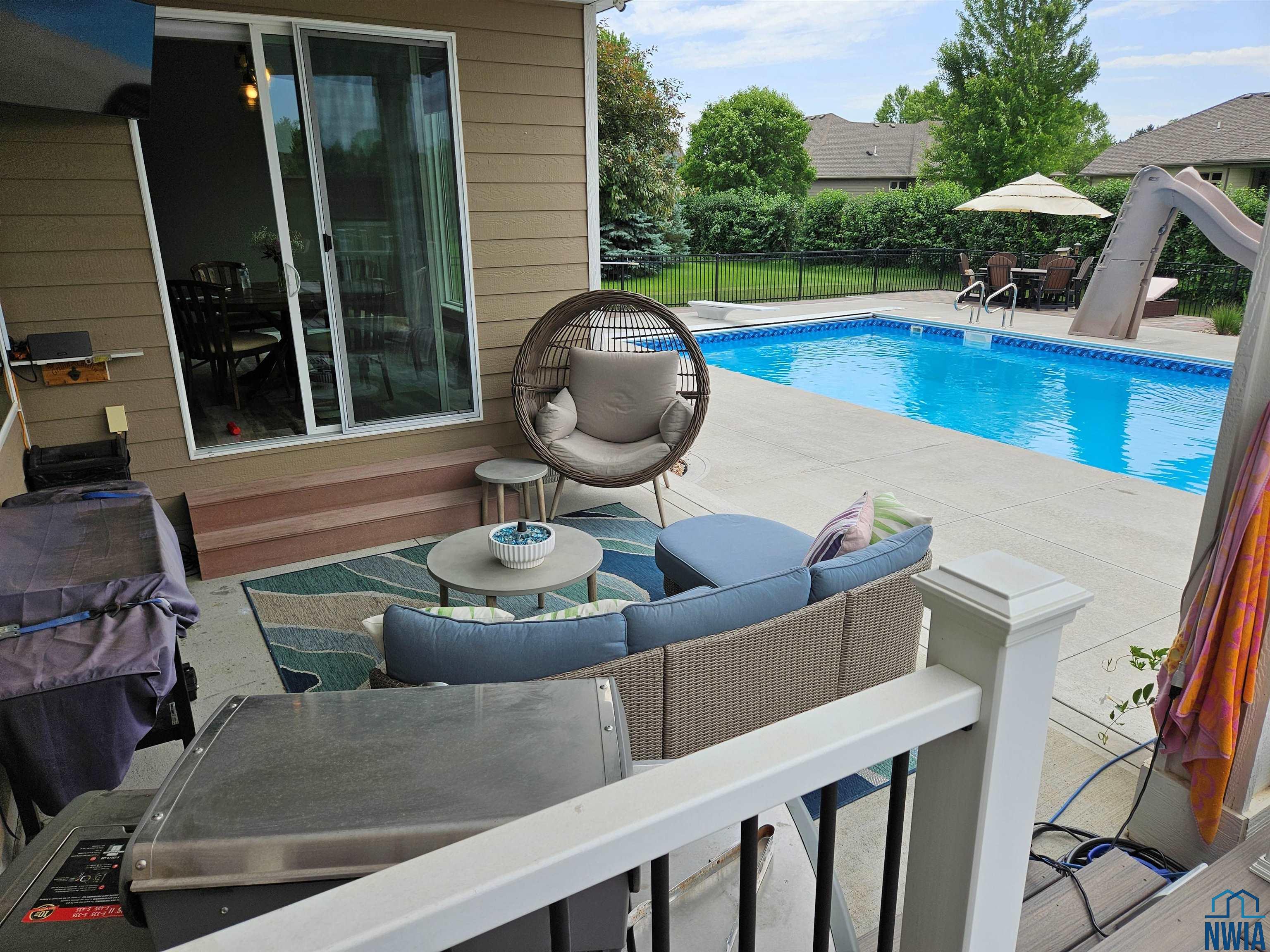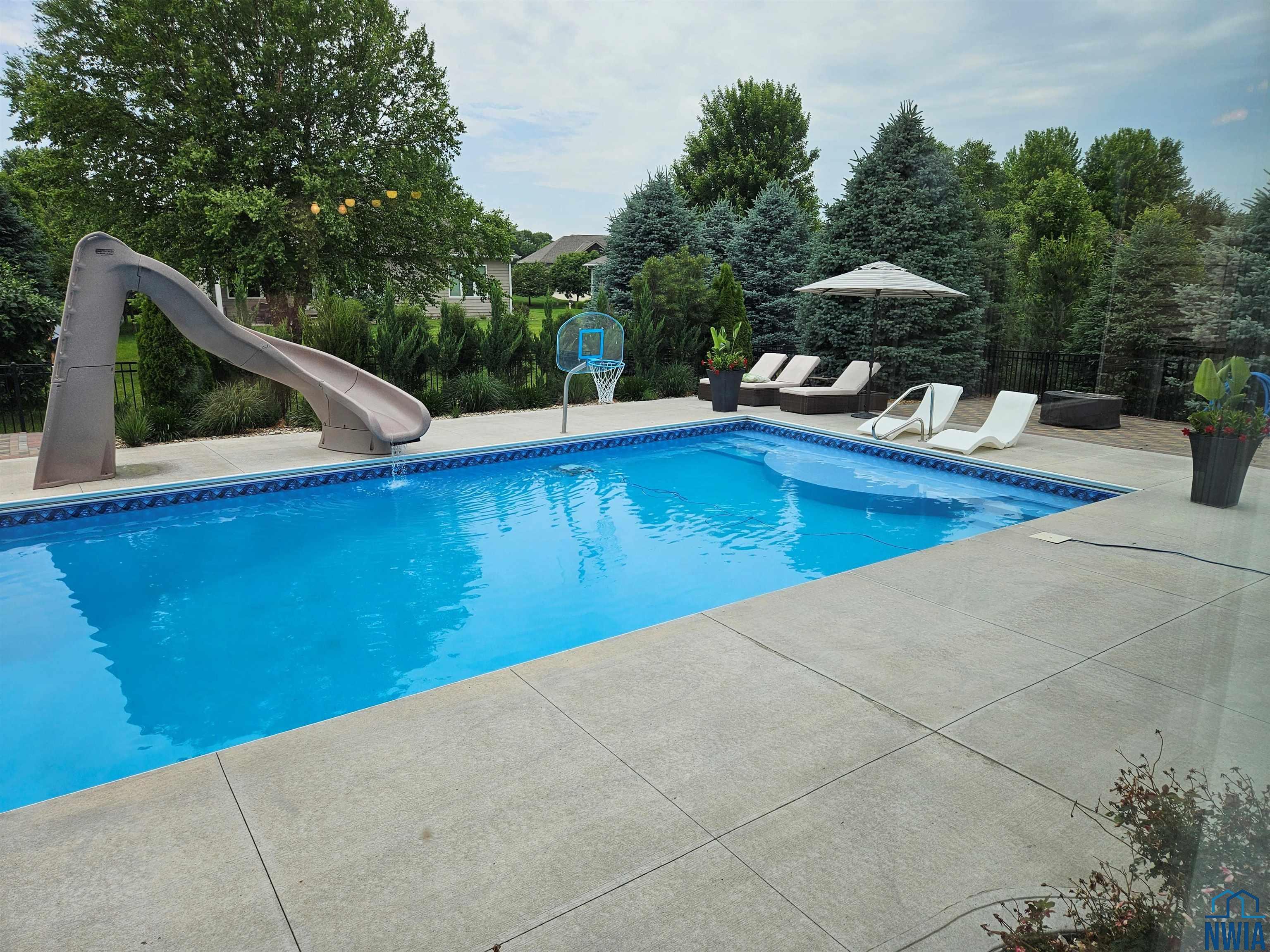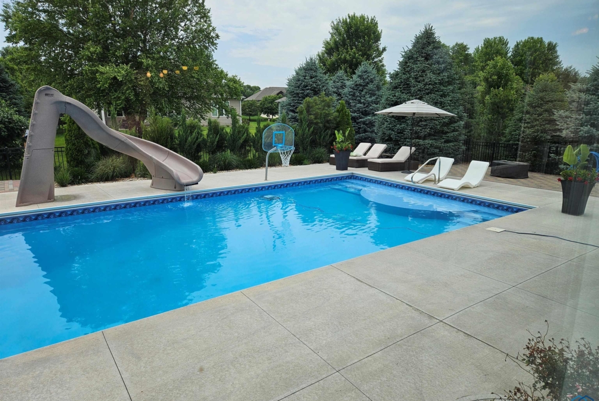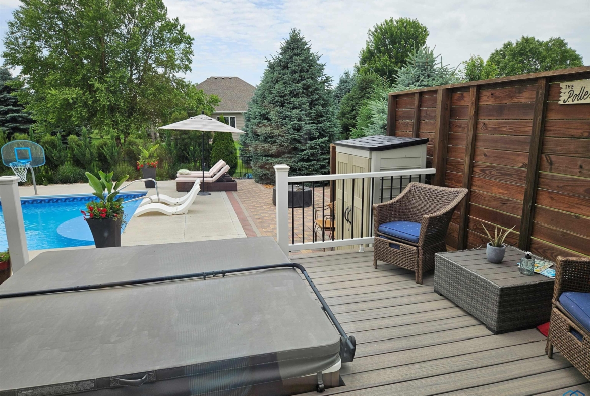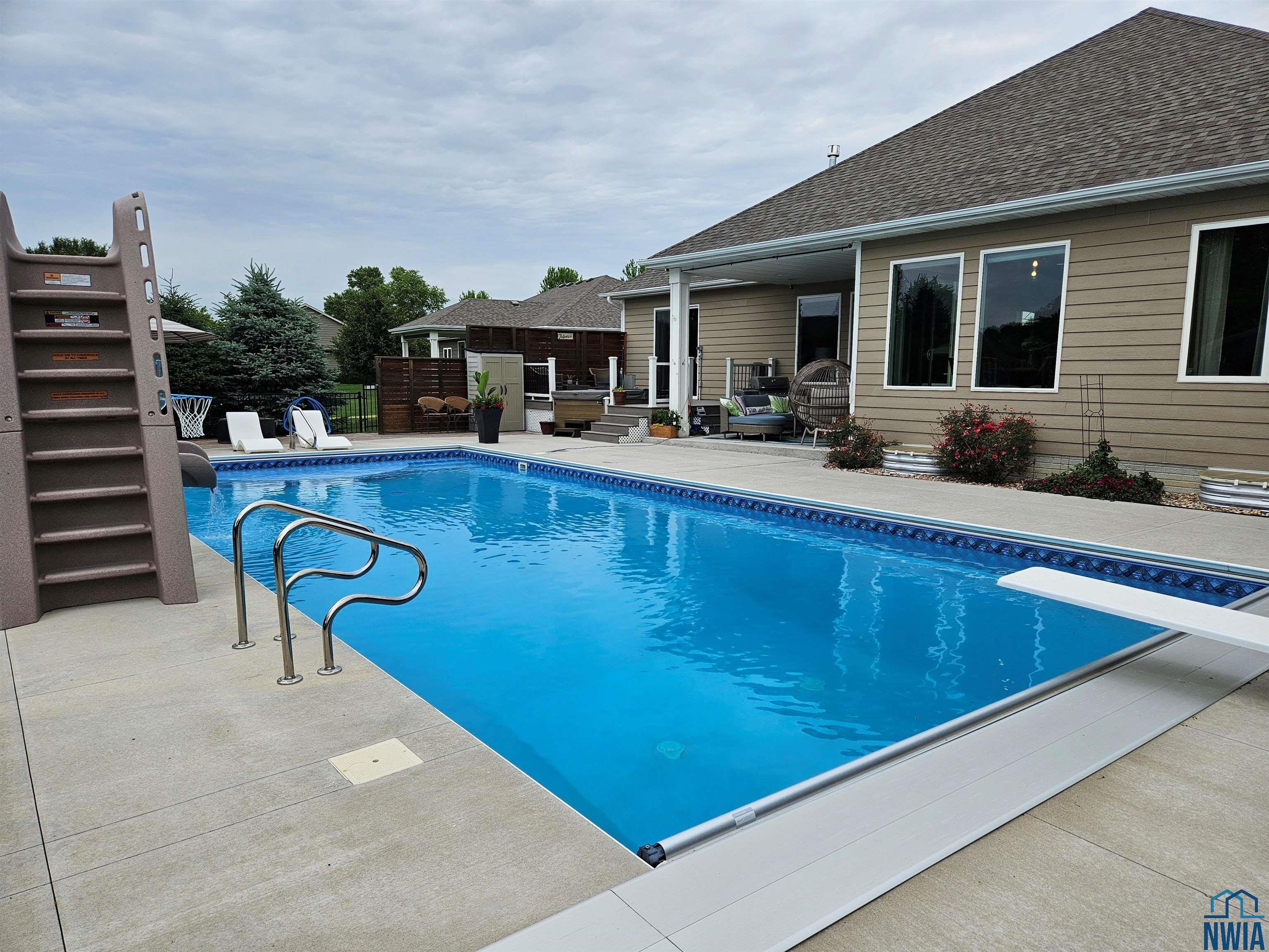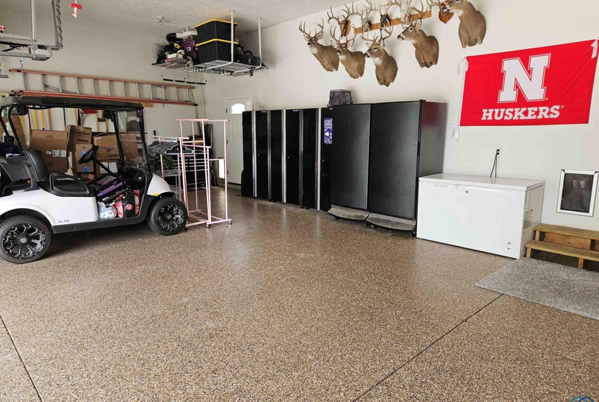 Pride of Ownership – 2470 sq ft on main floor, exquisite ranch, with approximately 1950 sq ft finished in lower level, all on gorgeous treed and private cul-de-sac lot in beautiful Dakota Dunes Country Club neighborhood. Tons of updates, and the backyard oasis is a phenomenal show-stopper. Walk-out to covered patio, with view of heated 20×45 salt water pool, slides, paver patios, fenced yard, mature trees architectural privacy panels and hot tub right off the primary suite. Great way to relax after a long day and premium privacy galore. There are 5 legal bedrooms, 3 on main, 2 in basement and three full baths. Open concept main floor with 10′ ceiling height and 8′ doors throughout, new LVT flooring throughout living area & primary suite. Open kitchen w/ island & granite counters with tile back splash, corner pantry and dining area w/ sliders to access the covered patio. Large windows make this home bright and airy. Beautiful gas FP/painted stacked-stone with built-ins in living room. Formal dining room or music room is off 8×8 tiled foyer. Awesome primary suite w/ LVT, slider to hot tub & pool, and bath including tiled walk-in shower, soaking tub, dual vanity and radiant heat in floor plus 8×13 walk-in closet. Main floor laundry with granite counter/sink, wall cabinets, a doggie door to garage plus a rear entry coat closet. The basement has been nicely finished with a large gathering/living room, tiled floor in the wet bar/entertaining area, a tiered-seating theater room, two bedrooms and a full bath with radiant heat in floor. Gorgeous backyard w/ 20×45 heated, salt water pool, hot tub and architectural privacy screening, concrete edging/rock beds everything installed 2020, and amazing garage with single entry door added to backyard, doggie door and 3rd stall w/ screened overhead door too!! You have got to see this one!!!