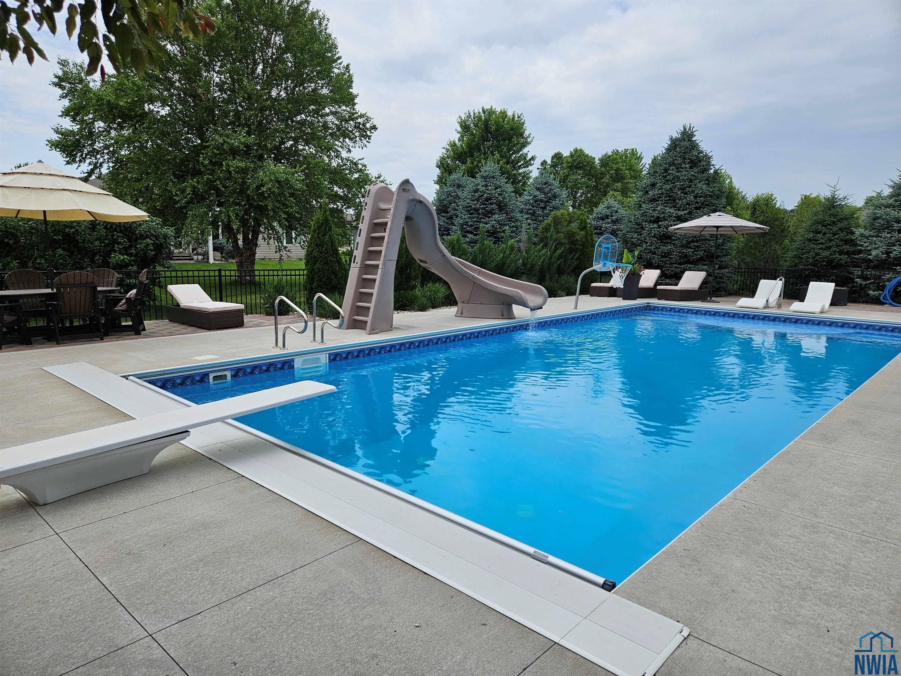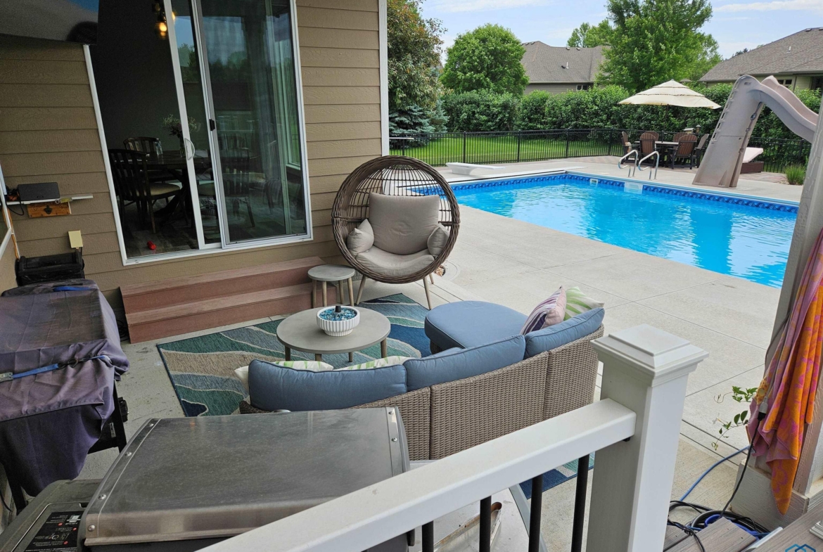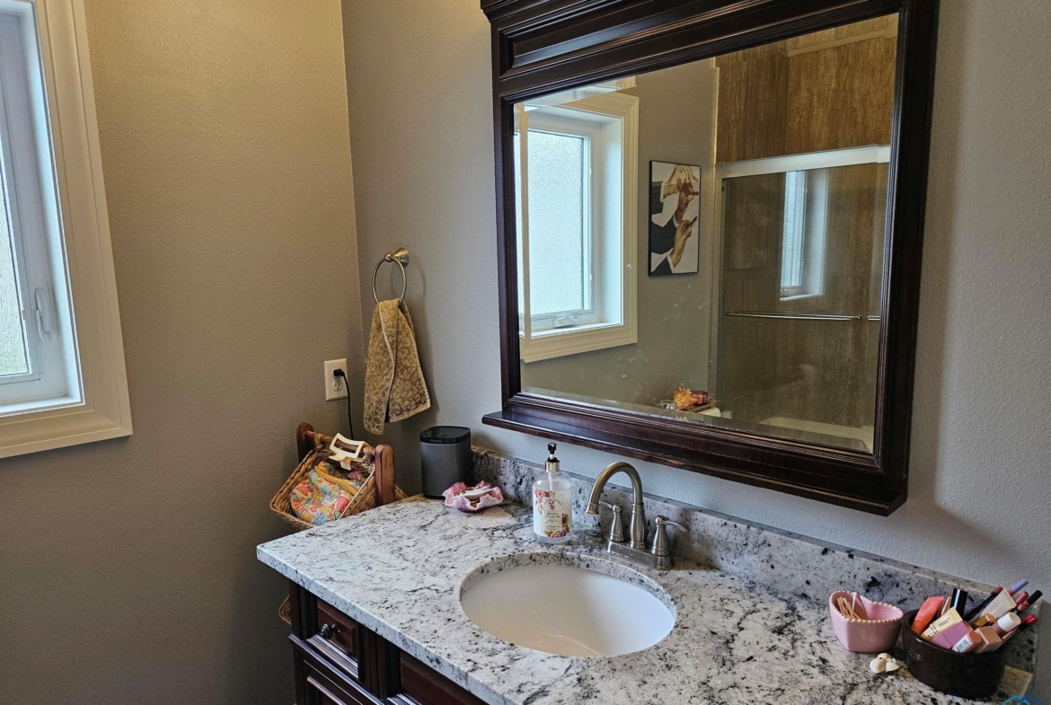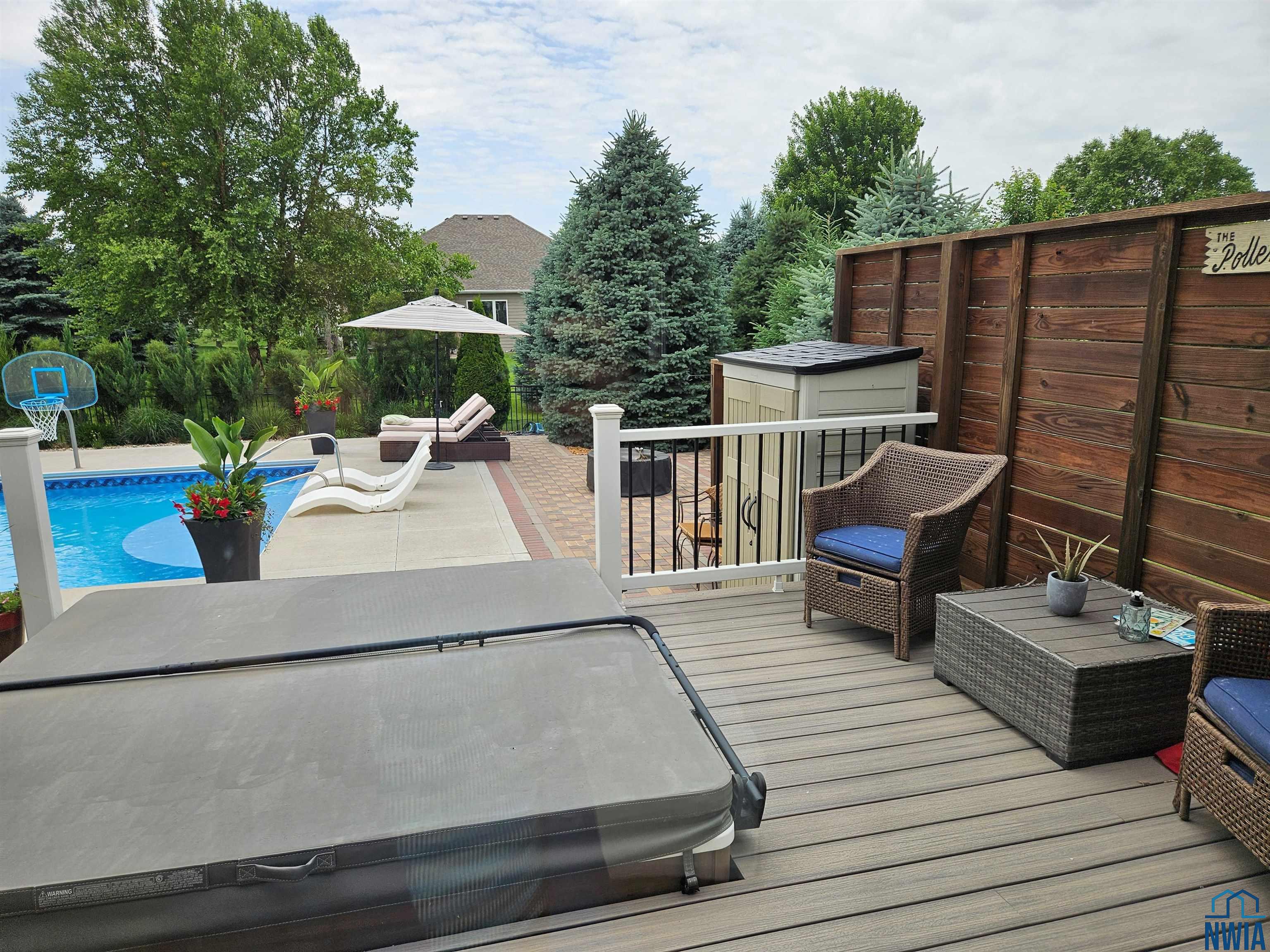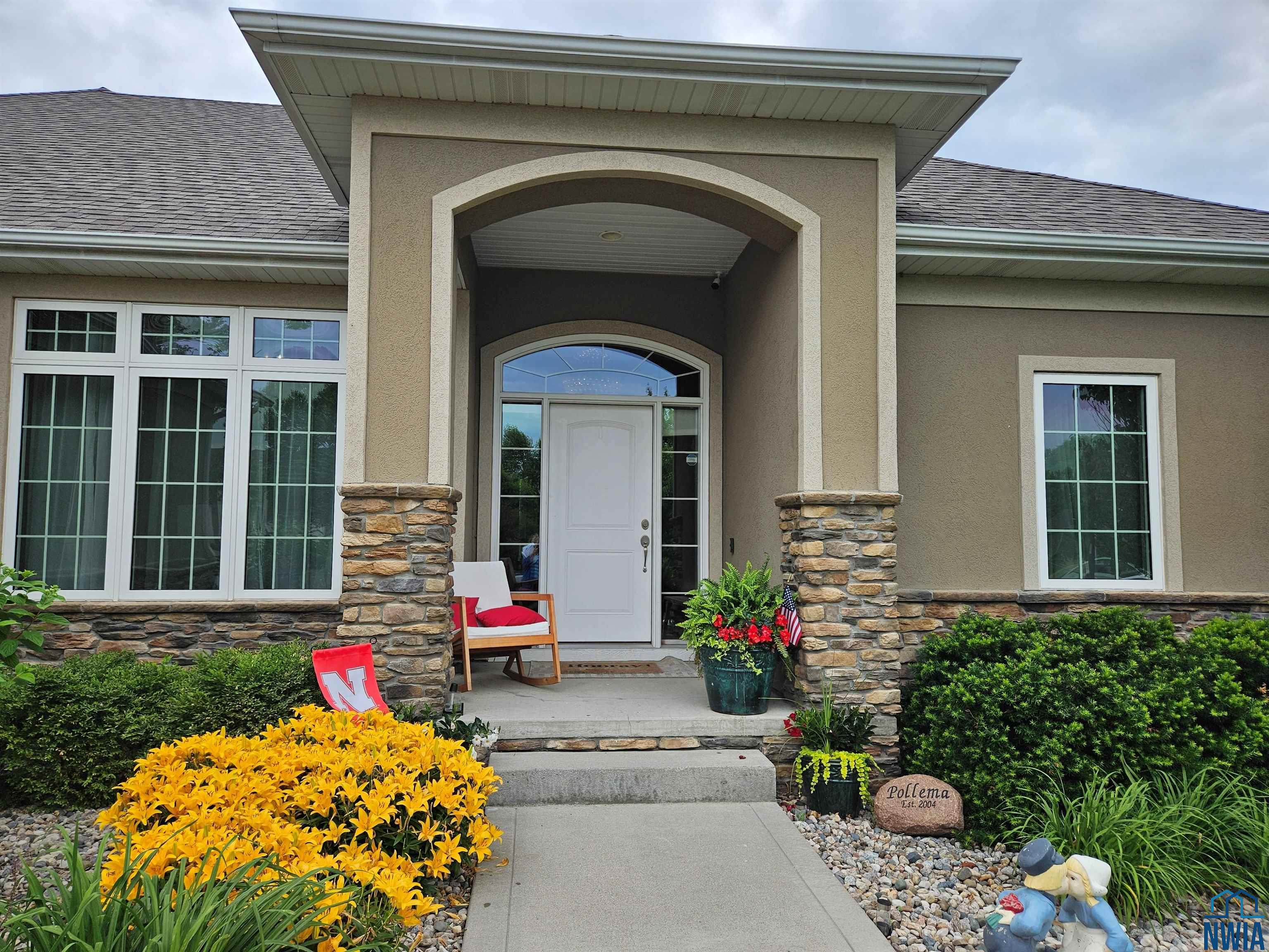 Pride of Ownership – 2470 sq ft on main floor, exquisite ranch, with approximately 1950 sq ft finished in lower level, all on gorgeous treed and private cul-de-sac lot in beautiful Dakota Dunes Country Club neighborhood. Tons of updates, and the backyard oasis is a phenomenal show-stopper. Walk-out to covered patio, with view of heated 20×45 salt water pool, slides, paver patios, fenced yard, mature trees architectural privacy panels and hot tub right off the primary suite. Great way to relax after a long day and premium privacy galore. There are 5 legal bedrooms, 3 on main, 2 in basement and three full baths. Open concept main floor with 10′ ceiling height and 8′ doors throughout, new LVT flooring throughout living area & primary suite. Open kitchen w/ island & granite counters with tile back splash, corner pantry and dining area w/ sliders to access the covered patio. Large windows make this home bright and airy. Beautiful gas FP/painted stacked-stone with built-ins in living room. Formal dining room or music room is off 8×8 tiled foyer. Awesome primary suite w/ LVT, slider to hot tub & pool, and bath including tiled walk-in shower, soaking tub, dual vanity and radiant heat in floor plus 8×13 walk-in closet. Main floor laundry with granite counter/sink, wall cabinets, a doggie door to garage plus a rear entry coat closet. The basement has been nicely finished with a large gathering/living room, tiled floor in the wet bar/entertaining area, a tiered-seating theater room, two bedrooms and a full bath with radiant heat in floor. Gorgeous backyard w/ 20×45 heated, salt water pool, hot tub and architectural privacy screening, concrete edging/rock beds everything installed 2020, and amazing garage with single entry door added to backyard, doggie door and 3rd stall w/ screened overhead door too!! You have got to see this one!!!