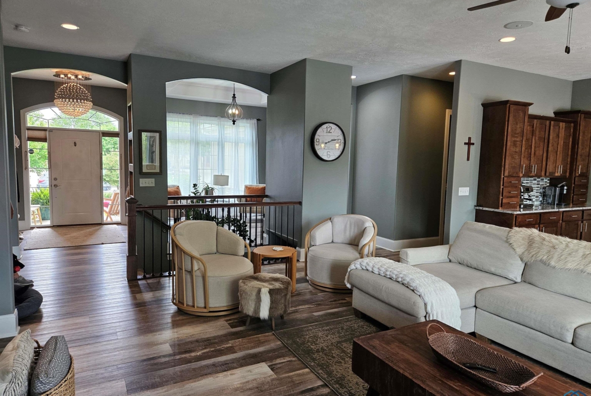 LivingMain20x1610' ceiling, large windows, LVT, gas FP, built-ins