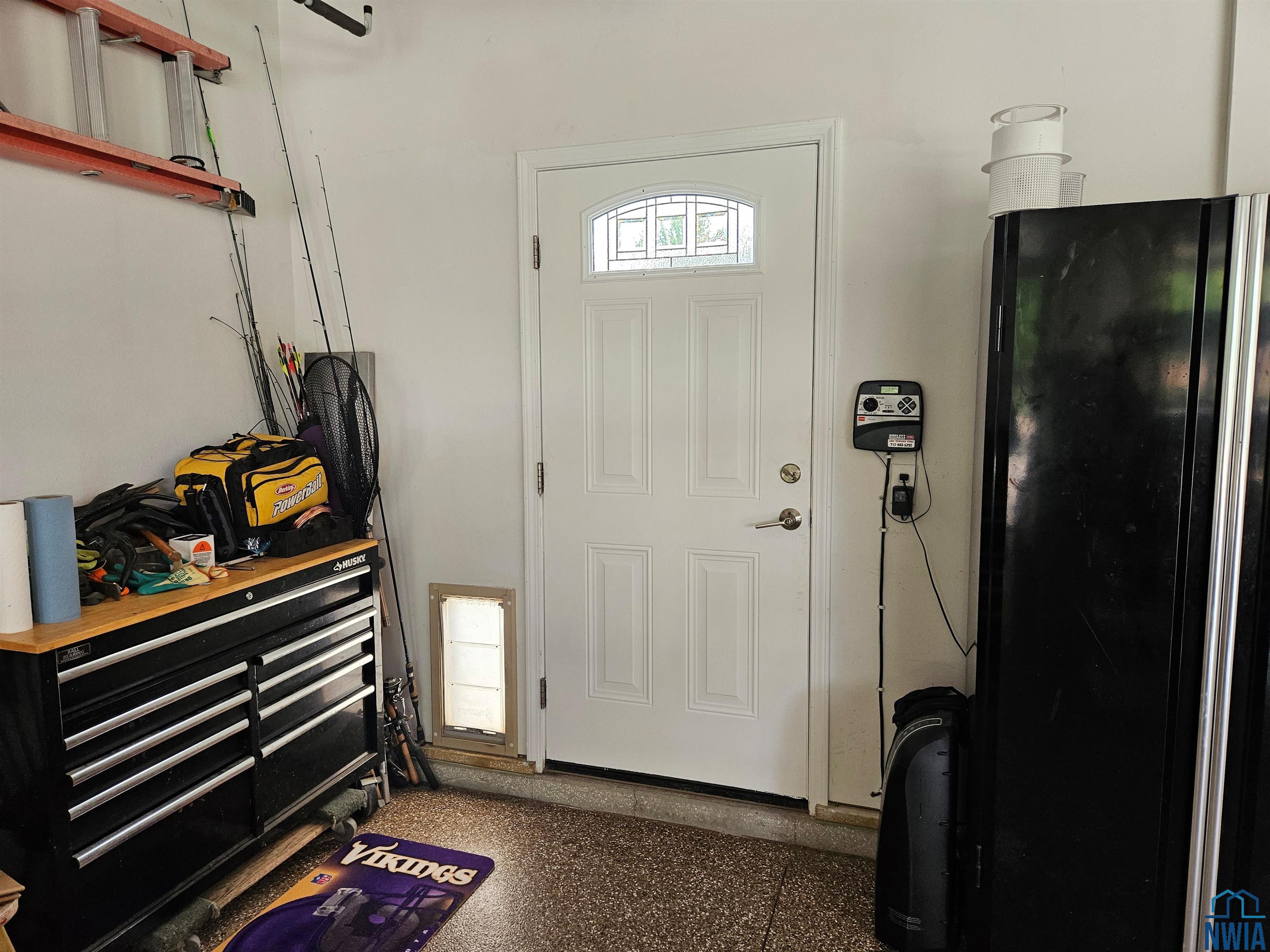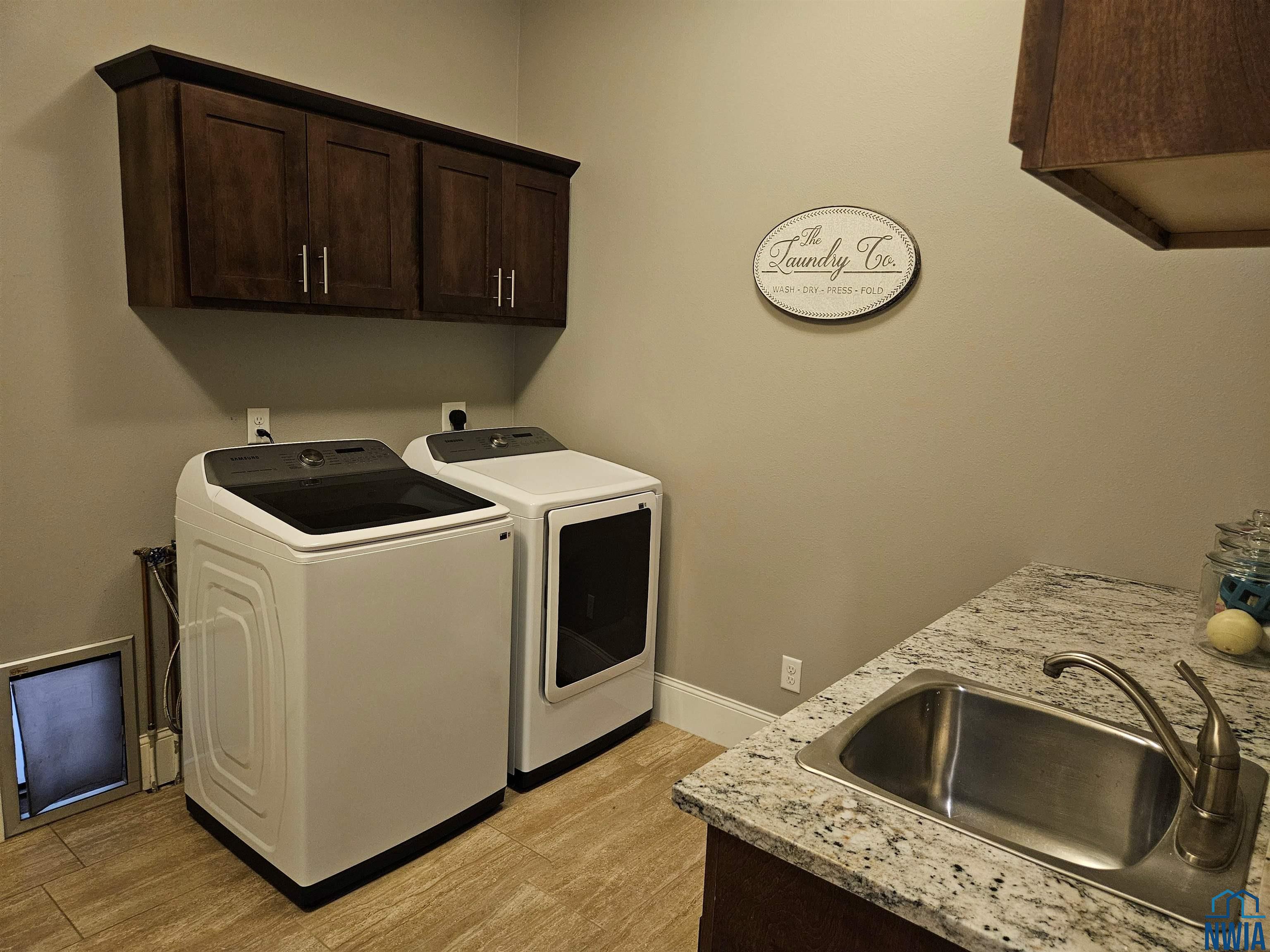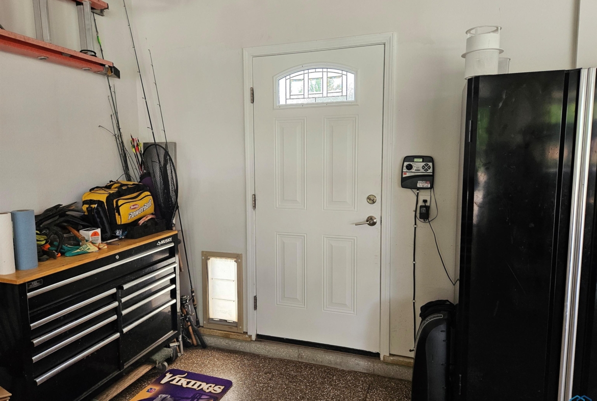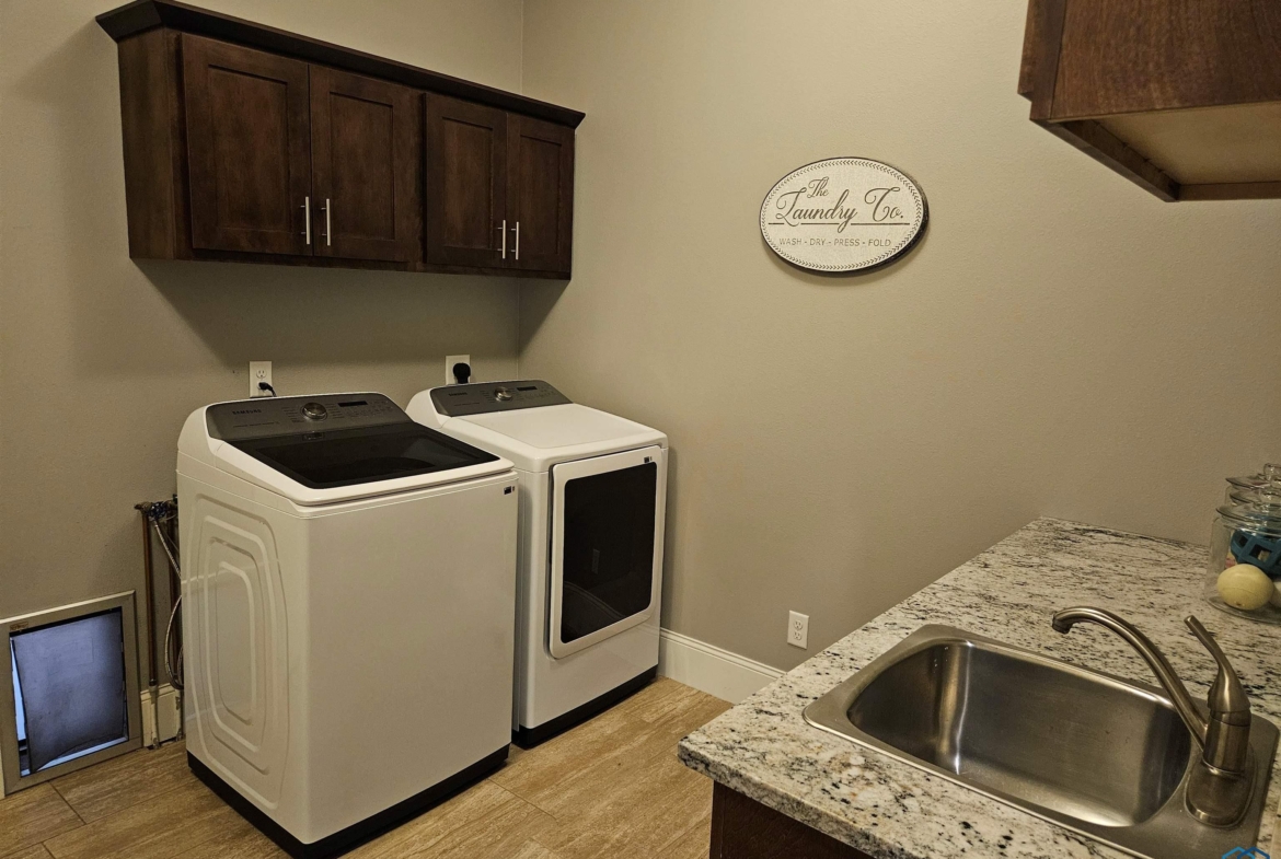 LaundryMain9x13Tiled flooring, sink, built-ins, rear closet, doggie door