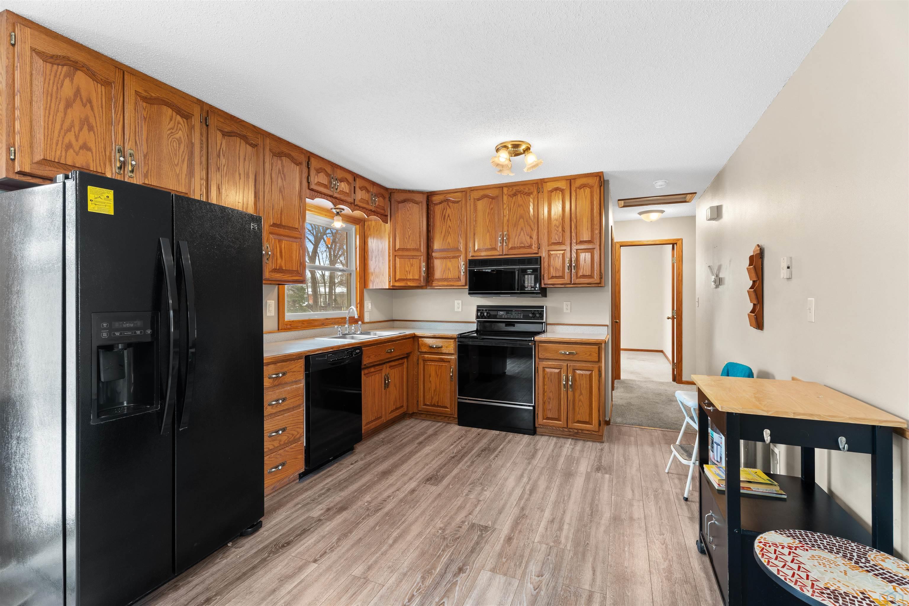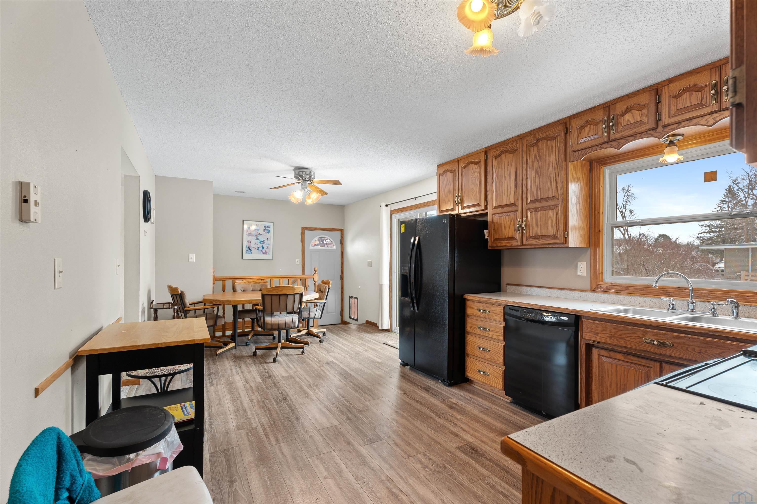 KitchenMain11 x 23Updated Oak Kitchen Cabinet, Plank flooring, SGD to backyard