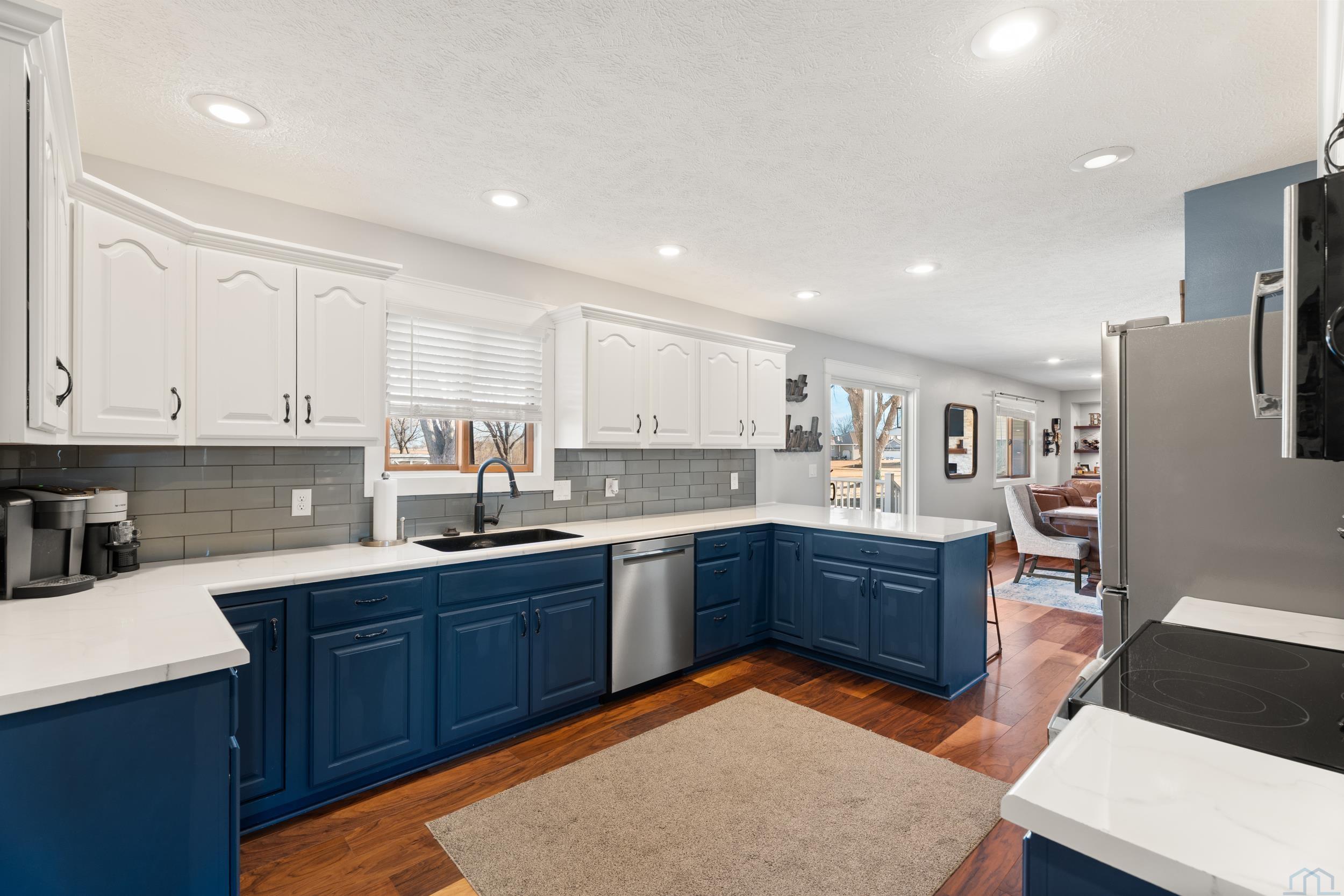 Beautiful home in SE Vermillion near the Bluffs Golf Course and Vermillion High School! 5 Bedrooms and 3.5 Baths provide plenty of room for holidays, hosting and hobbies. The main floor has TWO living spaces to relax and enjoy time at home. Updates since 2024 include new carpet throughout the home, remodel of front entryway, laundry room master bath, and kitchen appliances in December of 2025. Lights were added to the Living Room ceiling making the room bright in the evenings. The upstairs has 3 bedrooms and 2 baths, while the basement has 2 bedrooms and 1 bath plus another Family Room Lounge. This is the home you’ve been waiting for!!