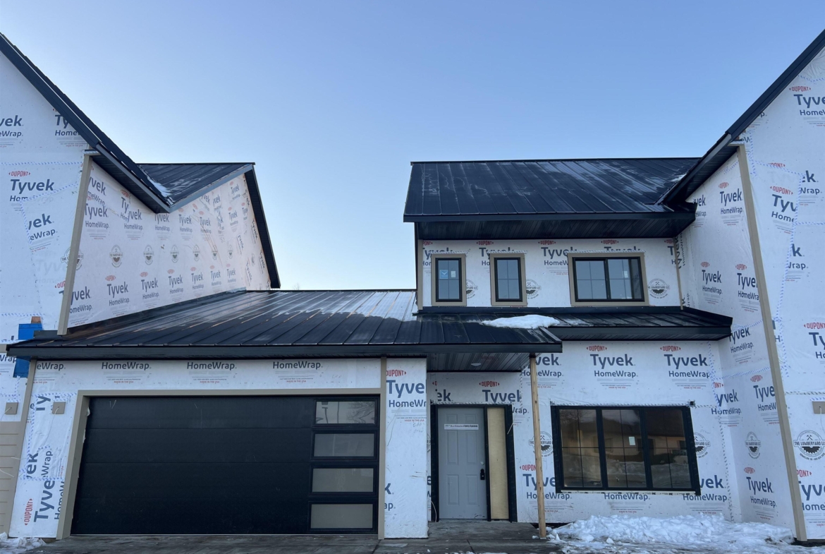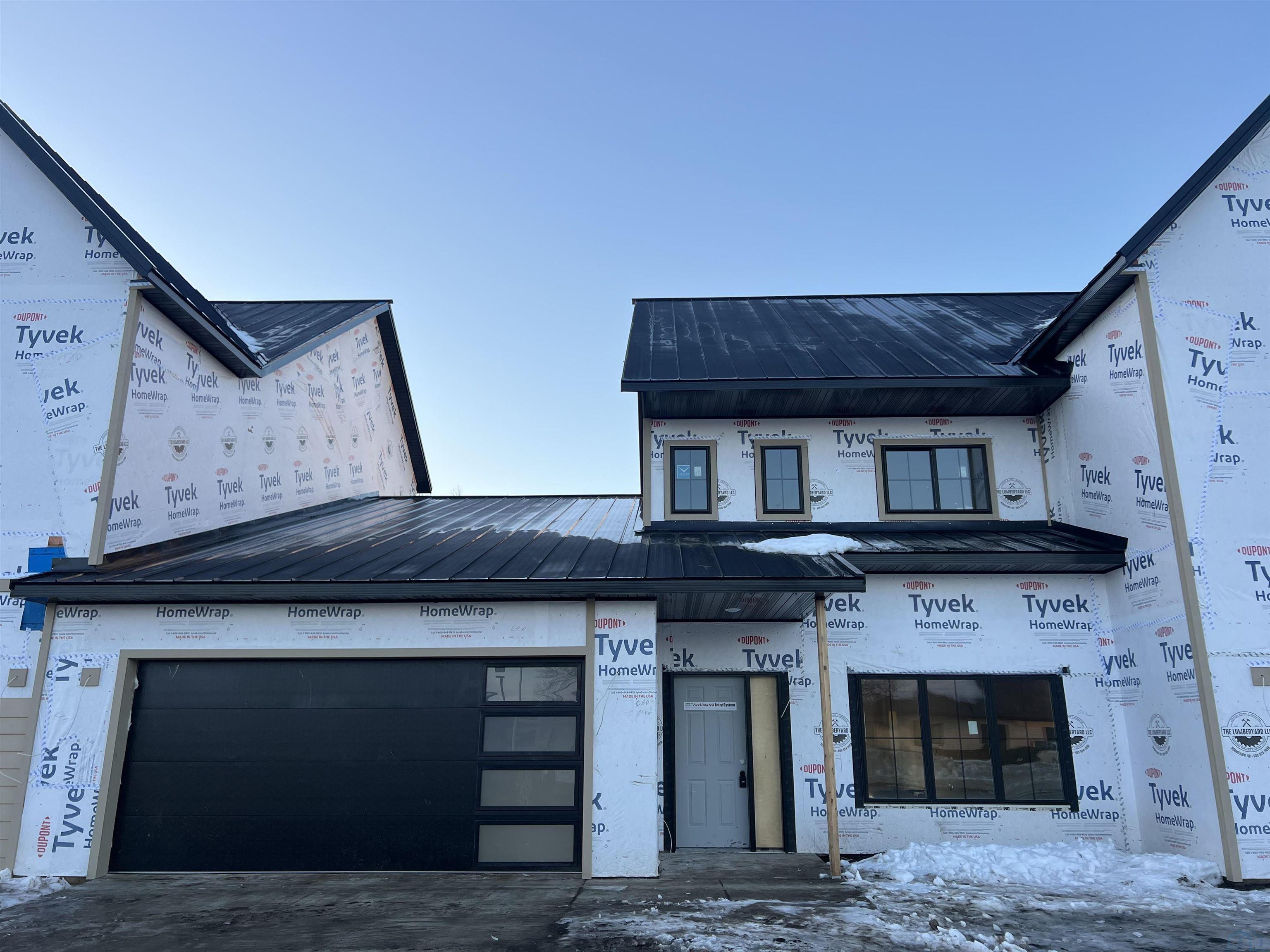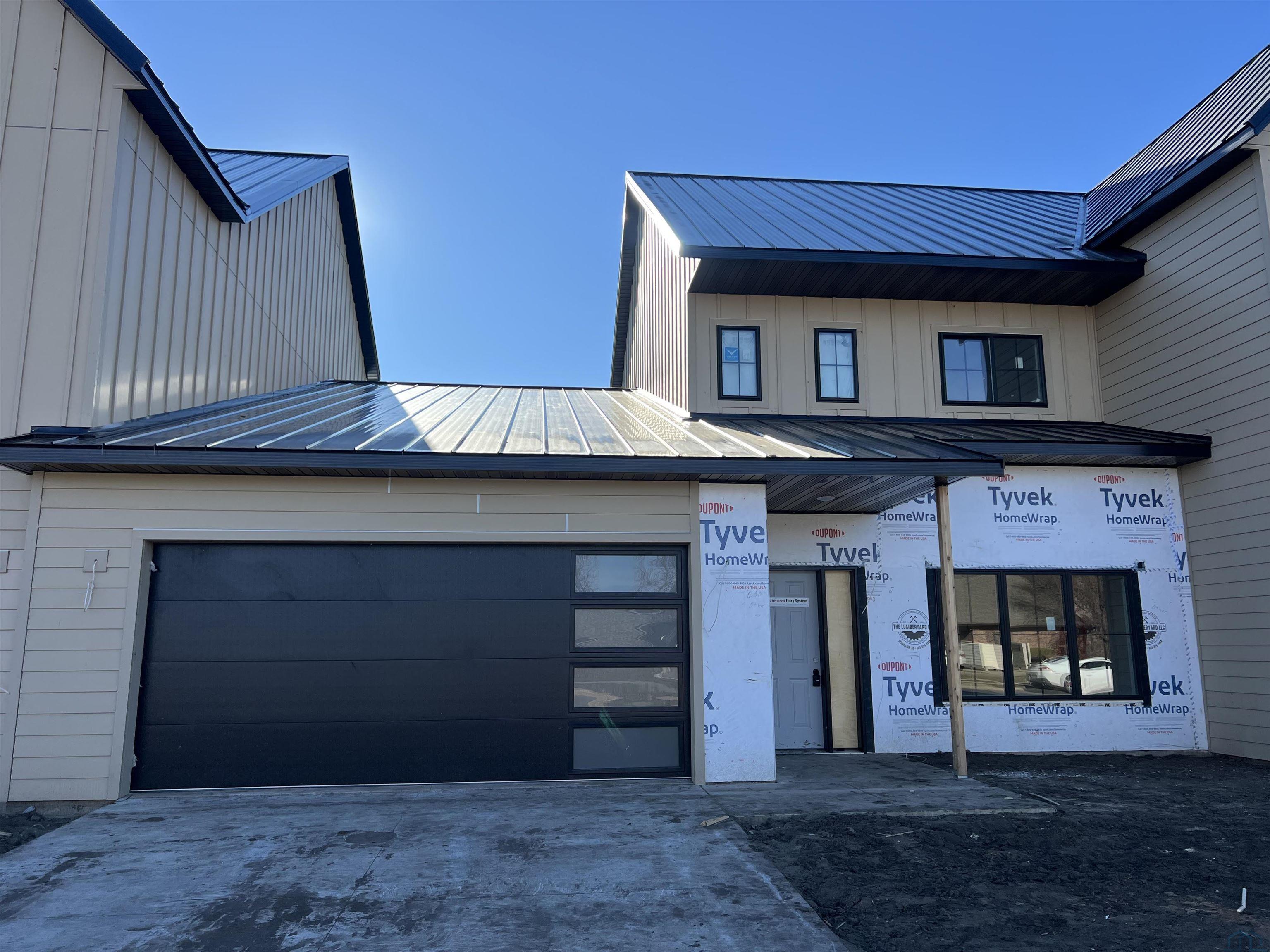 Welcome to North42! This beautiful townhome is part of Phase 1 of an exciting new development, centrally located in Vermillion just two blocks from the USD campus and the Dakota Dome. Thoughtfully designed with a modern farmhouse aesthetic, this home offers a truly unique layout you won’t find anywhere else. Step inside to a stunning two-story foyer where soaring ceilings extend to the second floor, creating a grand and open first impression with an upper-level overlook. This carefully designed plan features a main-floor primary suite complete with a walk-in closet, double-sink vanity, and a tiled shower. The spacious open-concept main level includes a sleek kitchen with a generous island offering seating for up to five, a dry bar with beverage refrigerator, and a large dining area ideal for entertaining. A cozy yet roomy living room features a sliding glass door leading to the backyard patio. Main-floor laundry and a convenient half bath complete the main level. Upstairs, you’ll find two additional bedrooms, one with a walk-in closet, along with a full bath and a sizable storage room. Throughout the home, thoughtfully selected finishes shine, including tile kitchen backsplash, tile tub and shower surrounds, beautiful modern lighting, and luxury vinyl plank flooring throughout the main level, stairs, and landing. Each unit will feature a unique mix of finishes, adding character and individuality. Large windows are another element adding to the allure of this timeless home. An attached two-stall garage completes this exceptional property. Estimated completion is spring 2026, but showings begin immediately—don’t miss your opportunity to be part of this exciting new development. Covenants and HOA details coming soon. For more information, please visit North42onDuke.com.