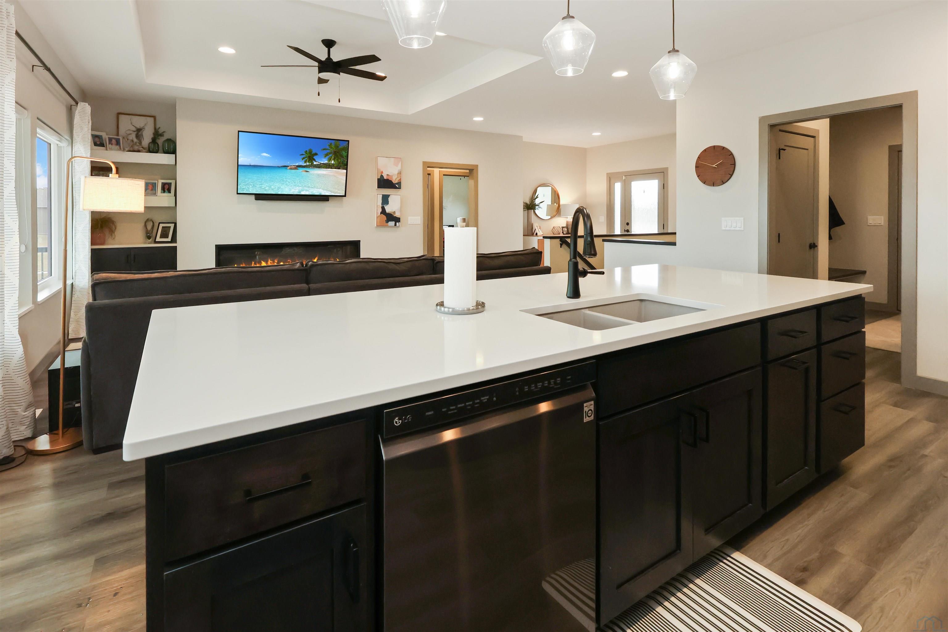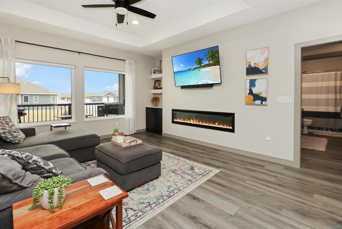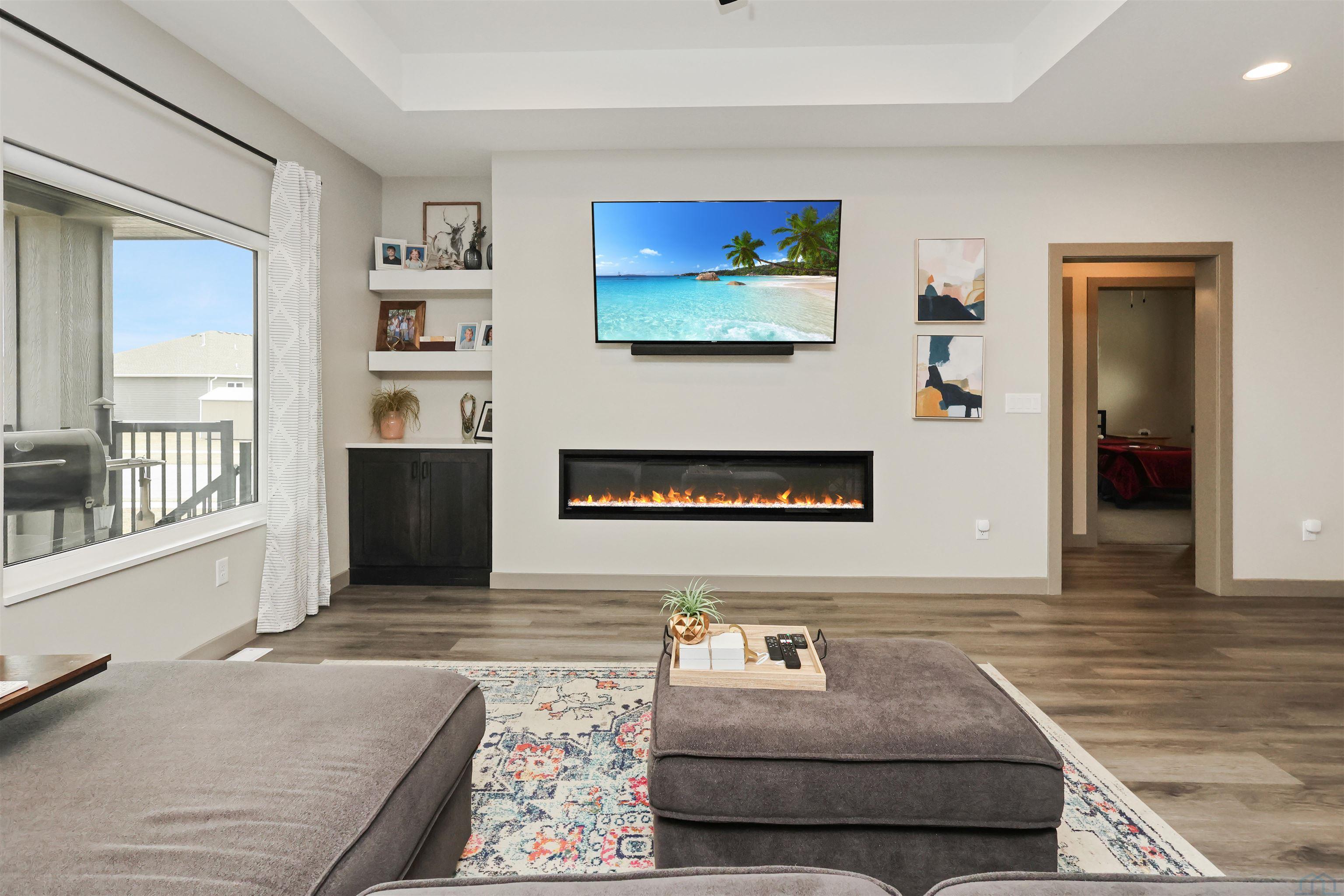 | Full Bath | Basement | 9x5 | Electric fireplace with builtins, tray ceiling |