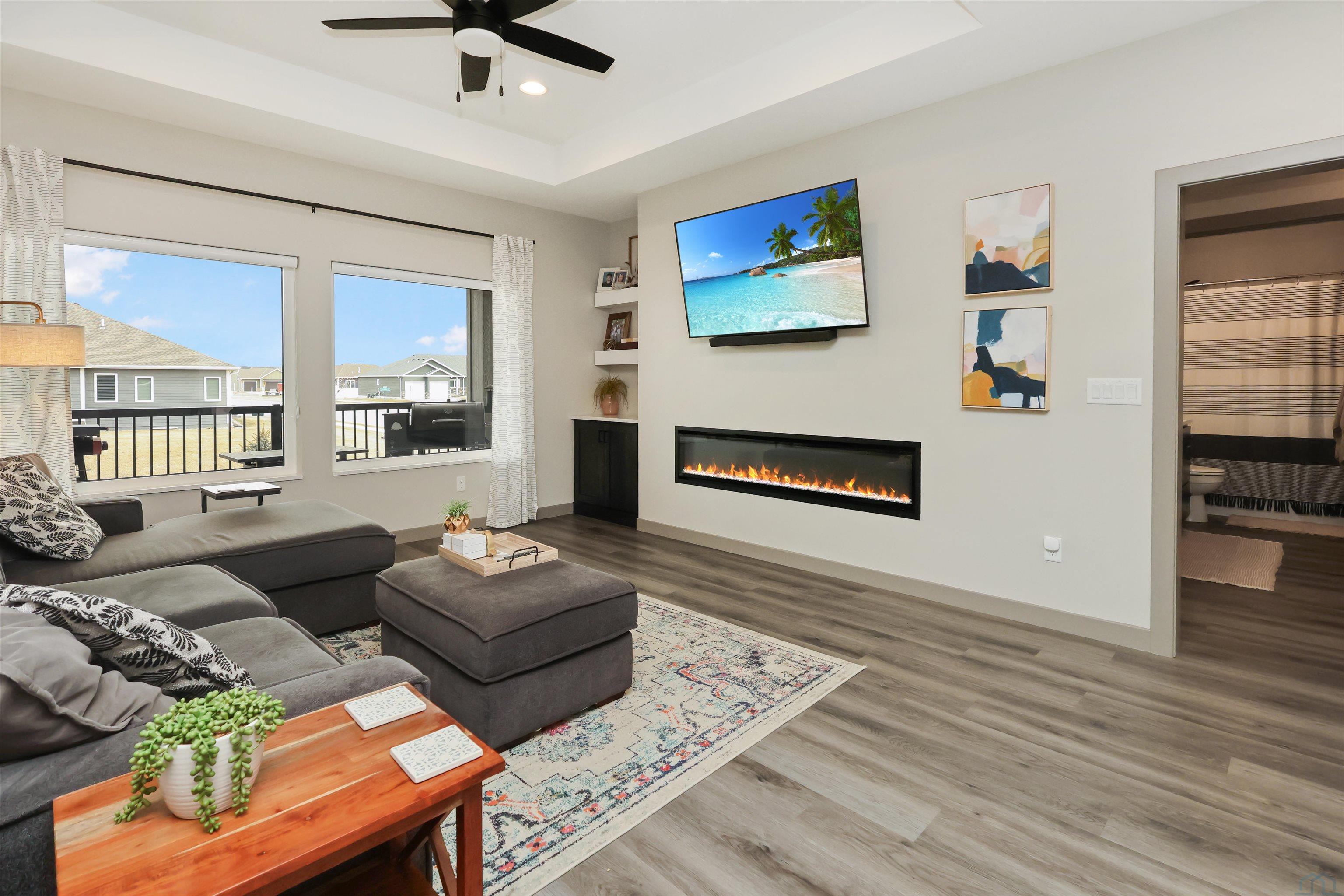 | Living | Main | 18 x 13 | Electric fireplace with builtins, tray ceiling |