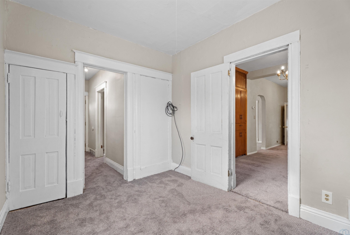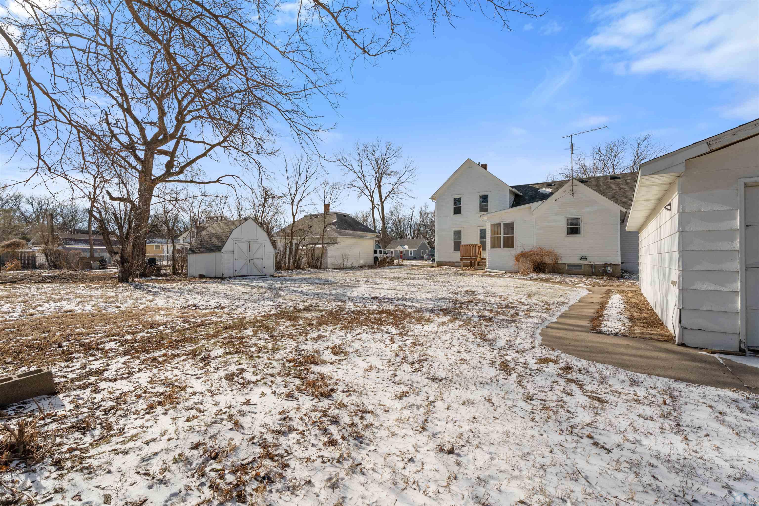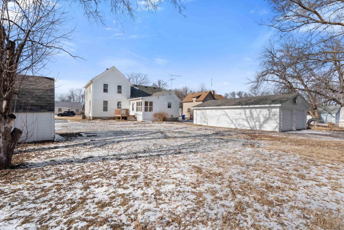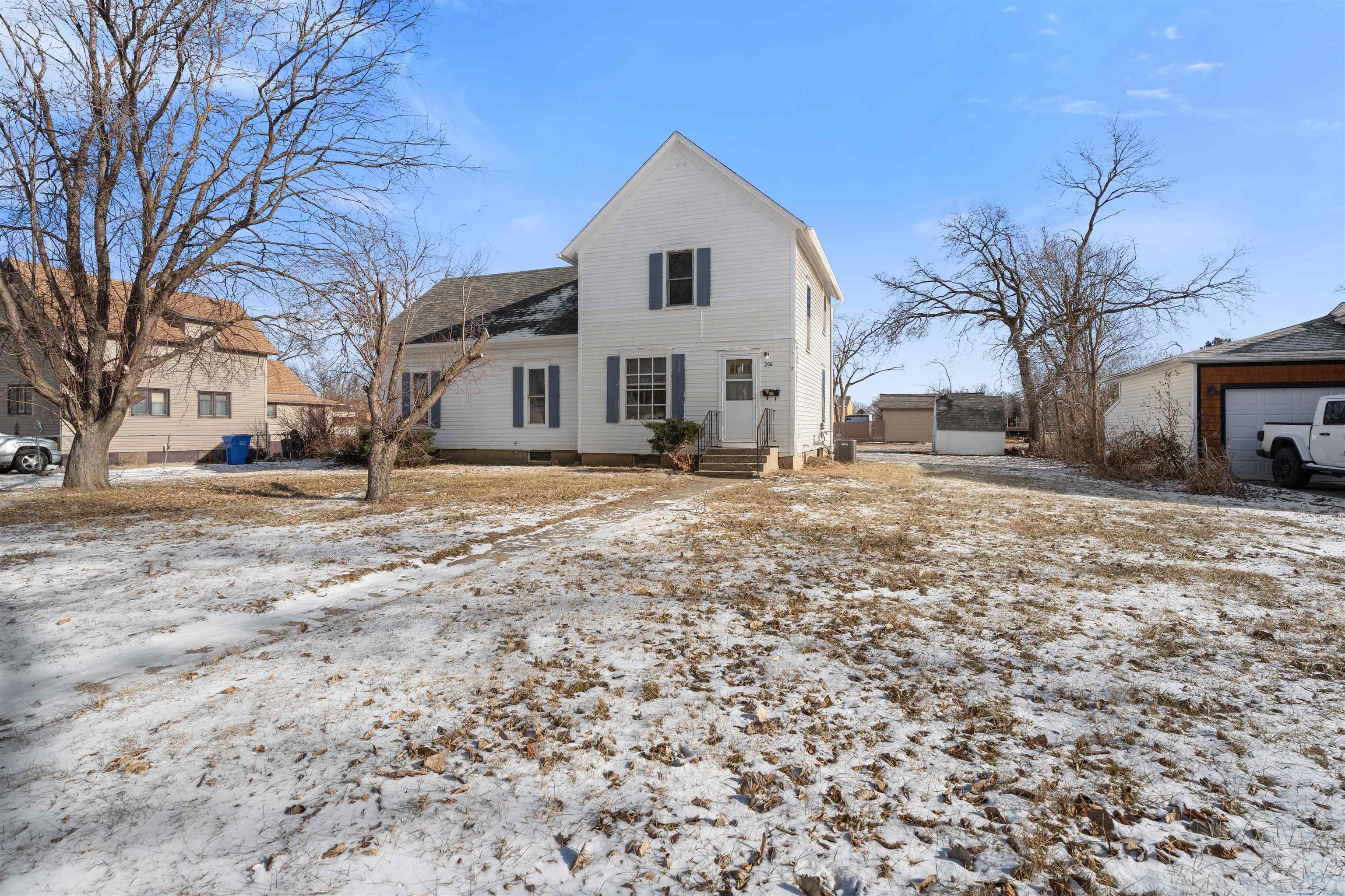 Excellent value for this very large home in great location near Prentis Park, hospital and high school. 6+ bedrooms, 3 full baths, tandem 2 car garage, shed, finished basement all on 2 lots with lots of parking. Lots of new carpet and paint. There is also an enclosed back porch with closet. Newer roof on house ,garage and shed. Good separation of bedrooms. Main floor has primary bedroom plus another bedroom/ office, full bath, updated kitchen, large dining room, living room and foyer. Southside second floor has 2 bdrms and full bath. Northside second floor has a 2 room suite. In basement, there is a newer bedroom with egress, a huge family room, laundry with full bath and a big furnace room. This is a lot of home for your dollars. See attached pictures.LISTING AGENT IS THE SELLER.