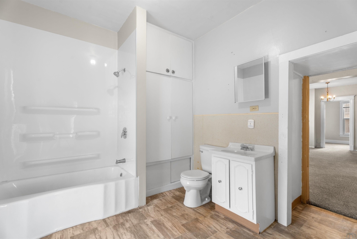 Full BathMain10x10new tub surround, in-room linen closet and door to din rm