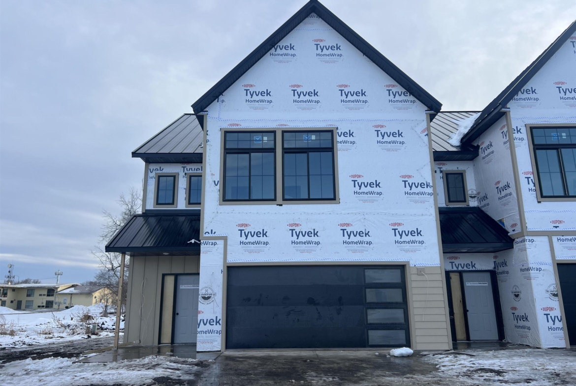 Welcome to North42! This beautiful townhome is part of Phase 1 of an exciting new development centrally located in Vermillion just 2 blocks from USD campus and the Dakota Dome. Thoughtfully designed with a modern farmhouse aesthetic, this home offers a truly unique layout you won’t find anywhere else. Step inside to a stunning two-story foyer where soaring ceilings extend to the second floor, creating a grand and open first impression with an upper-level overlook. The main level features a spacious open-concept floor plan, including a stylish kitchen with island, walk-in pantry, and designated dining area with a sliding glass door leading to the backyard patio. A roomy living area, convenient mudroom, and half bath complete the main floor. This end unit also offers extra yard space, additional privacy, and extra windows in the living room, flooding the space with natural light. Upstairs, the primary suite offers a private retreat with a double-sink vanity, tile-surround shower, and a spacious walk-in closet. Two additional generously sized bedrooms and a full bath complete the second level. Throughout the home, you’ll find thoughtfully selected finishes including tile kitchen backsplash, tile tub and shower surrounds, beautiful modern lighting, and luxury vinyl plank flooring throughout the main level, stairs, and landing. Each unit will feature a unique mix of finishes for added character. An attached two-stall garage completes this exceptional property. Estimated completion is spring 2026, but showings begin immediately—don’t miss your opportunity to be part of this exciting new development. Covenants and HOA details coming soon. For more information, please visit North42onDuke.com.