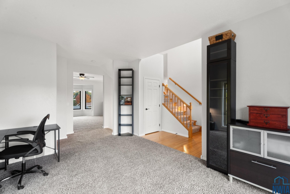 | Living | Main | 12 x 19 | Carpet, Large windows, open to Foyer |