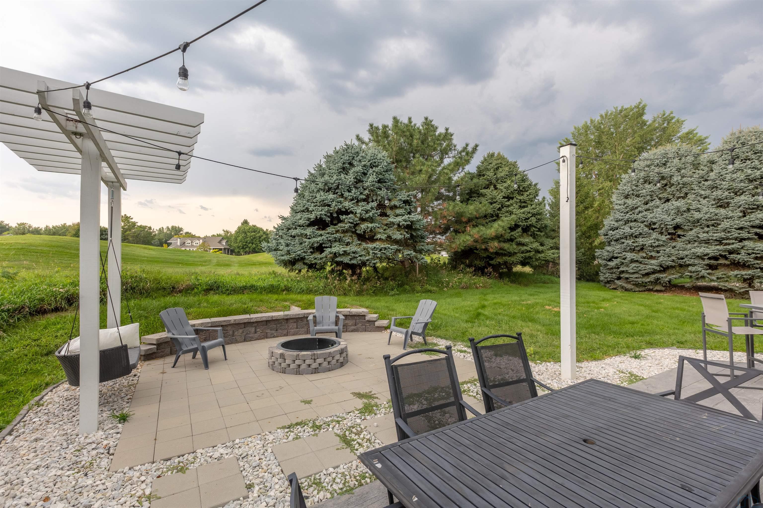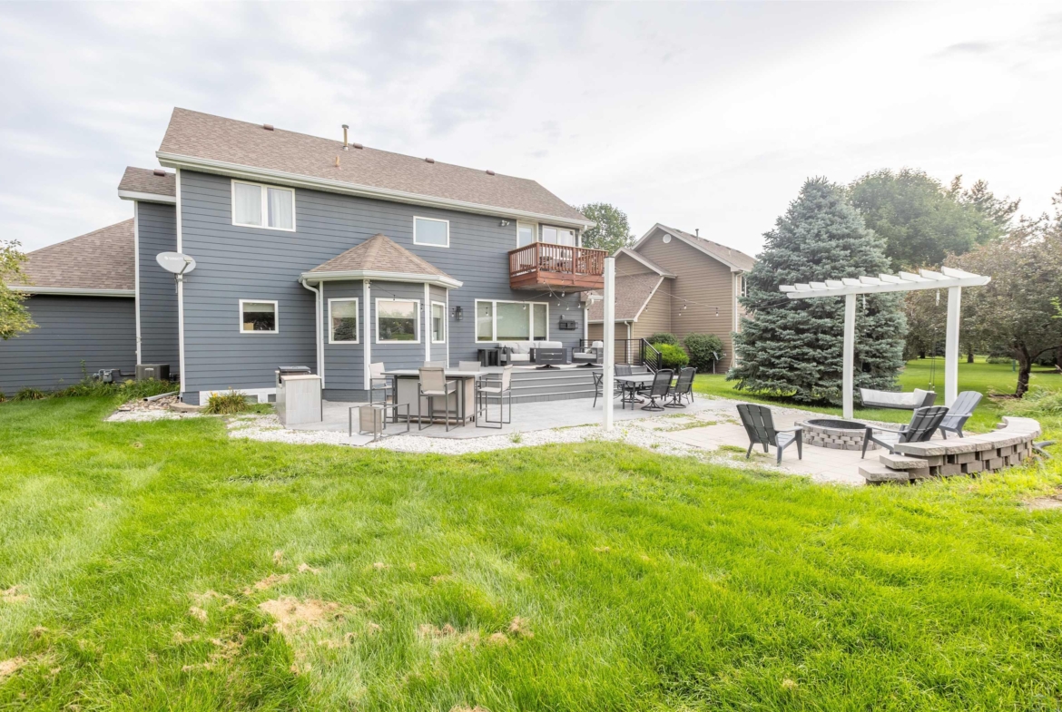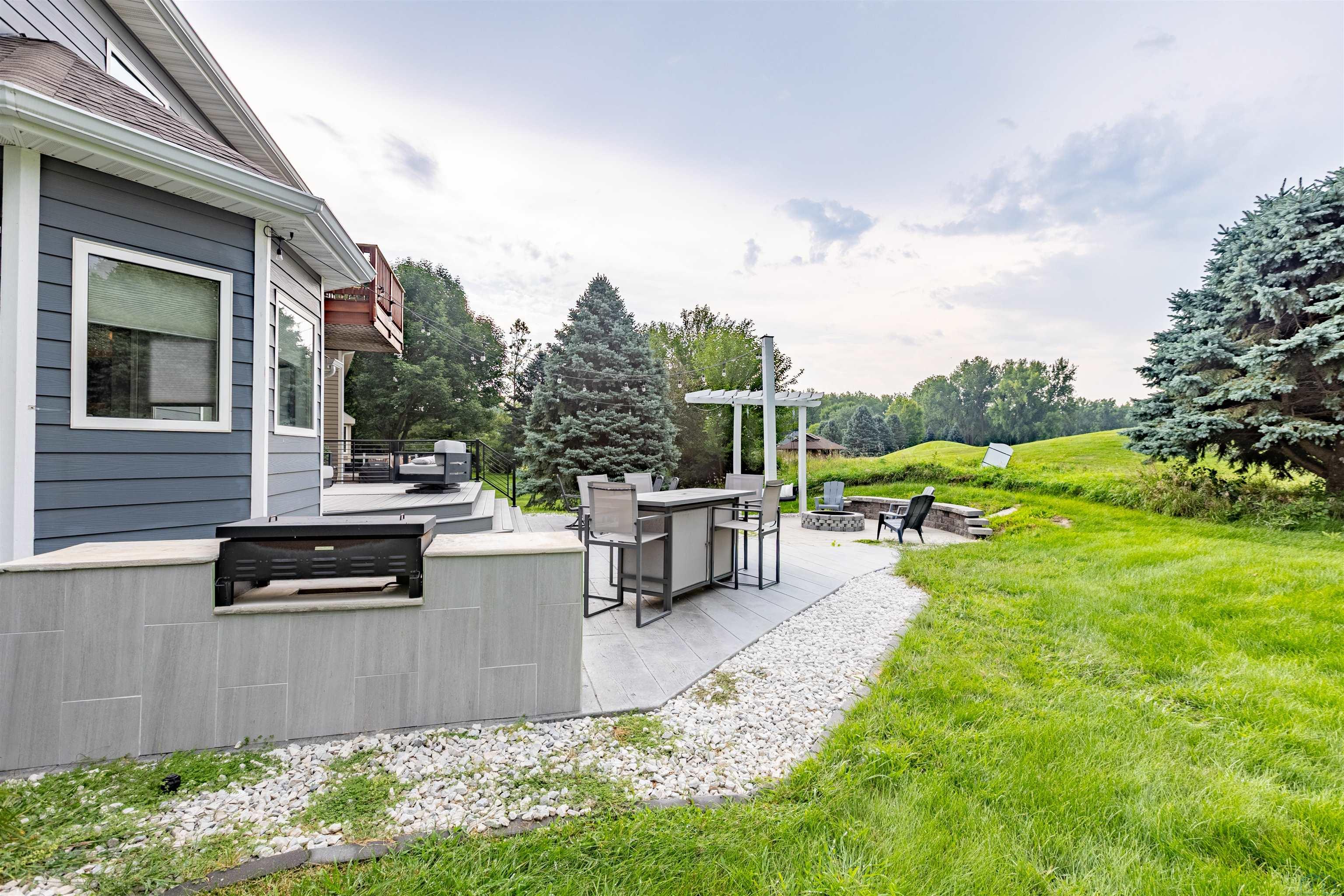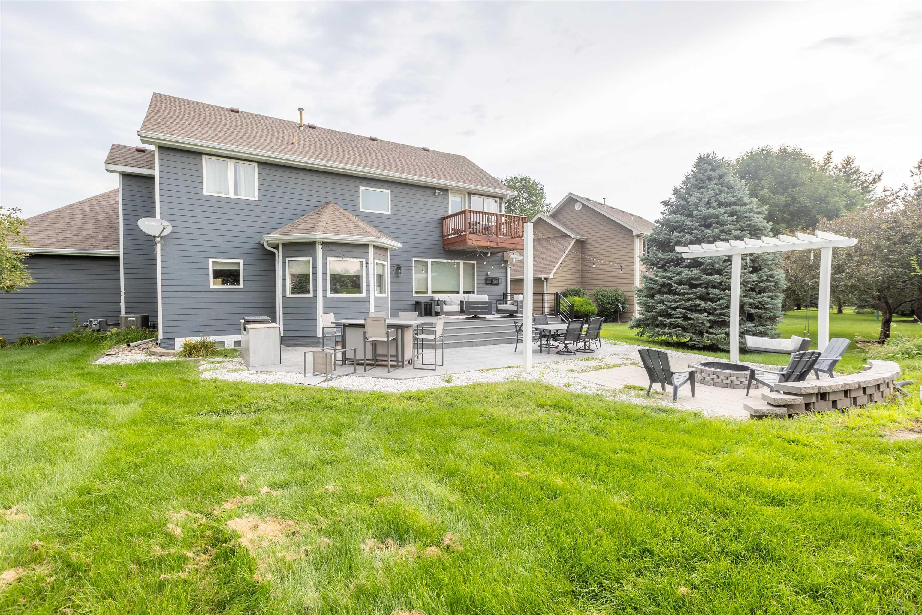 Incredible two story home in the Dakota Dunes Country Club addition with many recent updates. This spacious 5 bedroom, 4 bath home sits right on hole 1 of the golf course with great course and pond views. The main level has been tastefully updated offering a great mix of comfort and modern finishes. The spacious living room offers great views and a brand new fireplace wall. The large eat in kitchen has been remodeled, opens to the living area, and features new hardware, old island removal, painted white cabinetry, and a new butler’s pantry! Main level also features an updated half bath, formal dining area, and a laundry / mud room. The second level has an impressive master suite with a full bath, walk in tile shower, dual vanities, walk in closet, and a private deck with unbelievable views. Upper level also includes 3 additional bedrooms and a full bath. The lower level in this home has also been remodeled by the current owners and is a great space for entertaining. The new wet bar was recently finished, the full bath has a new vanity and mirror. The basement also has a large family room, a legal 5th bedroom, and storage space. The backyard has been transformed into your very own backyard oasis. This private setting features great views after tree removal, a new composite trex deck, a concrete stamped patio, new fire pit, outdoor kitchen, new pergola, and great exterior lighting. Recent updates also include fresh paint throughout giving this home a clean modern feel. This one of a kind property has plenty of space, a great layout, and an unbeatable location on the golf course. There is a lot to love in this home so Don’t Delay!