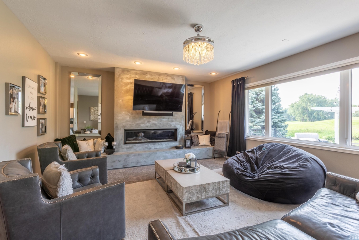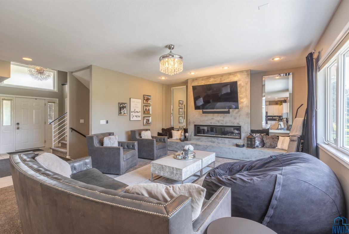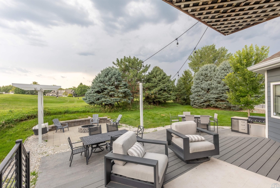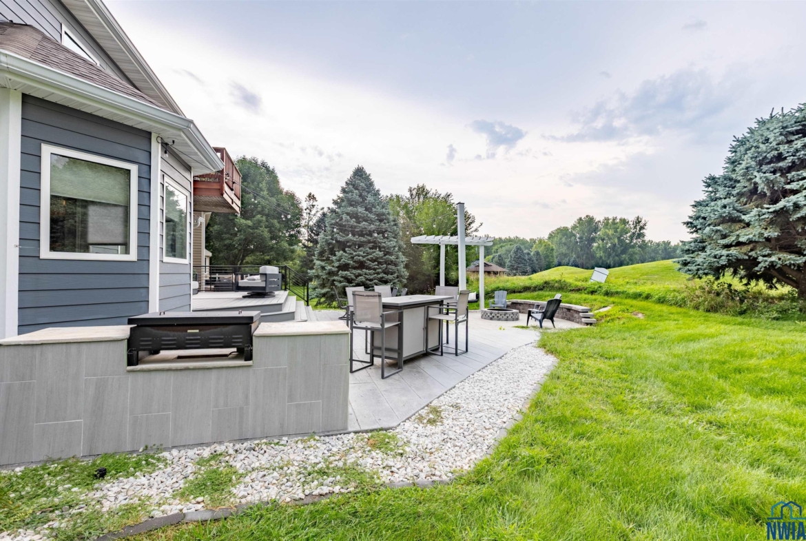 Incredible two story home in the Dakota Dunes Country Club addition with many recent updates. This spacious 5 bedroom, 4 bath home sits right on hole 1 of the golf course with great course and pond views. The main level has been tastefully updated offering a great mix of comfort and modern finishes. The spacious living room offers great views and a brand new fireplace wall. The large eat in kitchen has been remodeled, opens to the living area, and features new hardware, old island removal, painted white cabinetry, and a new butler’s pantry! Main level also features an updated half bath, formal dining area, and a laundry / mud room. The second level has an impressive master suite with a full bath, walk in tile shower, dual vanities, walk in closet, and a private deck with unbelievable views. Upper level also includes 3 additional bedrooms and a full bath. The lower level in this home has also been remodeled by the current owners and is a great space for entertaining. The new wet bar was recently finished, the full bath has a new vanity and mirror. The basement also has a large family room, a legal 5th bedroom, and storage space. The backyard has been transformed into your very own backyard oasis. This private setting features great views after tree removal, a new composite trex deck, a concrete stamped patio, new fire pit, outdoor kitchen, new pergola, and great exterior lighting. Recent updates also include fresh paint throughout giving this home a clean modern feel. This one of a kind property has plenty of space, a great layout, and an unbeatable location on the golf course. There is a lot to love in this home so Don’t Delay!
