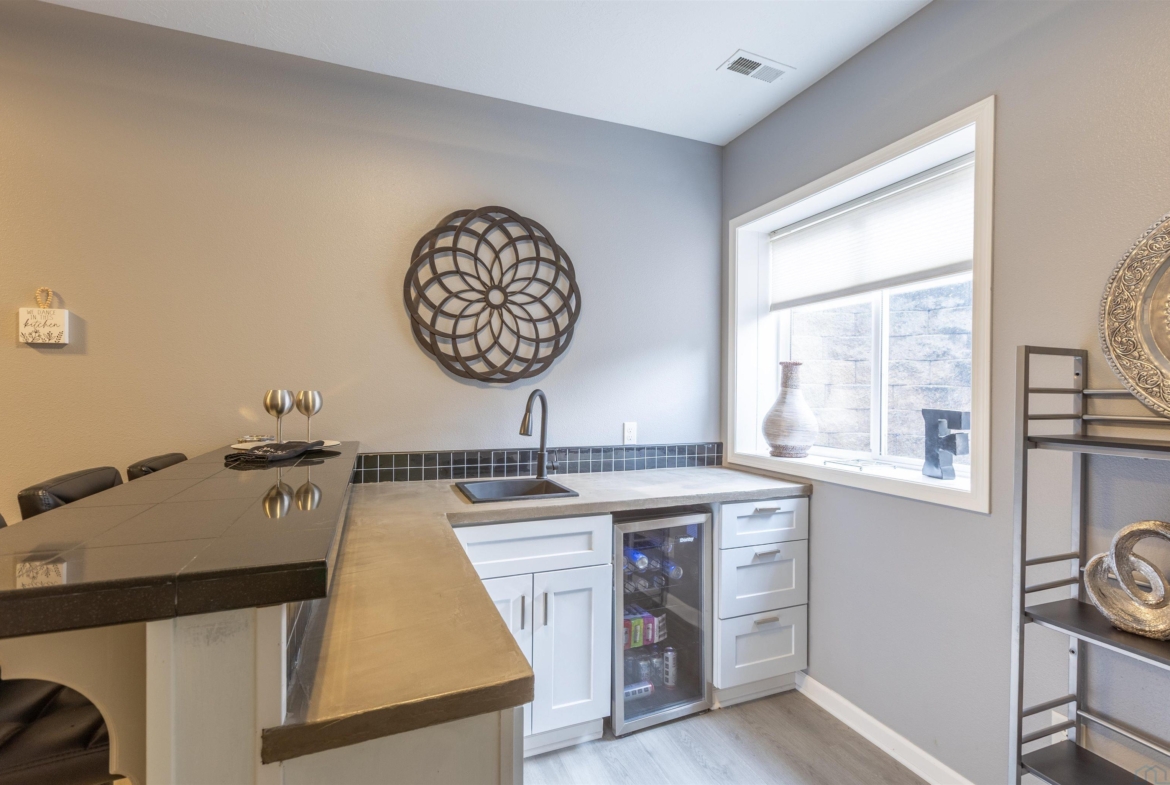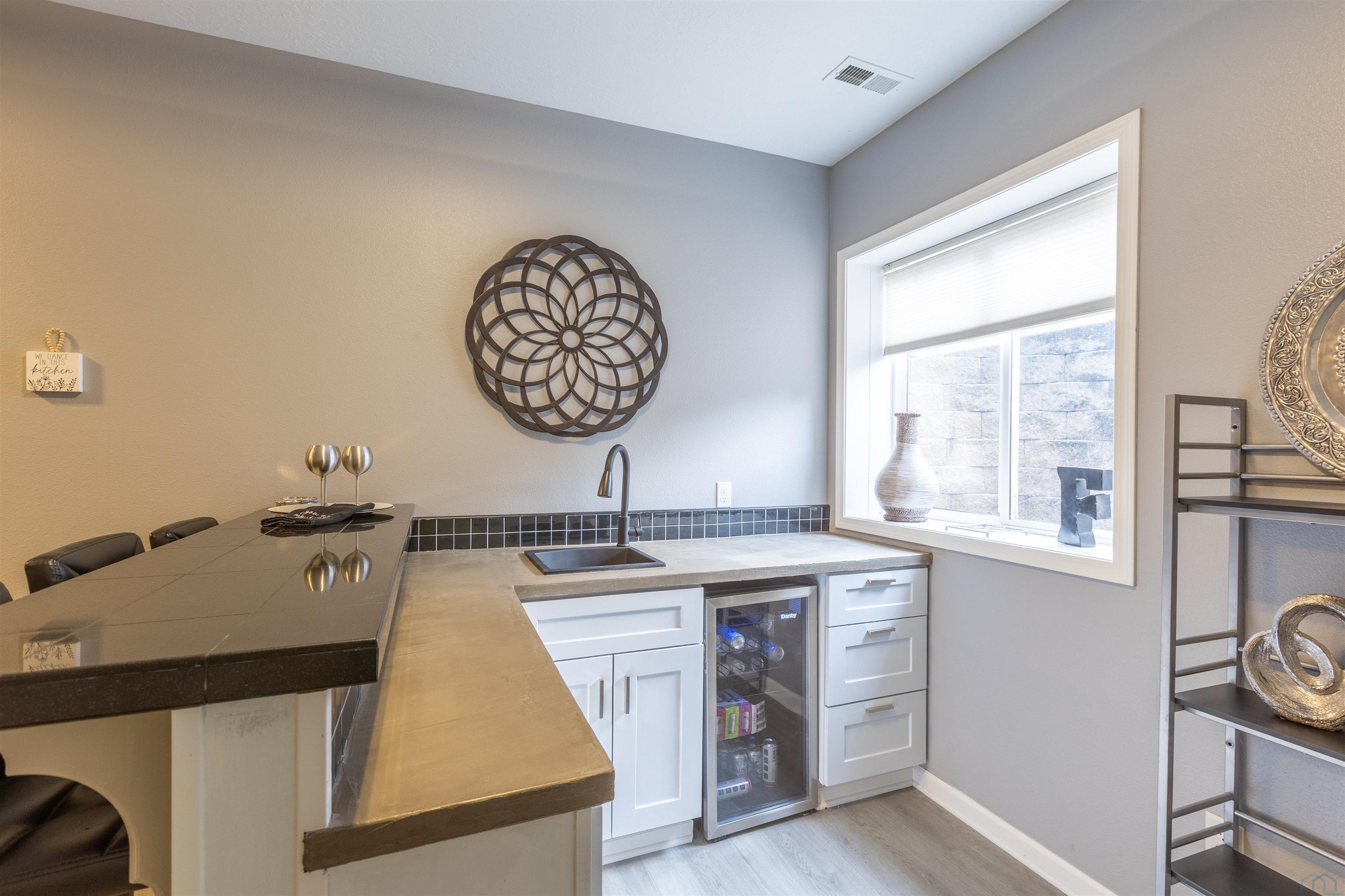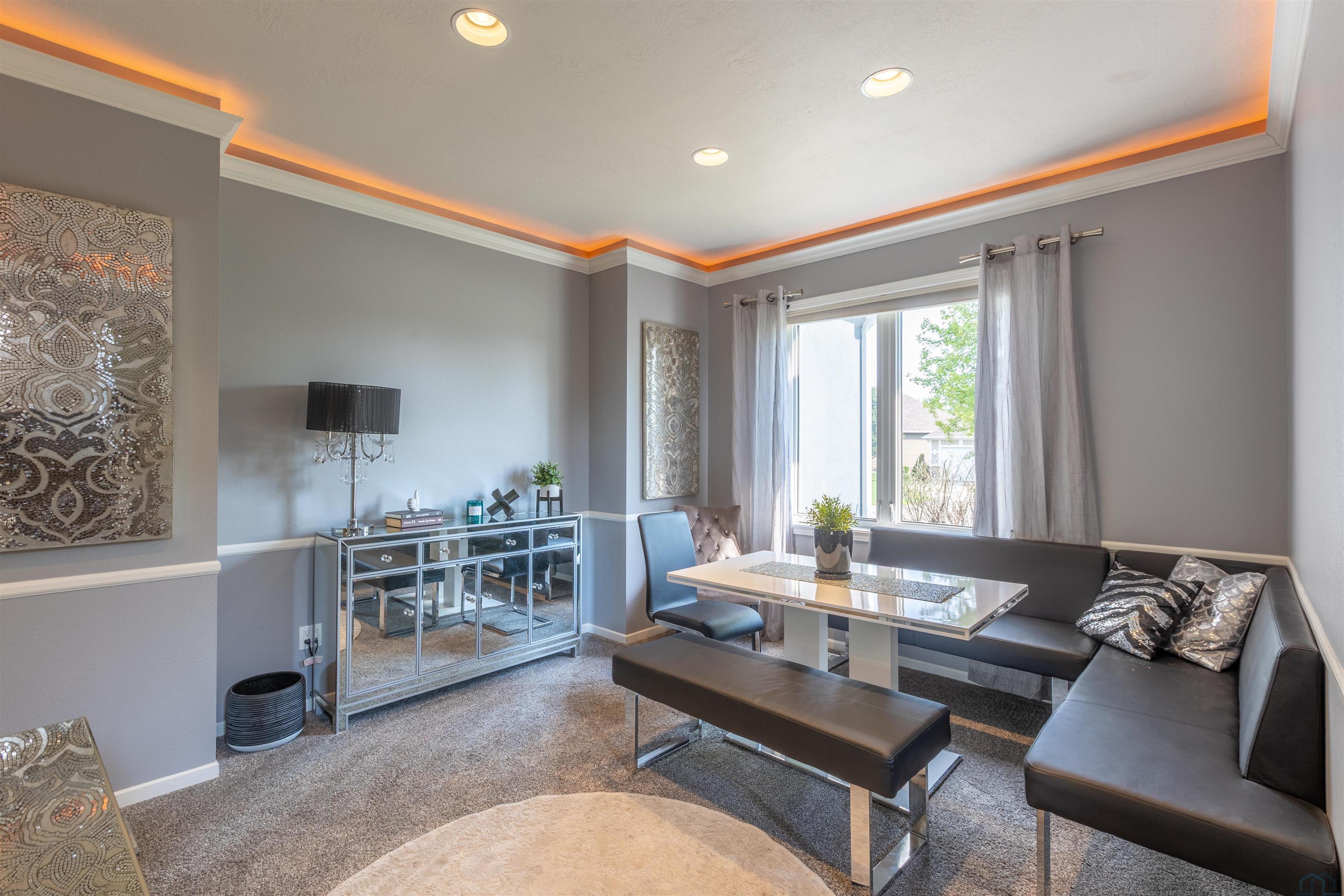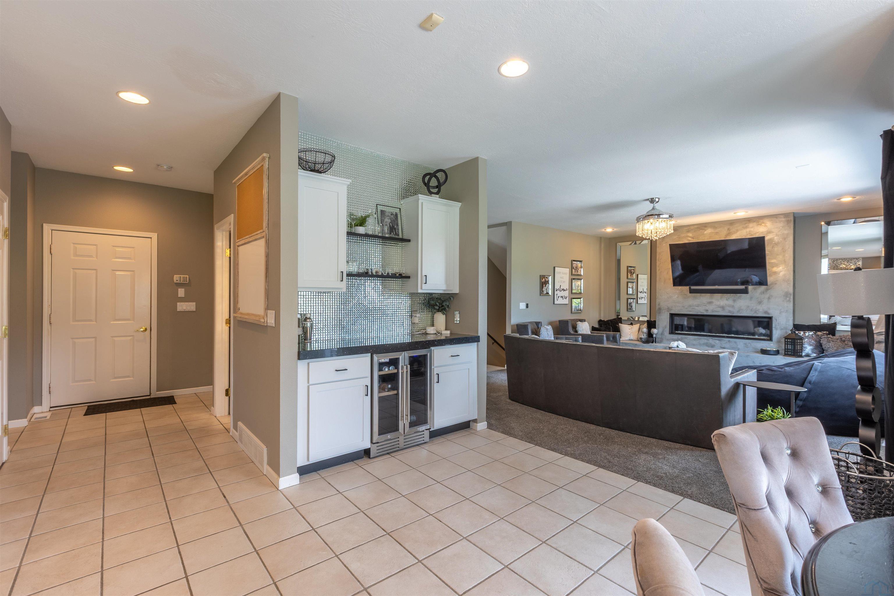 Incredible two story home in the Dakota Dunes Country Club addition with many recent updates. This spacious 5 bedroom, 4 bath home sits right on hole 1 of the golf course with great course and pond views. The main level has been tastefully updated offering a great mix of comfort and modern finishes. The spacious living room offers great views and a brand new fireplace wall. The large eat in kitchen has been remodeled, opens to the living area, and features new hardware, old island removal, painted white cabinetry, and a new butler’s pantry! Main level also features an updated half bath, formal dining area, and a laundry / mud room. The second level has an impressive master suite with a full bath, walk in tile shower, dual vanities, walk in closet, and a private deck with unbelievable views. Upper level also includes 3 additional bedrooms and a full bath. The lower level in this home has also been remodeled by the current owners and is a great space for entertaining. The new wet bar was recently finished, the full bath has a new vanity and mirror. The basement also has a large family room, a legal 5th bedroom, and storage space. The backyard has been transformed into your very own backyard oasis. This private setting features great views after tree removal, a new composite trex deck, a concrete stamped patio, new fire pit, outdoor kitchen, new pergola, and great exterior lighting. Recent updates also include fresh paint throughout giving this home a clean modern feel. This one of a kind property has plenty of space, a great layout, and an unbeatable location on the golf course. There is a lot to love in this home so Don’t Delay!