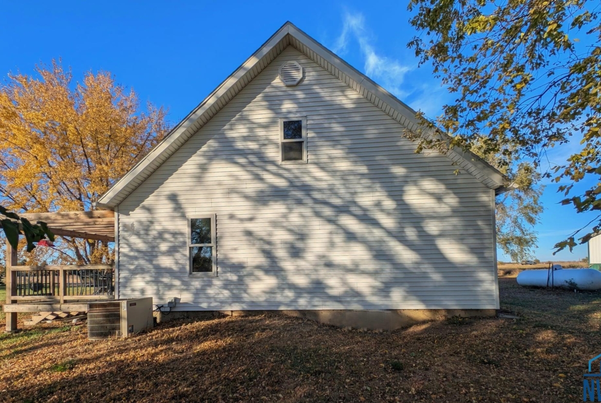 5.77 peaceful acres at the corner of 471st Ave and 313th street, on an oil road close to Vermillion and is perfect for people commuting to Sioux Falls, Beresford, Vermillion or Sioux City, IA. You can relax on the quaint front porch or on the well shaded side Deck which is a great place for a BBQ or just to enjoy the outdoors. There’s a 42 x 60 shed with electricity, with plenty of storage and room for all your hobbies The home has one bedroom on the main floor and two bedrooms upstairs, The Roof on the house was installed in 2022. Also included with this wonderful property is a large two-story building that was once the community church, just imagine what you could do with this.