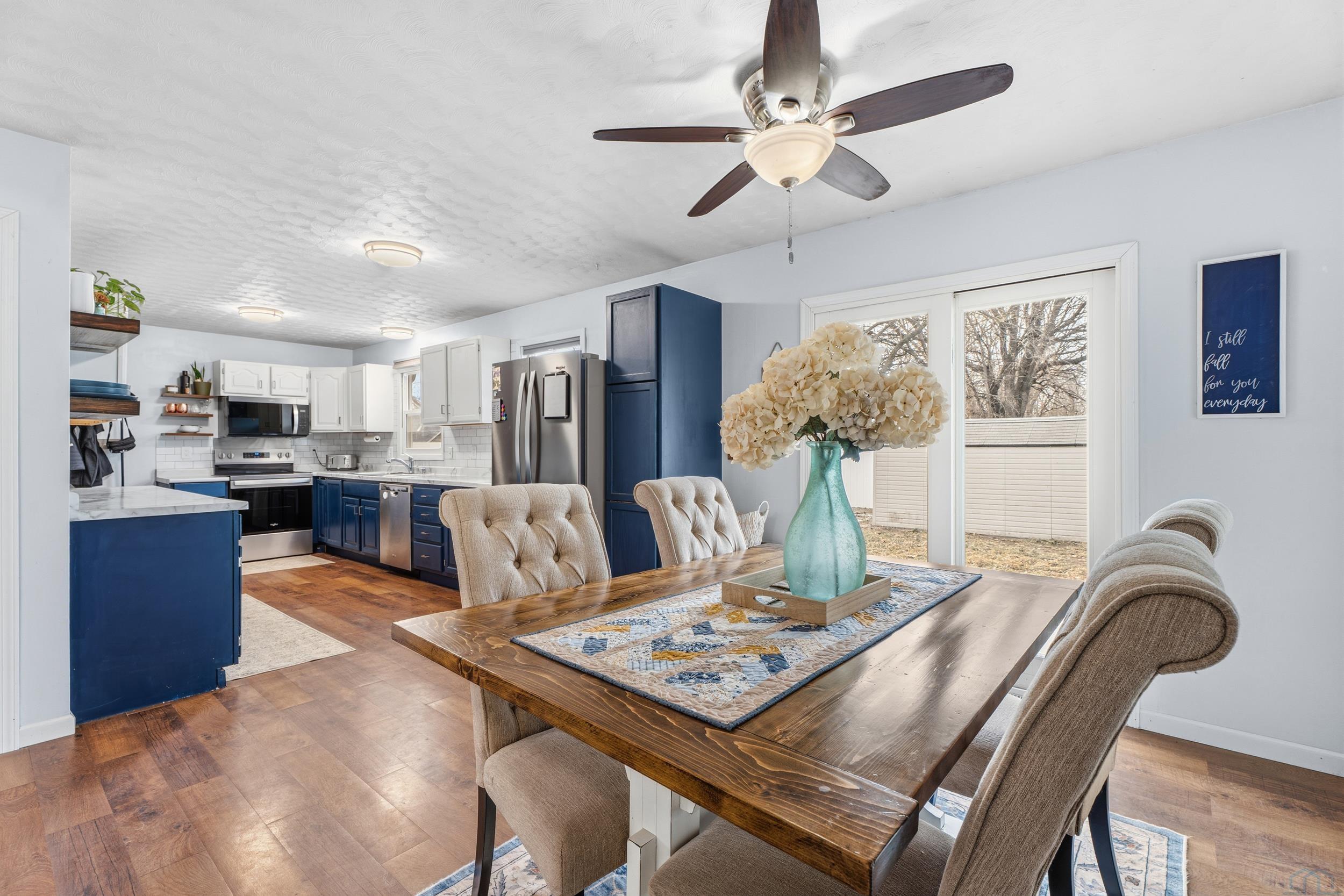 $6000 credit for Buyer Costs included in the price! Don’t let the classic 1976 exterior fool you – step inside 322 W Dartmouth and discover what happens when a complete modern renovation meets Vermillion’s most walkable neighborhood. Every inch of this 4-bedroom, 2-bath home has been thoughtfully updated: new main-floor windows flooding rooms with light, fresh luxury vinyl plank throughout, a fully reimagined kitchen with new counters and stainless appliances, and updated baths that feel like they belong in a brand-new build. The 1,976-square-foot layout flows effortlessly from entertaining spaces to quiet retreats, with a finished basement featuring recessed lighting, a custom bar, and room to spread out. Oh, and the projector and screen are INCLUDED. Outside, the transformation continues. A composite deck off the new patio door overlooks a fenced backyard – the kind of low-effort outdoor space that makes Vermillion summers feel easy. To keep the garages just for cars, there’s a maintenance-free shed on a concrete pad in the backyard. Walk to USD campus, head downtown for morning coffee, afternoon runs at Barstow Park, or downtown errands that never require getting in the car. The neighborhood hum is all here – schools, green space, local favorites – but the street itself stays quiet and tree-lined. This isn’t a flip. This is what happens when someone puts in the work so you don’t have to. Move in, unpack, and start living.