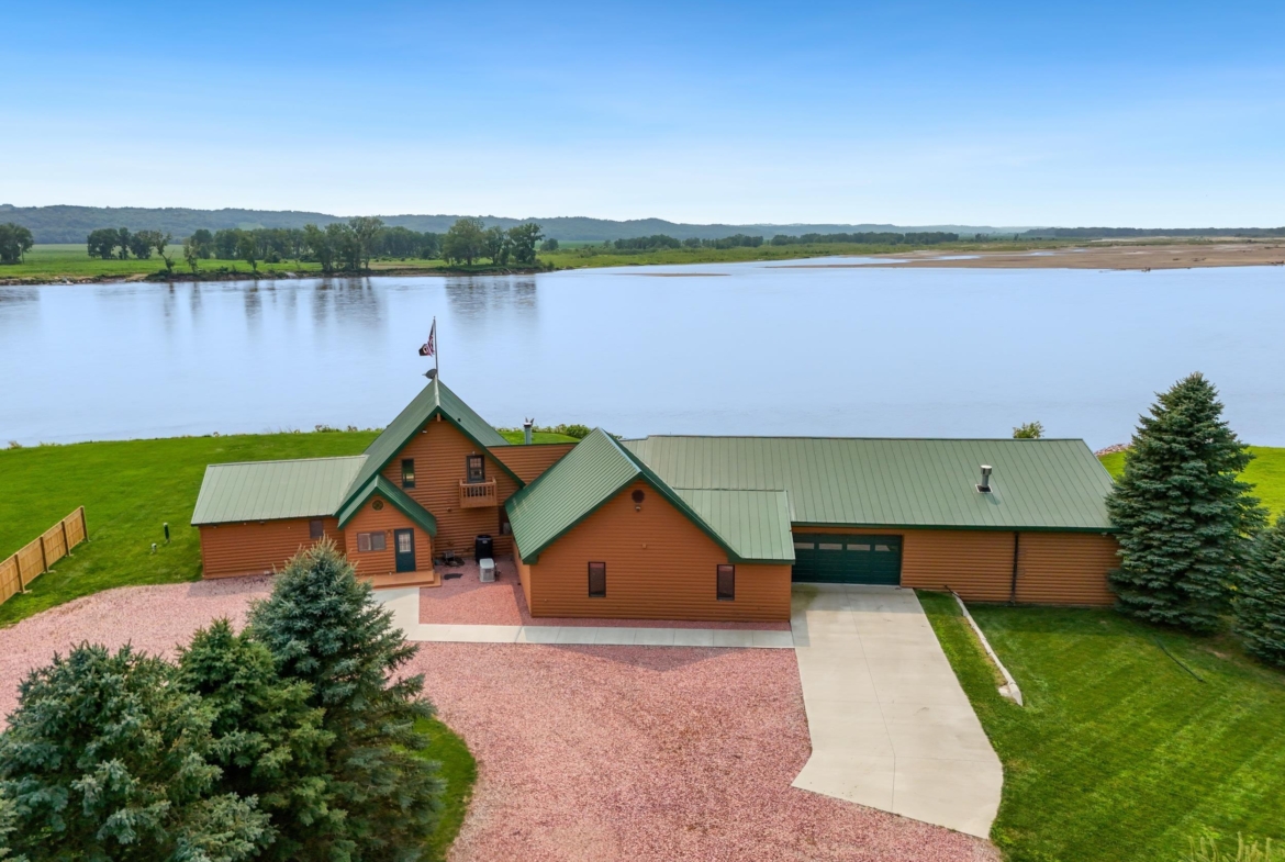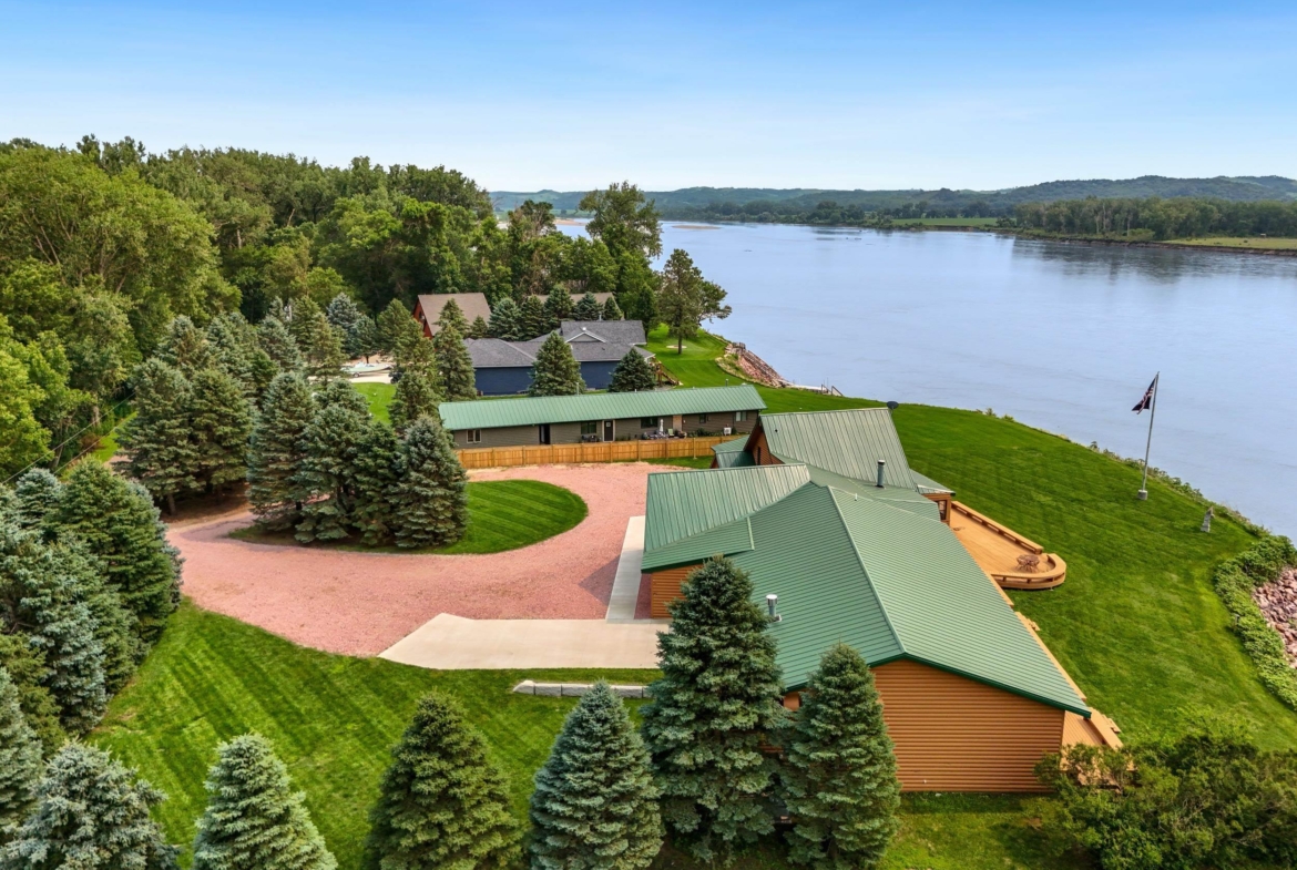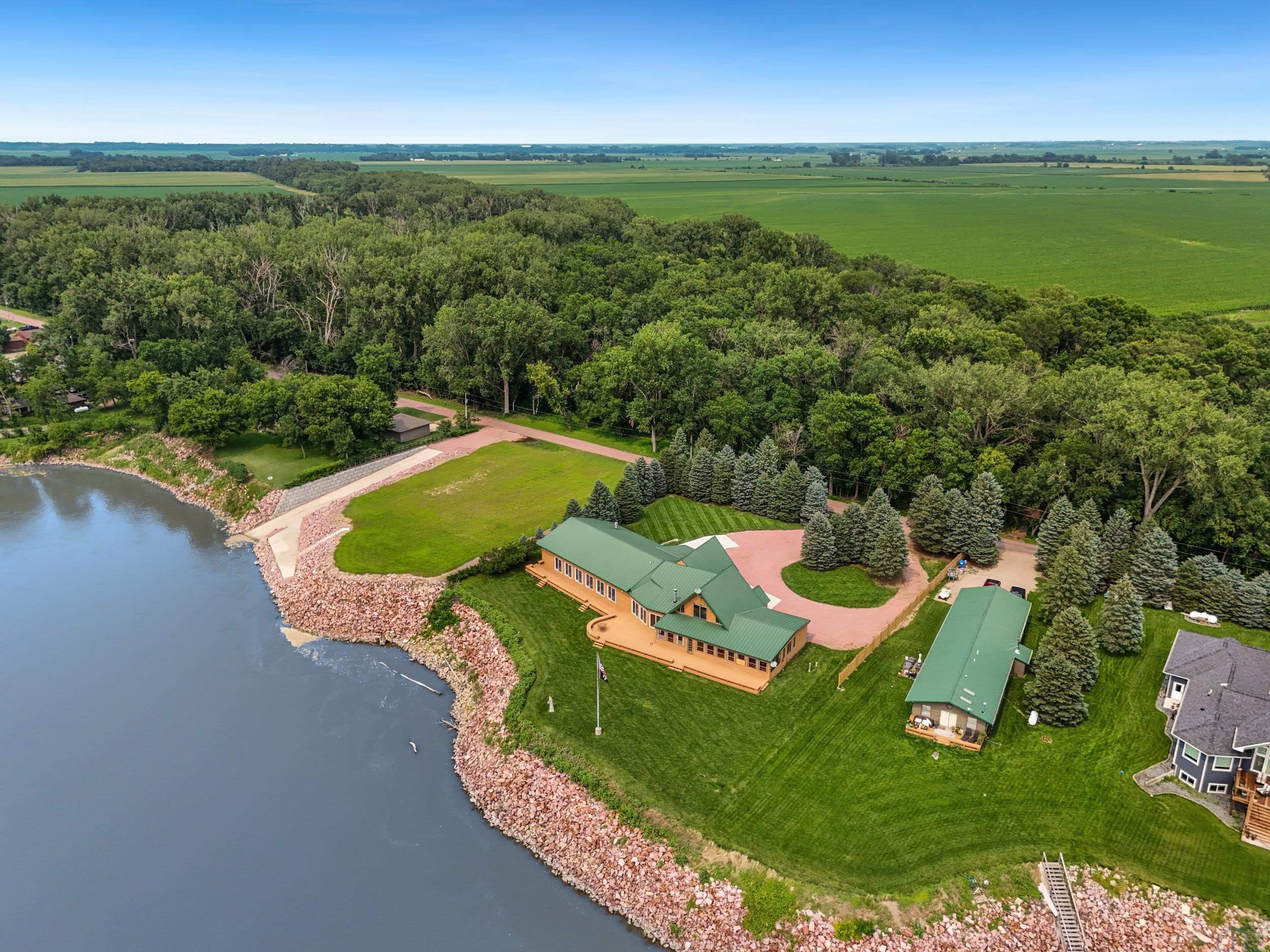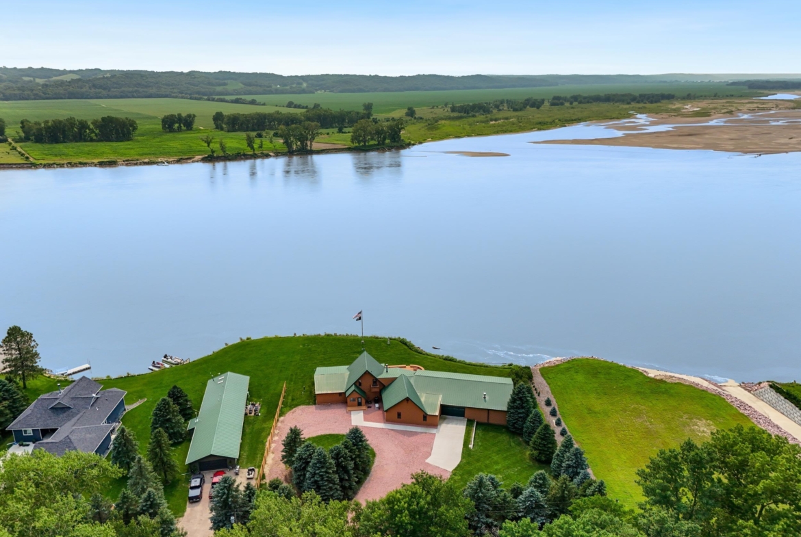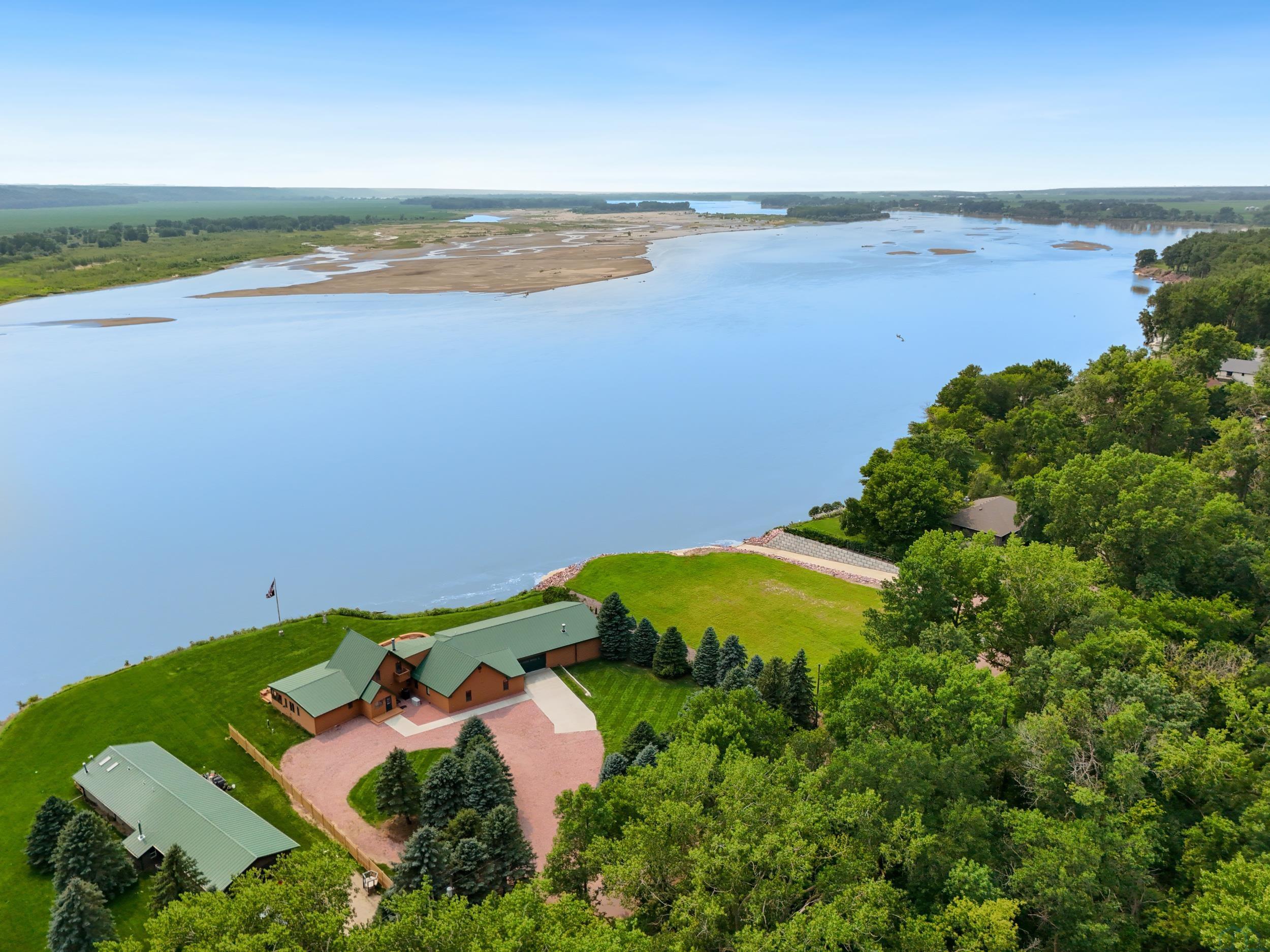 You don’t just buy this home—you buy the view, the vibe, and the bragging rights. Perched on one of the last untouched stretches of the Missouri River (Mile Marker 769), this custom retreat with 5224 square feet gives “lodge life” a luxury twist. With panoramic river views, 1.02 acres of level, landscaped grounds, and a rock-solid shoreline lined with pink granite, this place wasn’t just built—it was designed to last. Step inside and you’re met with soaring wood ceilings, a wall of windows, and a riverfront backdrop that’ll stop you mid-sentence. An area once occupied by an indoor pool and is now a 2622 sq foot entertainment room takes center stage—heated by a geo-thermal system for year-round enjoyment. The theatre room is fully equipped, the game room includes the pool table. The vibe? Rustic comfort with a dash of “wow.” Other perks? 3+ bedrooms, 3 full baths, two-way gas fireplace, multiple living zones, a massive primary suite with walk-in closet and bath, all-seasons porch + sun-drenched deck, 22kW backup generator, 3 propane tanks (250, 500, and 1000 gal), circular driveway. This home never flooded (even in 2011). Located just 6 miles from Vermillion, on paved roads in the established Ponderosa Development, your retreat is private, peaceful, and packed with extras. This is the kind of property you pass down.