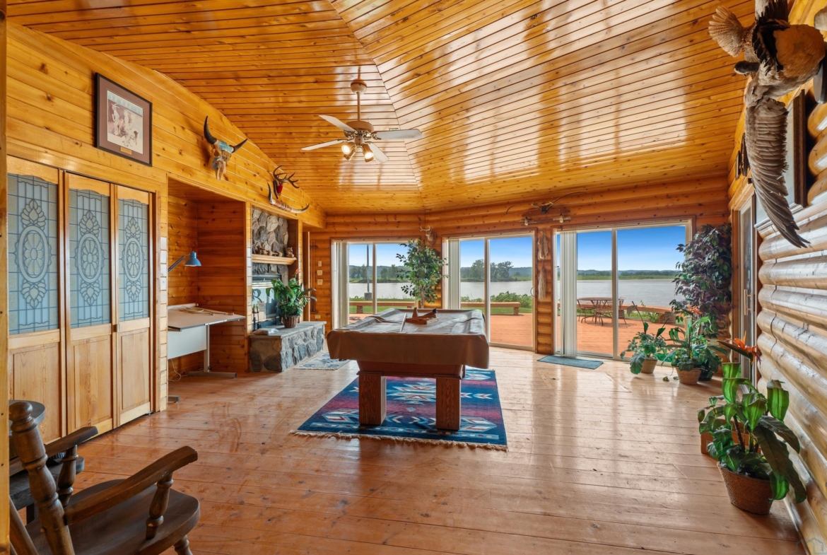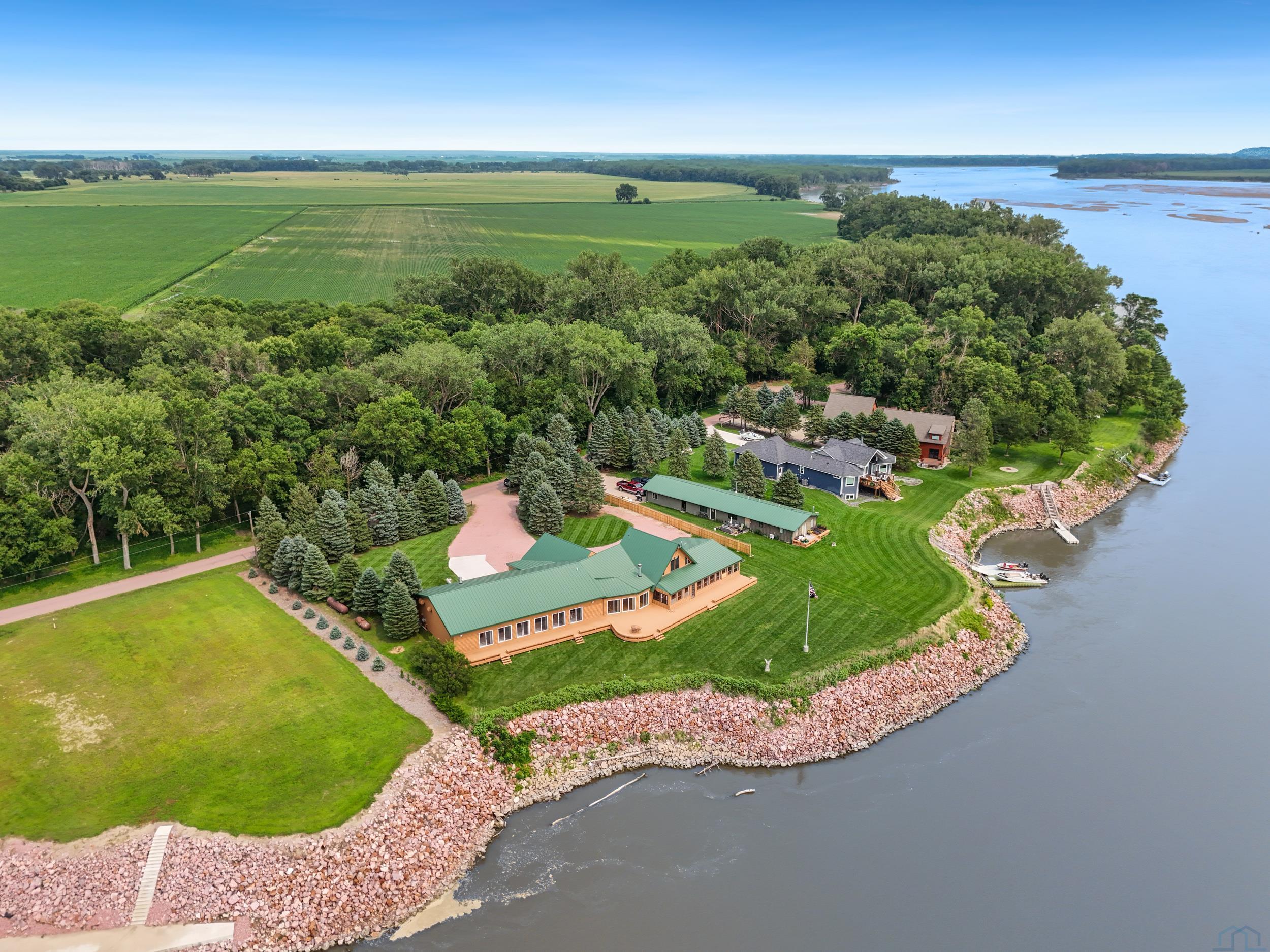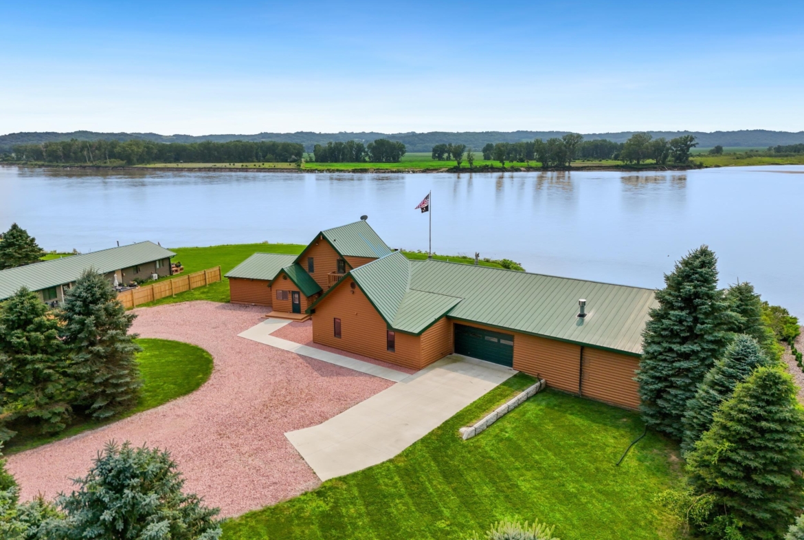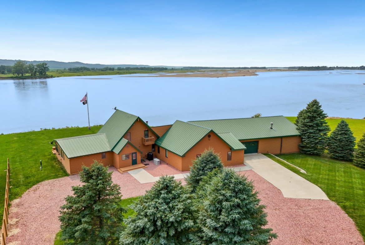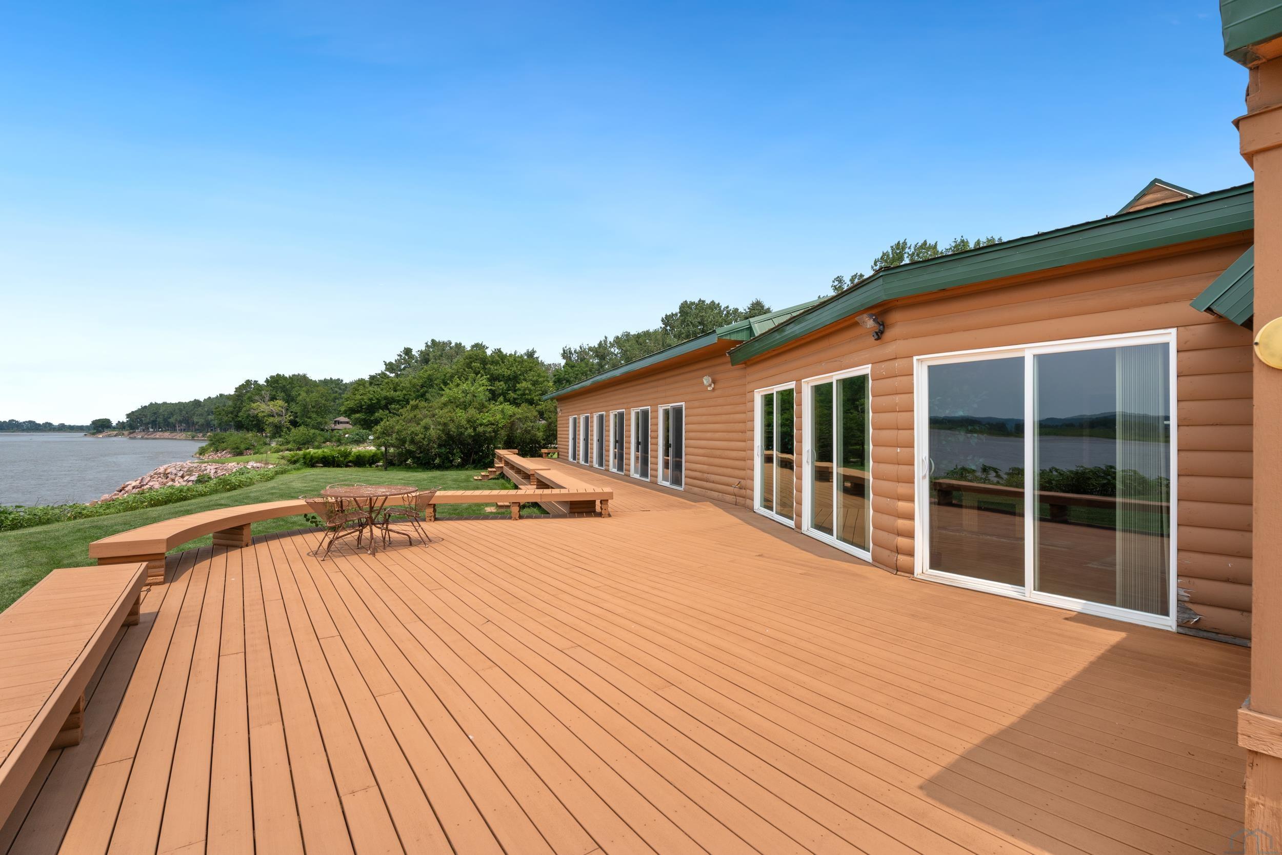 You don’t just buy this home—you buy the view, the vibe, and the bragging rights. Perched on one of the last untouched stretches of the Missouri River (Mile Marker 769), this custom retreat with 5224 square feet gives “lodge life” a luxury twist. With panoramic river views, 1.02 acres of level, landscaped grounds, and a rock-solid shoreline lined with pink granite, this place wasn’t just built—it was designed to last. Step inside and you’re met with soaring wood ceilings, a wall of windows, and a riverfront backdrop that’ll stop you mid-sentence. An area once occupied by an indoor pool and is now a 2622 sq foot entertainment room takes center stage—heated by a geo-thermal system for year-round enjoyment. The theatre room is fully equipped, the game room includes the pool table. The vibe? Rustic comfort with a dash of “wow.” Other perks? 3+ bedrooms, 3 full baths, two-way gas fireplace, multiple living zones, a massive primary suite with walk-in closet and bath, all-seasons porch + sun-drenched deck, 22kW backup generator, 3 propane tanks (250, 500, and 1000 gal), circular driveway. This home never flooded (even in 2011). Located just 6 miles from Vermillion, on paved roads in the established Ponderosa Development, your retreat is private, peaceful, and packed with extras. This is the kind of property you pass down.