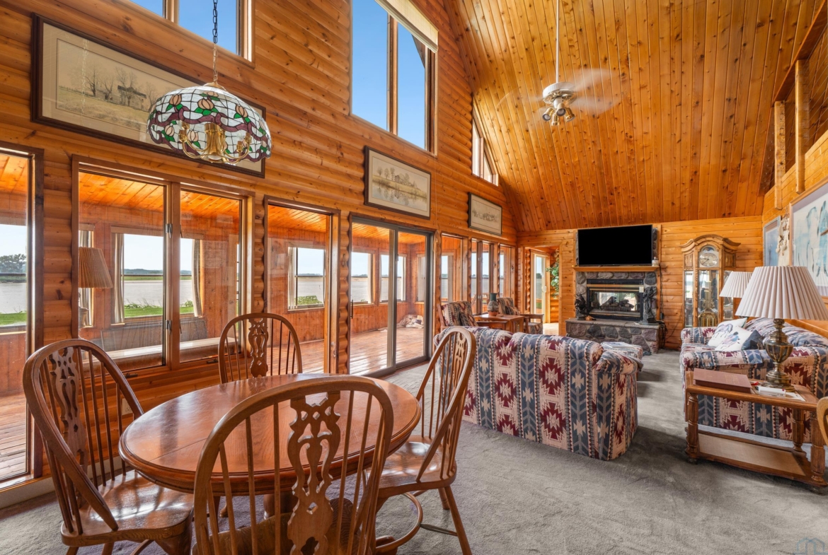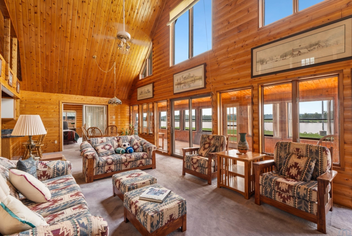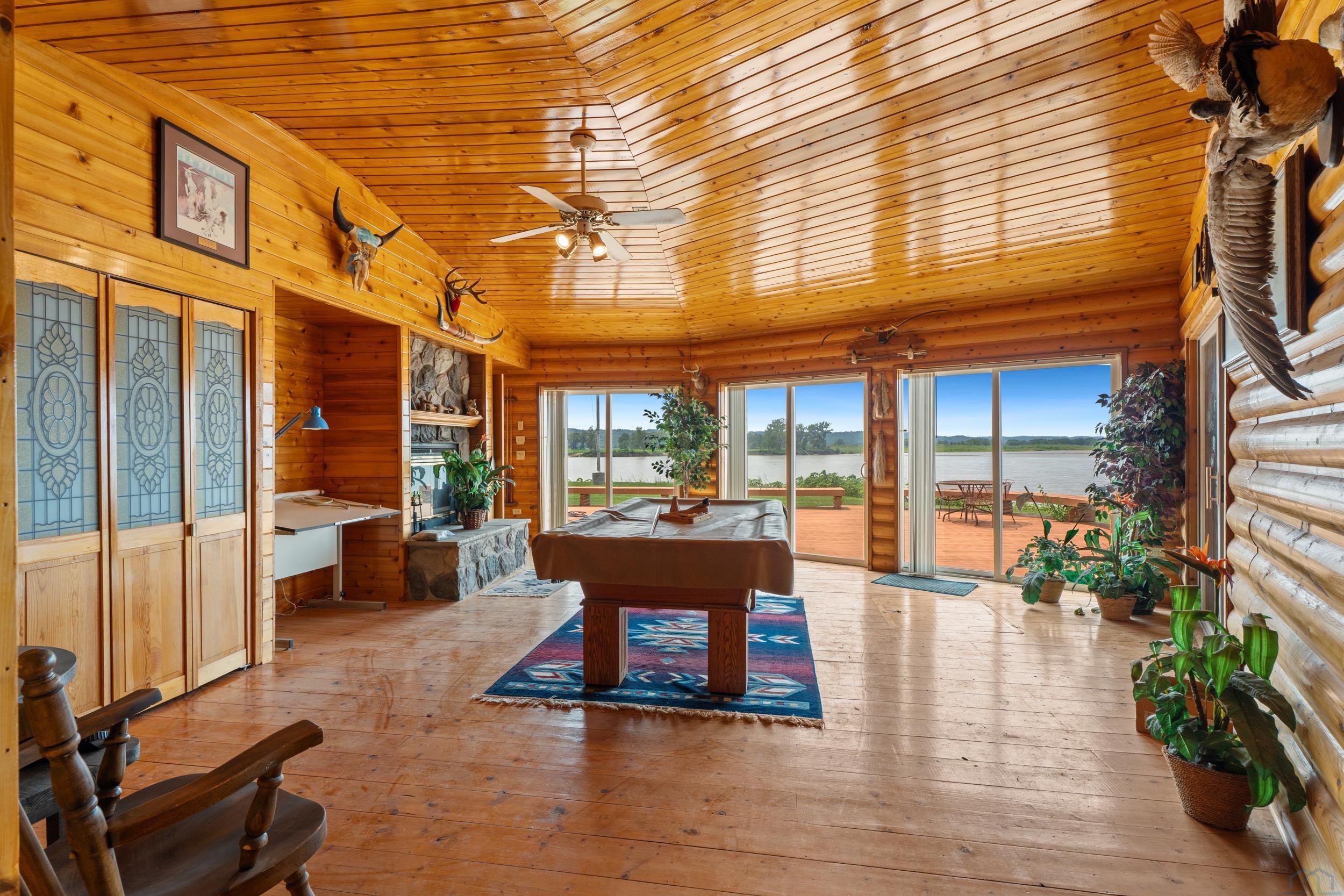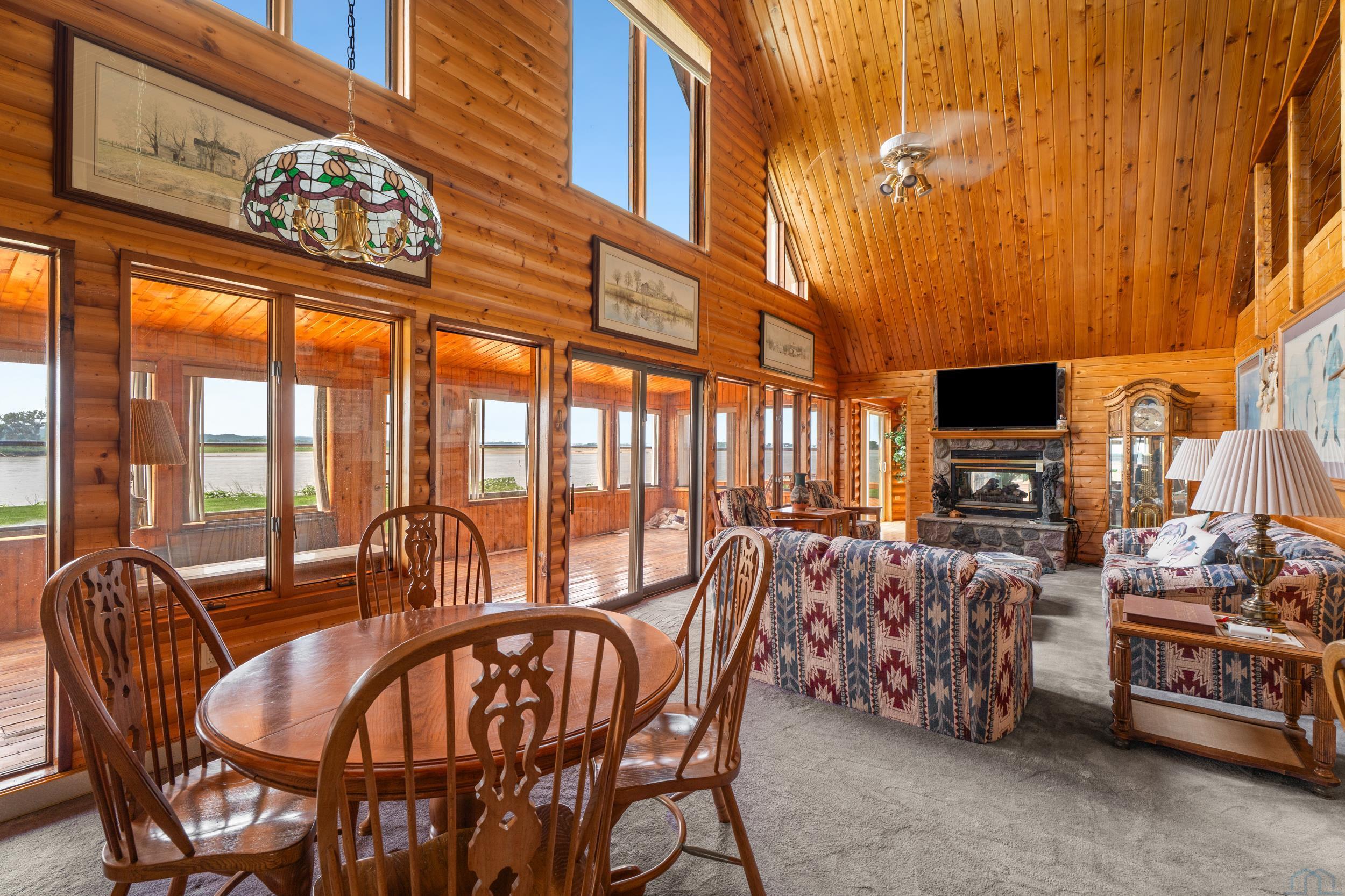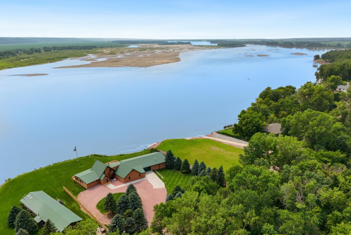 You don’t just buy this home—you buy the view, the vibe, and the bragging rights. Perched on one of the last untouched stretches of the Missouri River (Mile Marker 769), this custom retreat with 5224 square feet gives “lodge life” a luxury twist. With panoramic river views, 1.02 acres of level, landscaped grounds, and a rock-solid shoreline lined with pink granite, this place wasn’t just built—it was designed to last. Step inside and you’re met with soaring wood ceilings, a wall of windows, and a riverfront backdrop that’ll stop you mid-sentence. An area once occupied by an indoor pool and is now a 2622 sq foot entertainment room takes center stage—heated by a geo-thermal system for year-round enjoyment. The theatre room is fully equipped, the game room includes the pool table. The vibe? Rustic comfort with a dash of “wow.” Other perks? 3+ bedrooms, 3 full baths, two-way gas fireplace, multiple living zones, a massive primary suite with walk-in closet and bath, all-seasons porch + sun-drenched deck, 22kW backup generator, 3 propane tanks (250, 500, and 1000 gal), circular driveway. This home never flooded (even in 2011). Located just 6 miles from Vermillion, on paved roads in the established Ponderosa Development, your retreat is private, peaceful, and packed with extras. This is the kind of property you pass down.