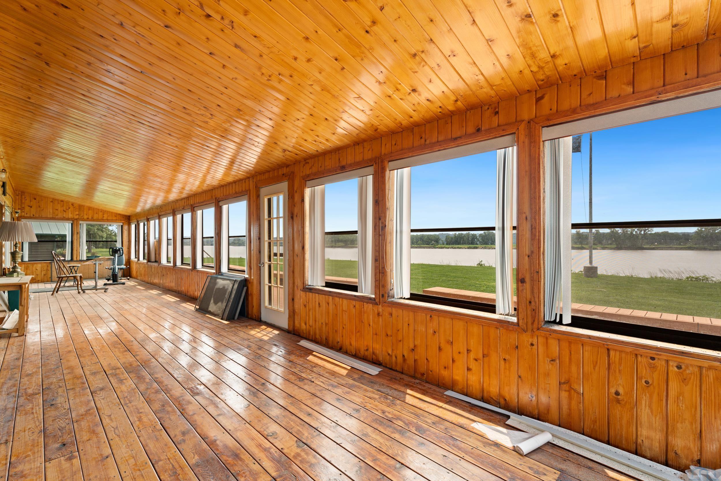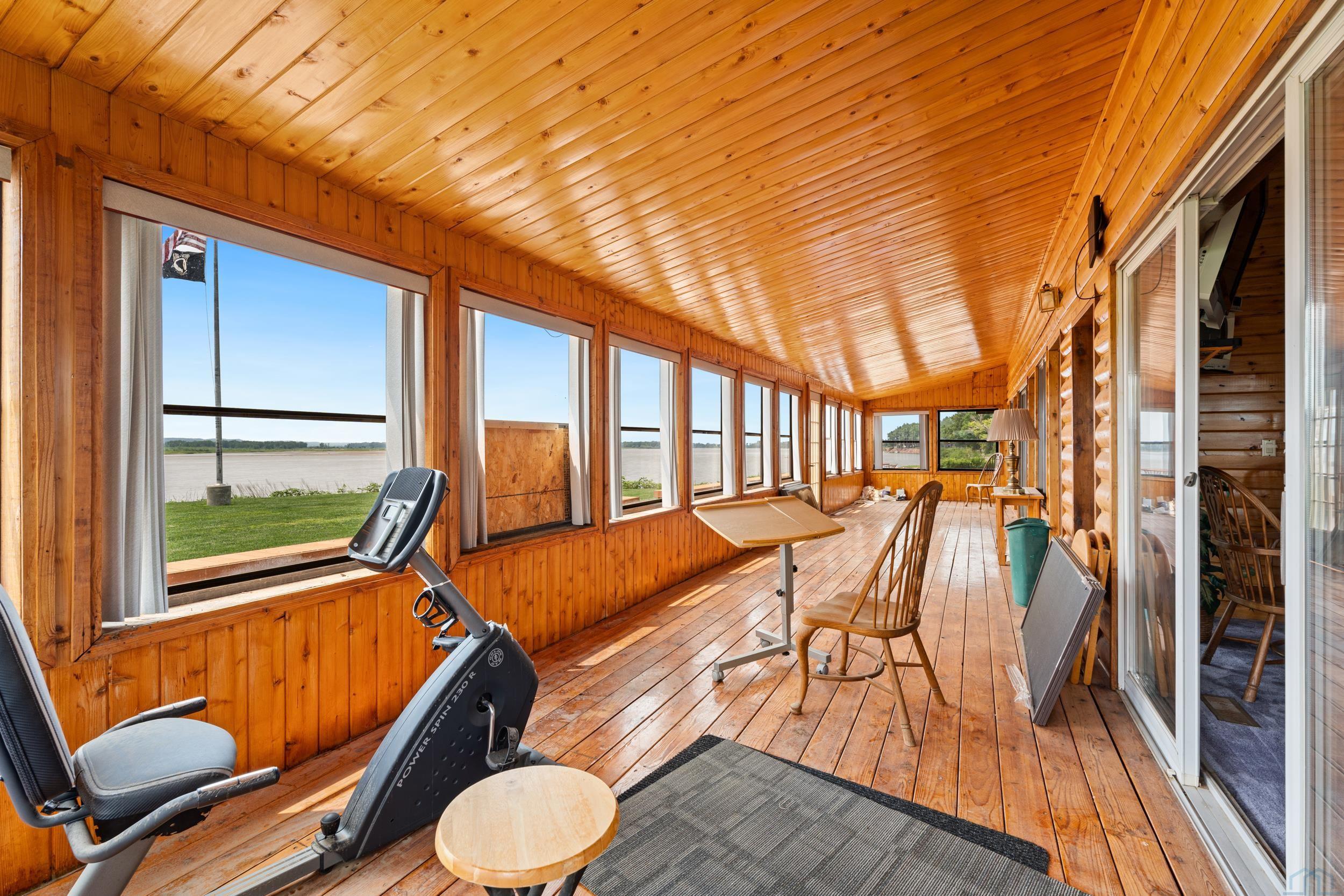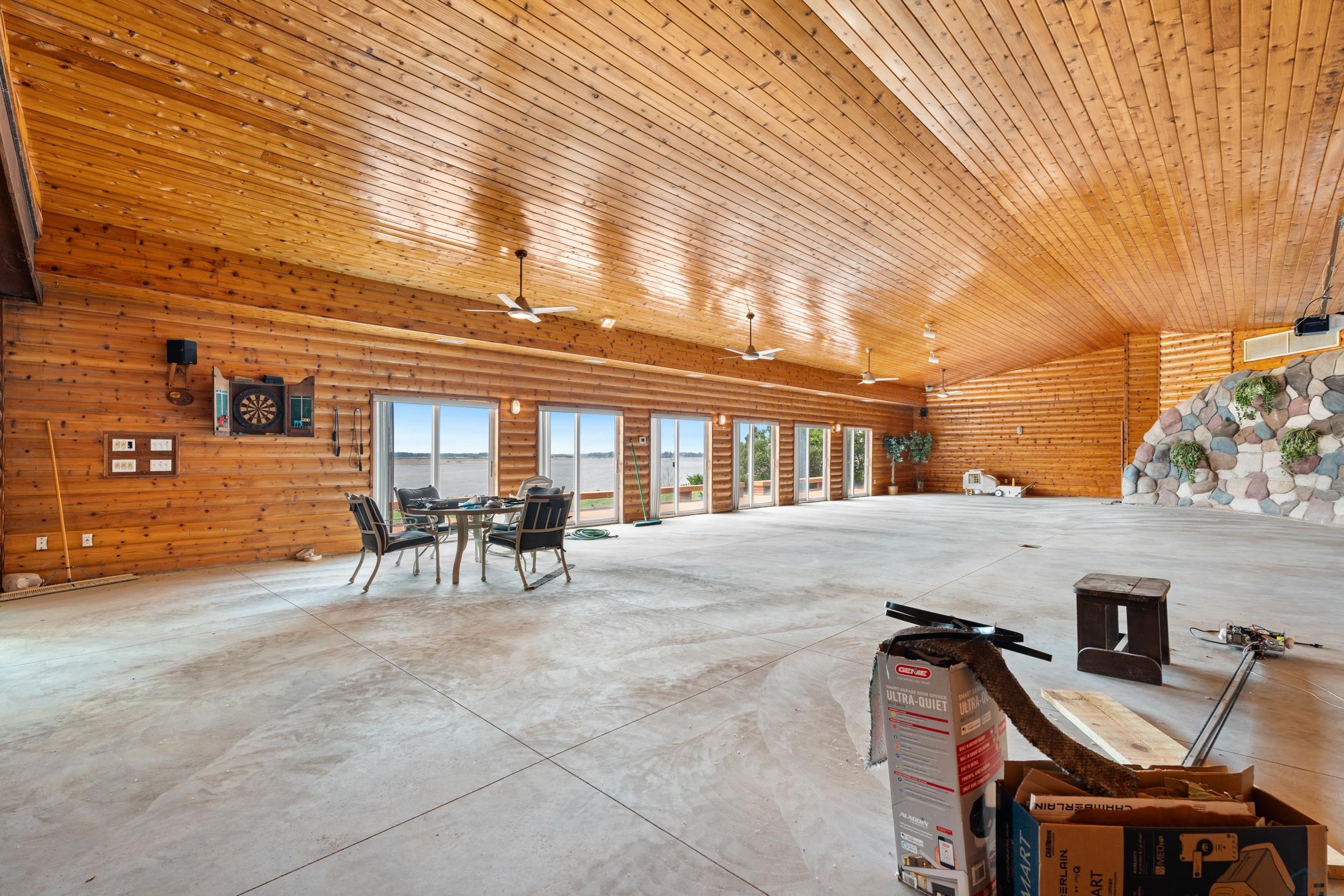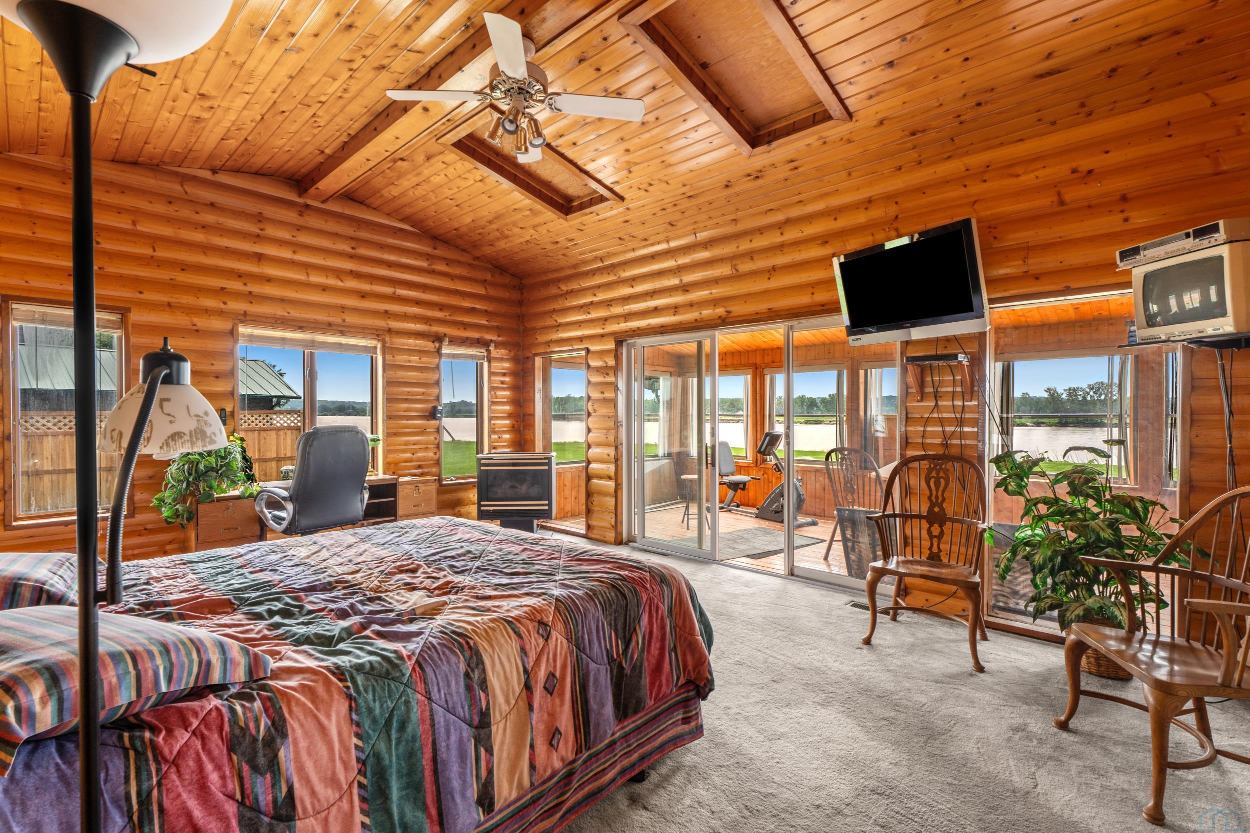 You don’t just buy this home—you buy the view, the vibe, and the bragging rights. Perched on one of the last untouched stretches of the Missouri River (Mile Marker 769), this custom retreat with 5224 square feet gives “lodge life” a luxury twist. With panoramic river views, 1.02 acres of level, landscaped grounds, and a rock-solid shoreline lined with pink granite, this place wasn’t just built—it was designed to last. Step inside and you’re met with soaring wood ceilings, a wall of windows, and a riverfront backdrop that’ll stop you mid-sentence. An area once occupied by an indoor pool and is now a 2622 sq foot entertainment room takes center stage—heated by a geo-thermal system for year-round enjoyment. The theatre room is fully equipped, the game room includes the pool table. The vibe? Rustic comfort with a dash of “wow.” Other perks? 3+ bedrooms, 3 full baths, two-way gas fireplace, multiple living zones, a massive primary suite with walk-in closet and bath, all-seasons porch + sun-drenched deck, 22kW backup generator, 3 propane tanks (250, 500, and 1000 gal), circular driveway. This home never flooded (even in 2011). Located just 6 miles from Vermillion, on paved roads in the established Ponderosa Development, your retreat is private, peaceful, and packed with extras. This is the kind of property you pass down.