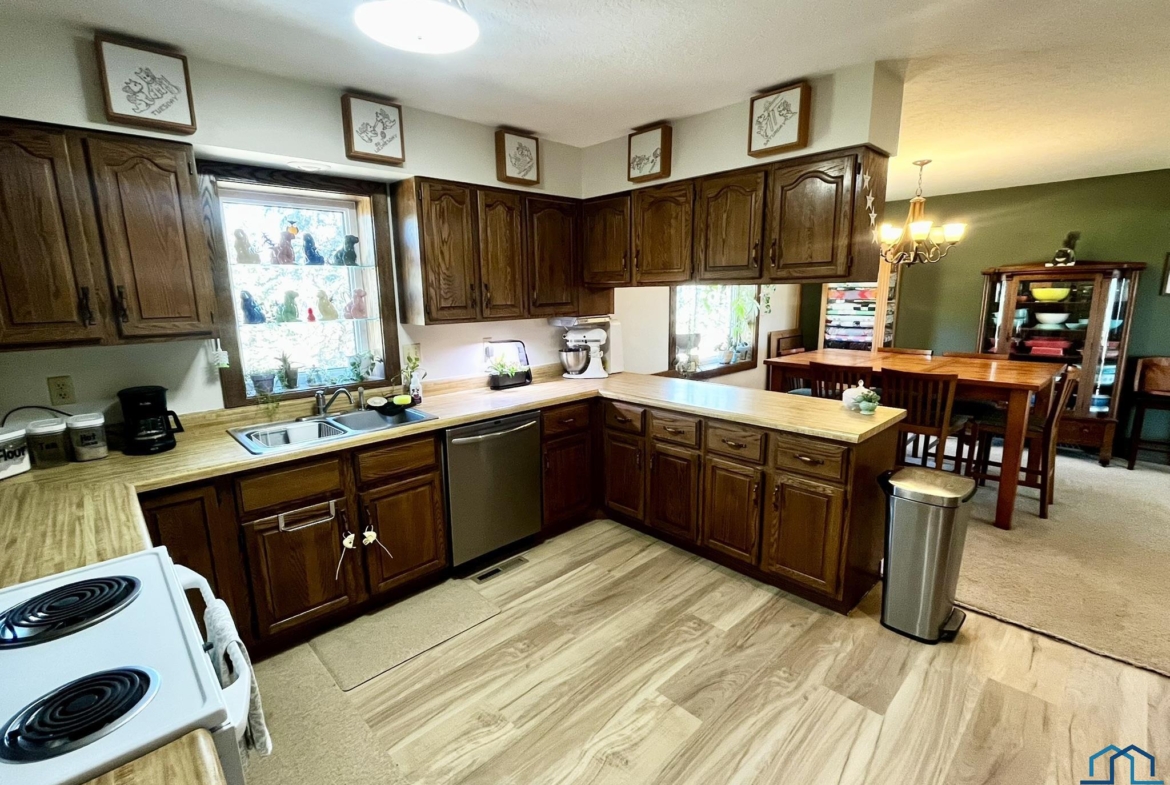 Rare acreage listing in southern Union County just outside of Jefferson. This acreage has it all including a 28X48 detached shed currently set up as a wood working shop with both heat and AC! This home boasts a large main floor with 1710 sq feet and an unfinished basement. The living room has large windows for ample daylight, wood burning fireplace and opens to the spacious dining. Just off the dining is the kitchen with a pantry, plenty of cabinet storage and brand new vinyl plank flooring. This new flooring runs throughout the kitchen, 3/4 bath just off the garage for easy access and the laundry room. The laundry room has two closets, built-in lockers and shelving perfect for laundry baskets. On the opposite end of the house you’ll find two nice sized bedrooms that share a full bath. Each bedroom has a large window, double closet and ceiling fan. The master suite is oversized with a 3/4 bath and double closet. The lower level is unfinished and ready for your custom touch! Lots of new throughout the home including windows in 2023. In 2024 they replaced the siding, furnace, water heater, and water softener. Come enjoy acreage living on this 5 acre property with plenty of room for expansion!