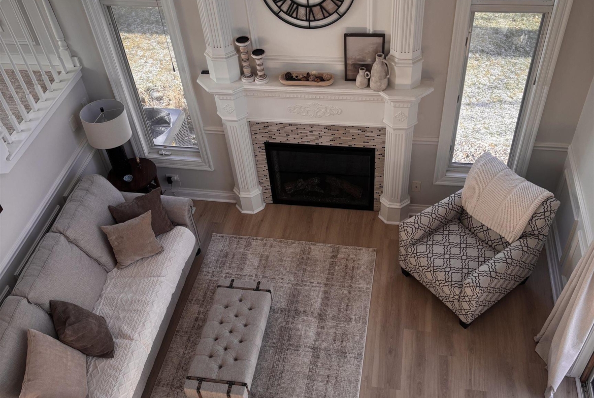 | Living | Main | 17x15 | Electric fireplace, patio doors to the deck |