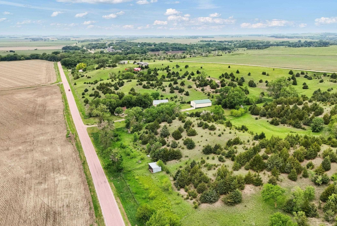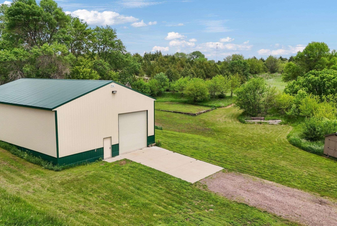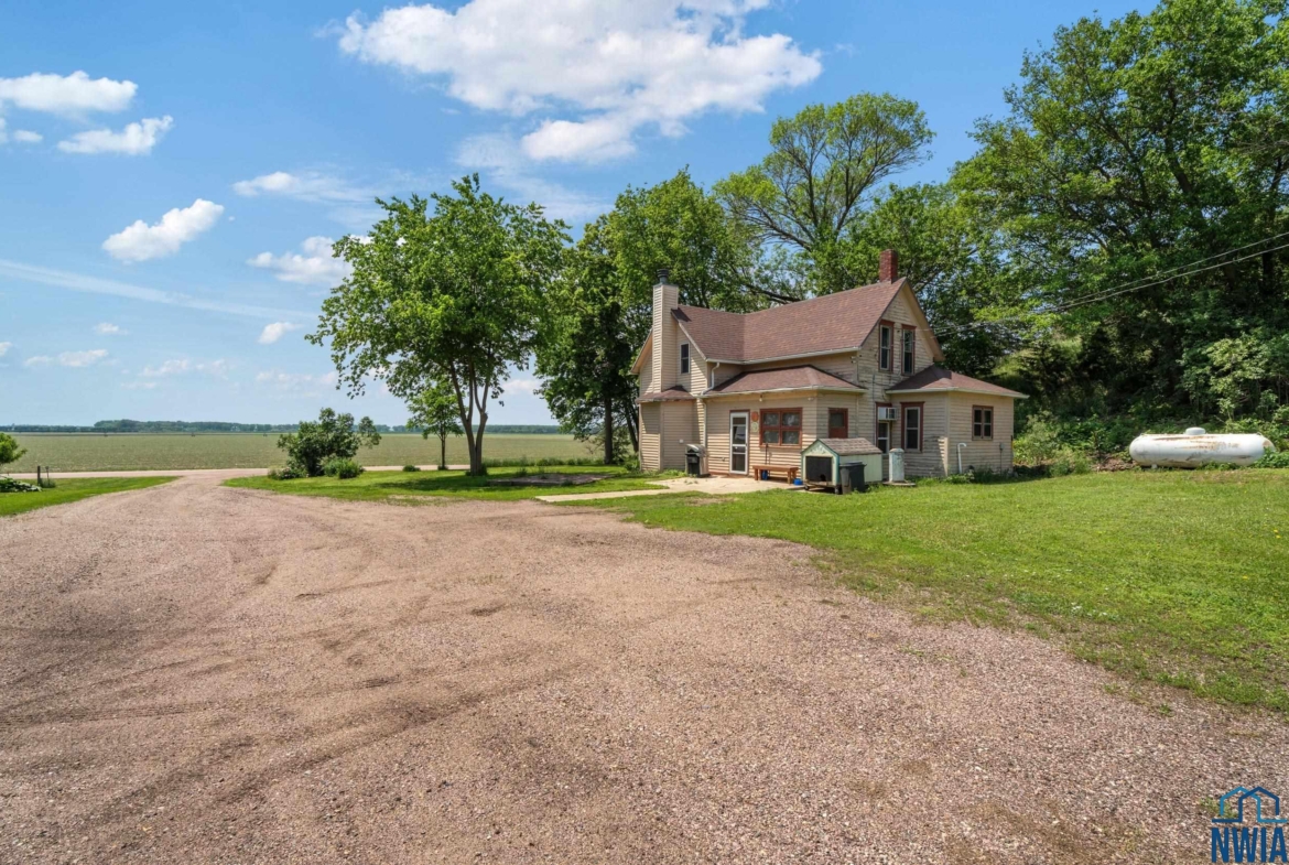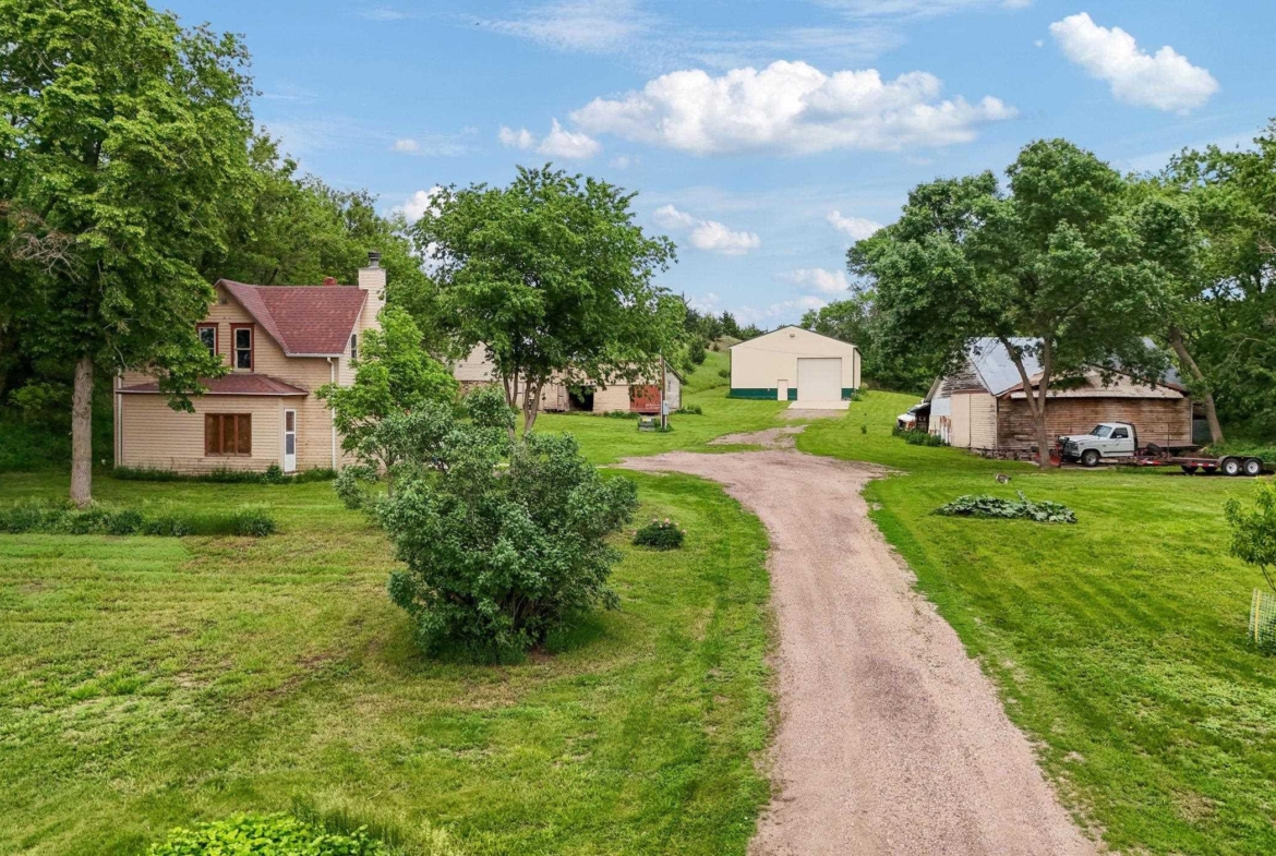 Come check out this wonderful acres opportunity! This 1 1/2 story home is located on 10 acres on the Volin Bluff, the property offers some great views of the Missouri River bottom. The home features 4 bedrooms, 1 full bath and main floor laundry. Main floor has a front enclosed porch, dining room with snap stone tile floor, gallery kitchen, living room features a wood burning fireplace and oak floors. Second floor has 3 bedrooms. The exterior features mature trees, vineyard and brick patio. Several outbuildings and a new 40 x 60 shed, insulated with cement floor!! Great shop area, garage, and large enough for your RV and boat!