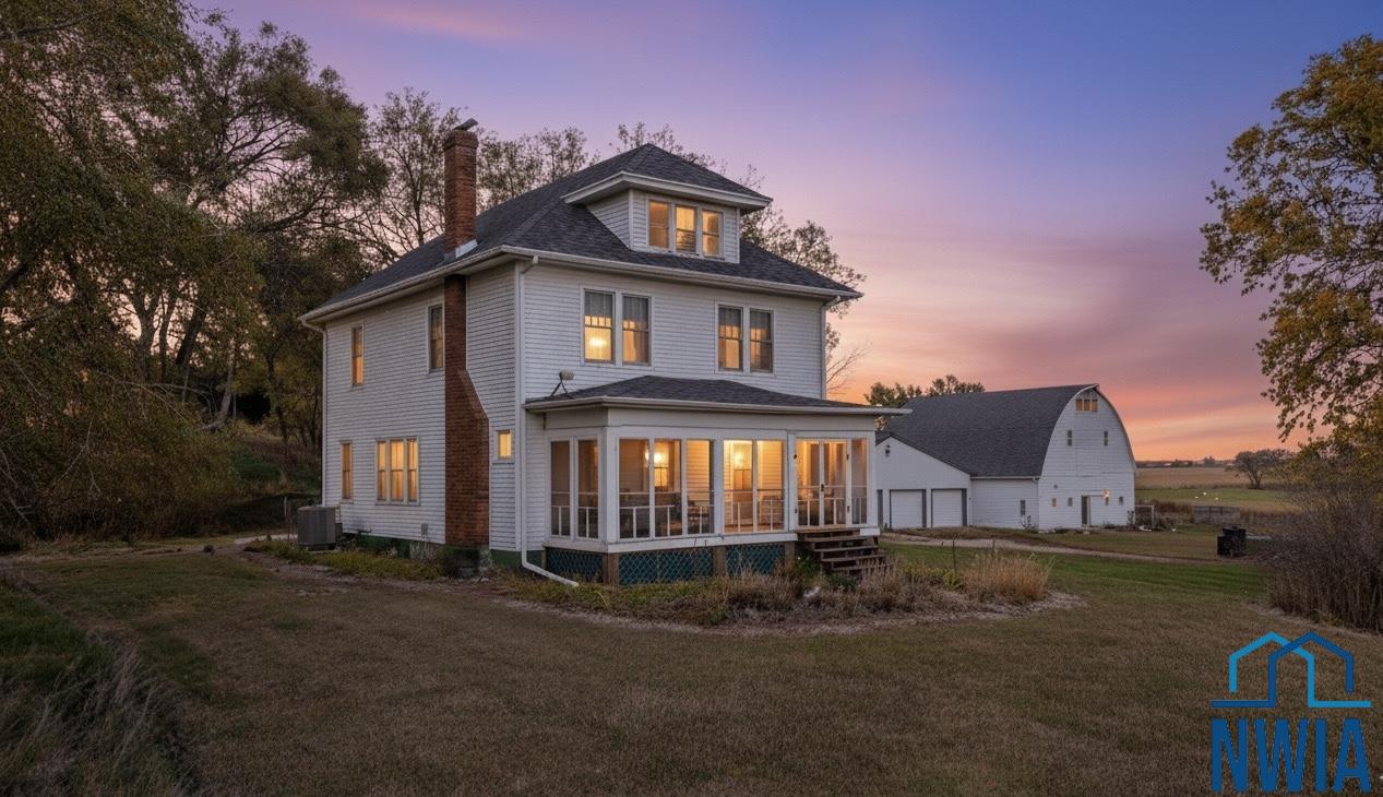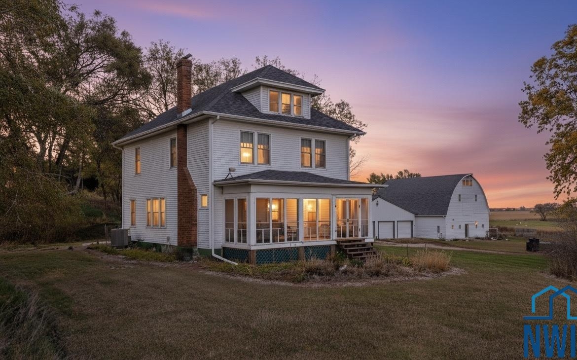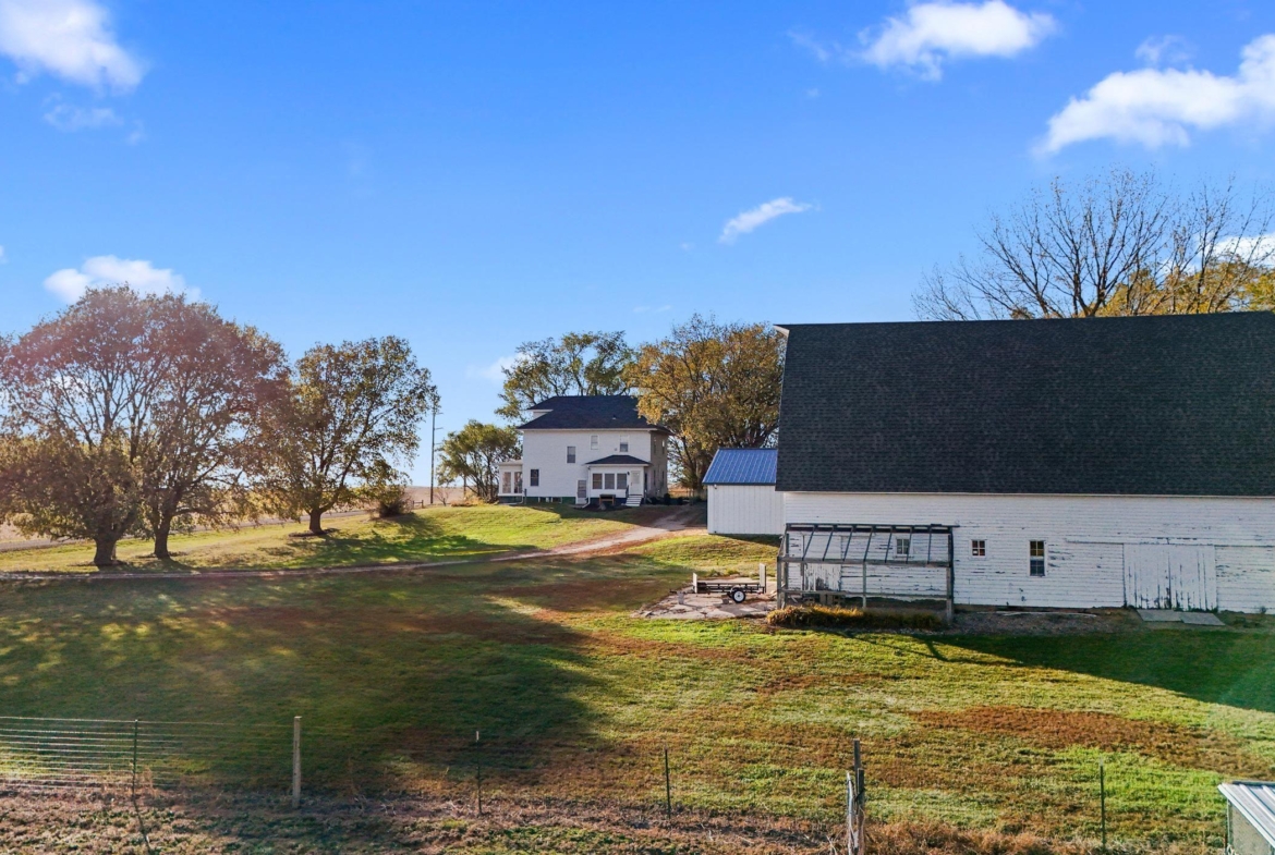 Acreage near Vermillion and Spirit Mound has everything you’re looking for: a large detached garage PLUS a barn with a newer roof with new decking, updated kitchen, laundry on the same floor as the bedrooms, front screened porch, original wood floors and built-ins, and 17.5 acres to roam! The main floor has an office/bedroom, half bath, Dining Room, Living Room with fireplace, and fantastic kitchen with back stairs to the bedrooms and laundry room upstairs. There are three bedrooms and a full bath upstairs, as well as a super-convenient laundry room. If you’ve ever dreamed of living in the country now is your chance!!