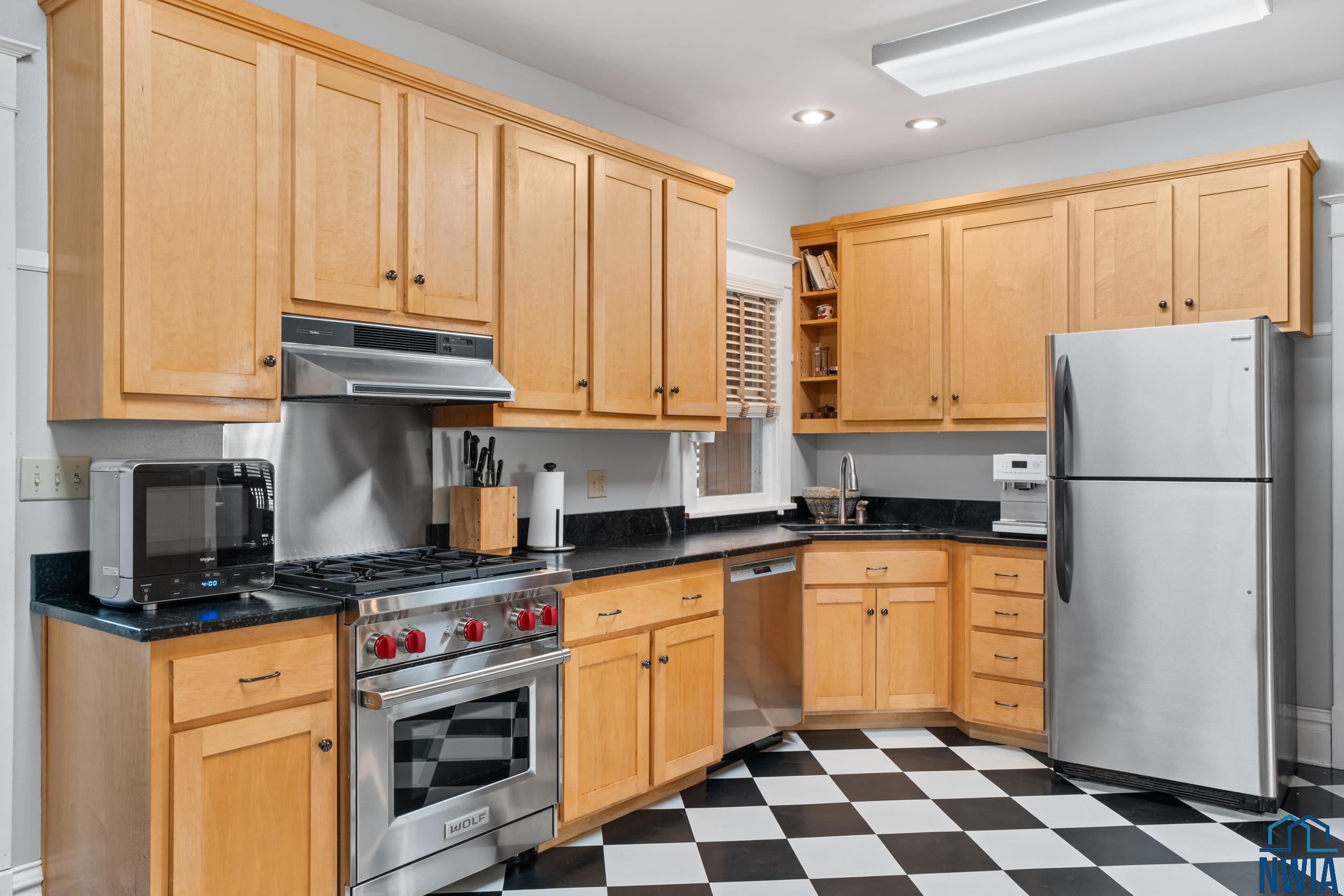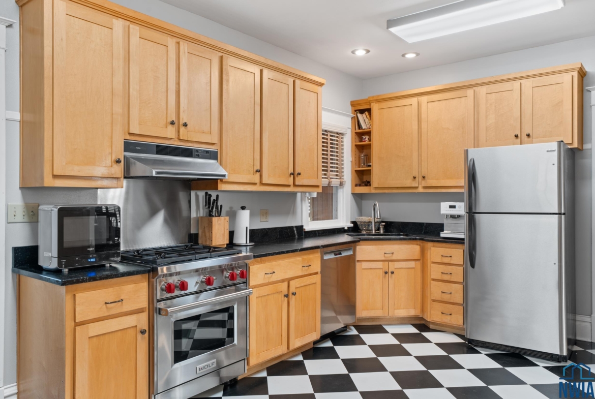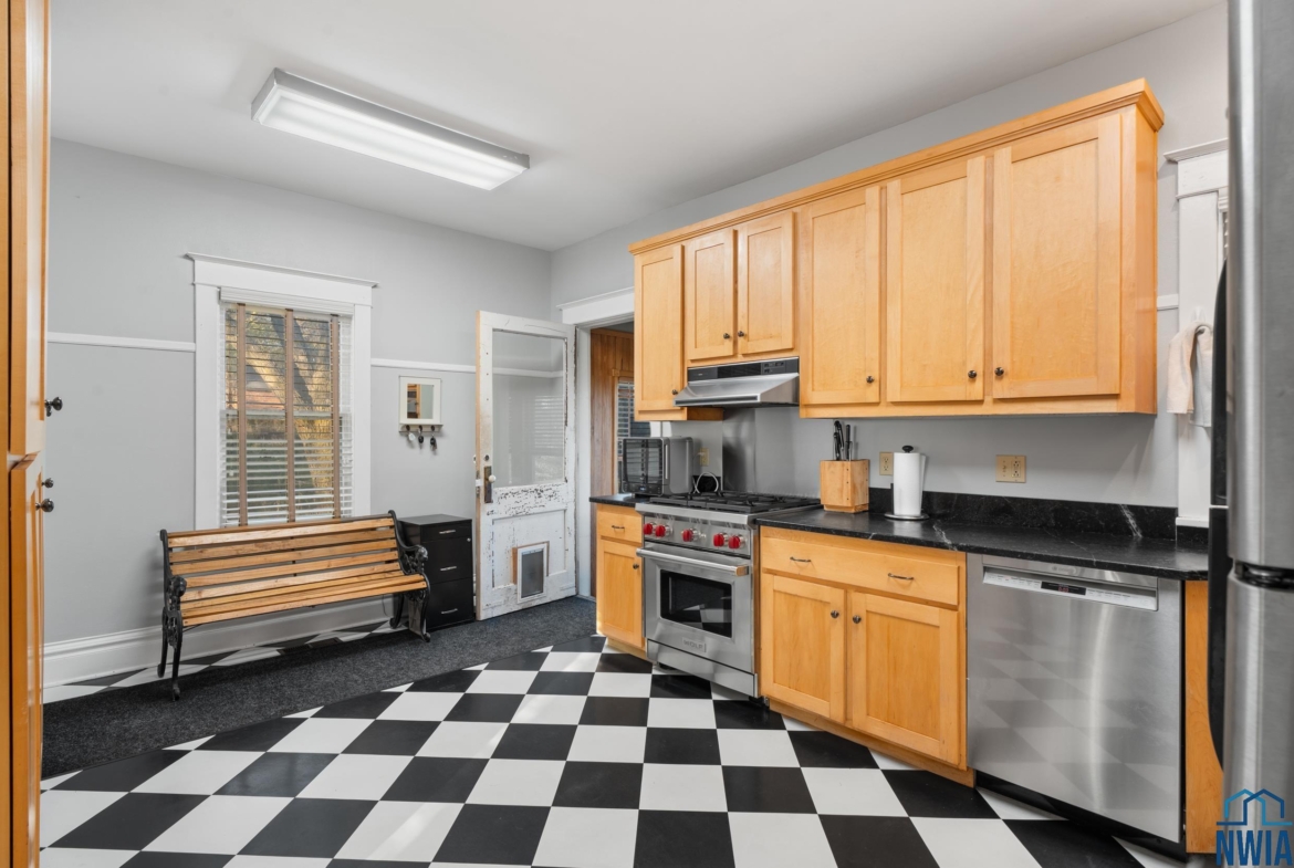 KitchenMain11 x 17Black and white tile, updated, door to mudroom/sunroom