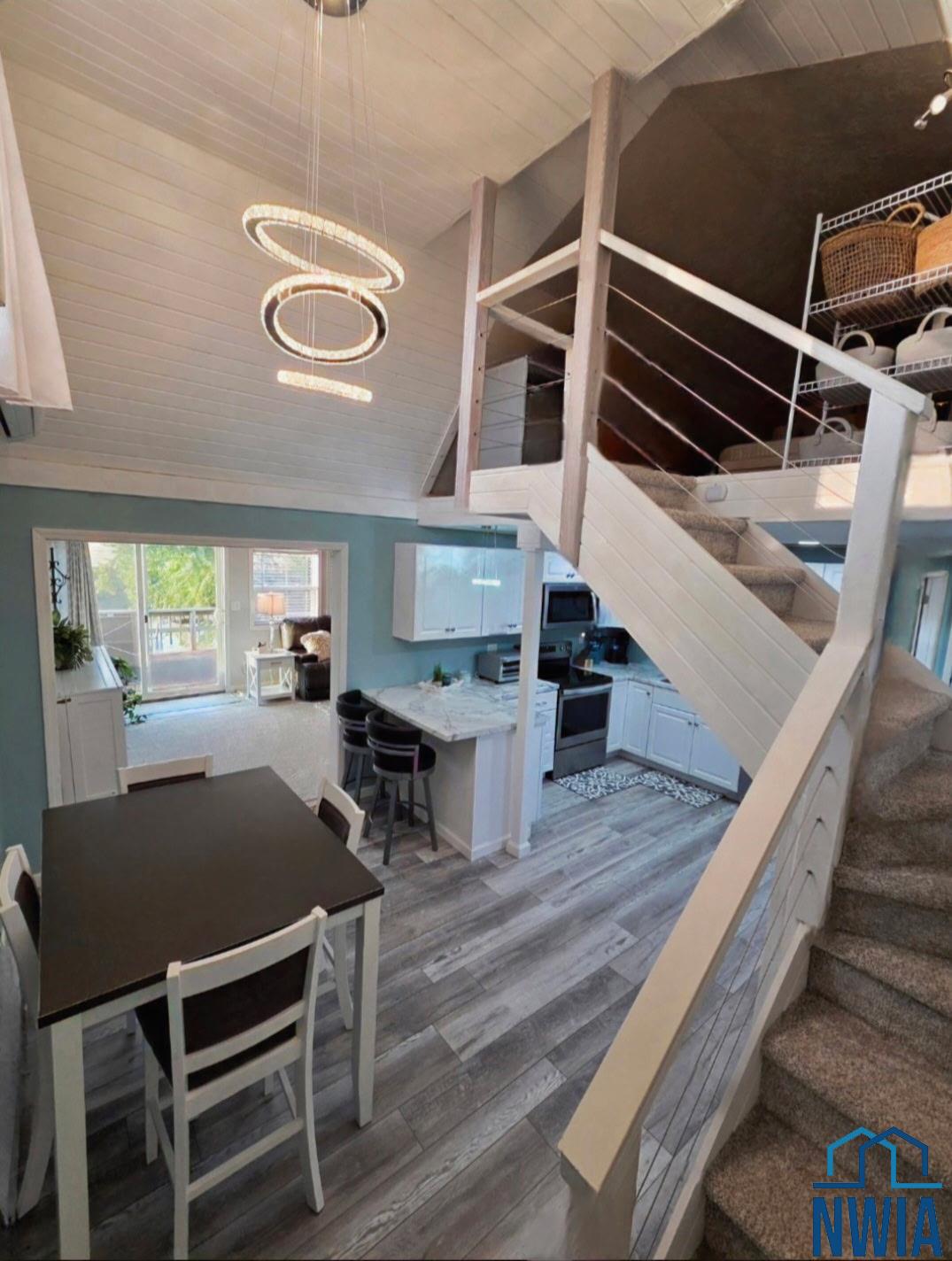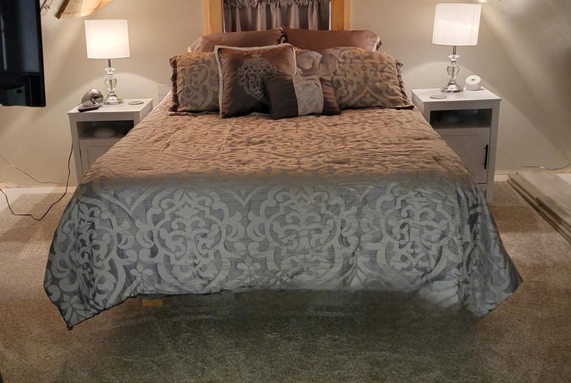 | Living | Main | 12x24 | Carpet, electric fireplace, SGD to deck |