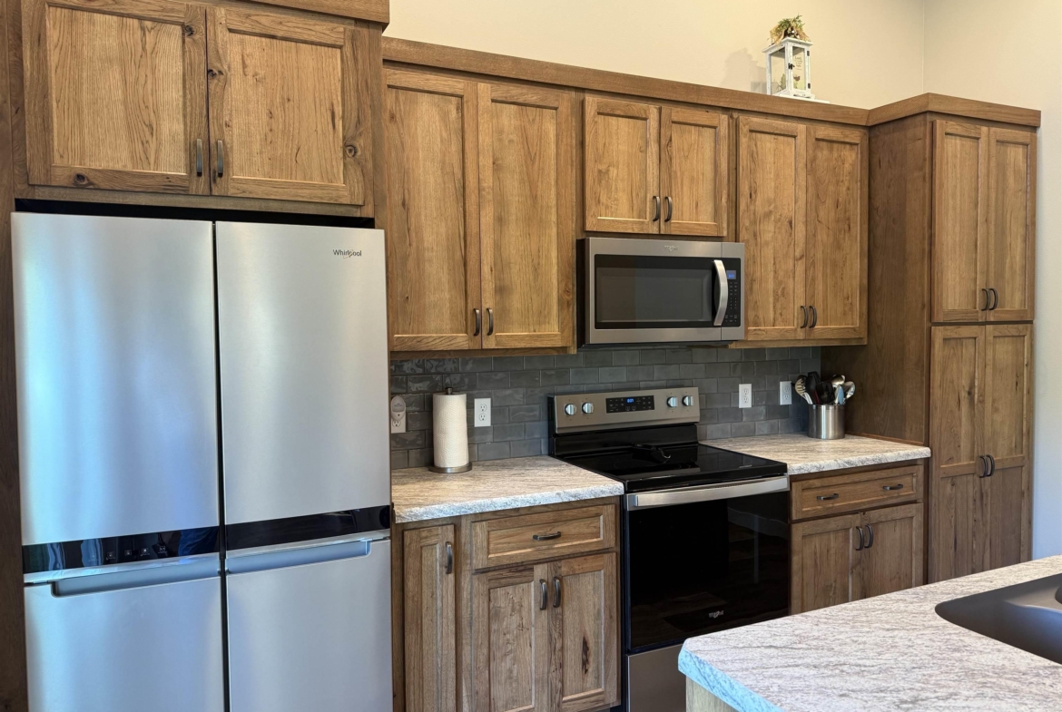 | Kitchen | Main | 10 x 15 | Stained wood cabinets, new appliances |