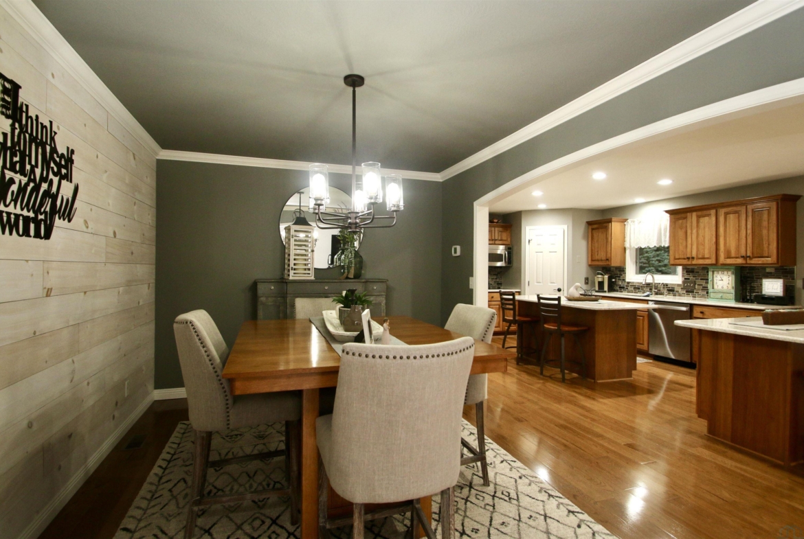 | Dining | Main | 10 x 14 | Hickory flooring, accent wall, arched ceiling, open to kit. |