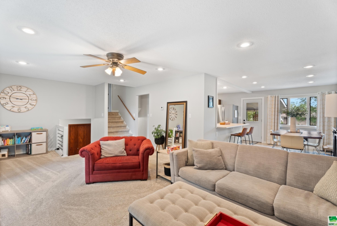 Discover the perfect blend of comfort and convenience in this charming 4-bedroom, 3-bathroom home that offers generous living space and thoughtful updates throughout. With three distinct living areas, it’s designed to accommodate both everyday living and special gatherings. The large kitchen opens to a dining area and formal living room, creating an easy flow for cooking and entertaining. Step inside to find a spacious and sunlit interior, where each room seamlessly flows into the next. The primary suite provides a private retreat with ample space and an en-suite bath, while additional bedrooms offer flexibility for guests, a home office, or hobbies. Outside, the three-season porch offers a private escape where you can savor your morning coffee, and the large backyard is waiting for you to host lively weekend barbecues. Located within walking distance of Vermillion High School and St. Agnes Elementary, and just a short stroll to Prentis Park and the Bluffs Playground, this home combines convenience with community. The home features, numerous updates: siding, roof, new front door, appliances, full reseeded front and backyard, fire pit. Plus a place to recharge your new electric vehicle… Perfect for anyone looking for that “just right” home, this property promises not just a house but a place to create lifelong memories. Don’t miss out on calling this delightful haven your own!