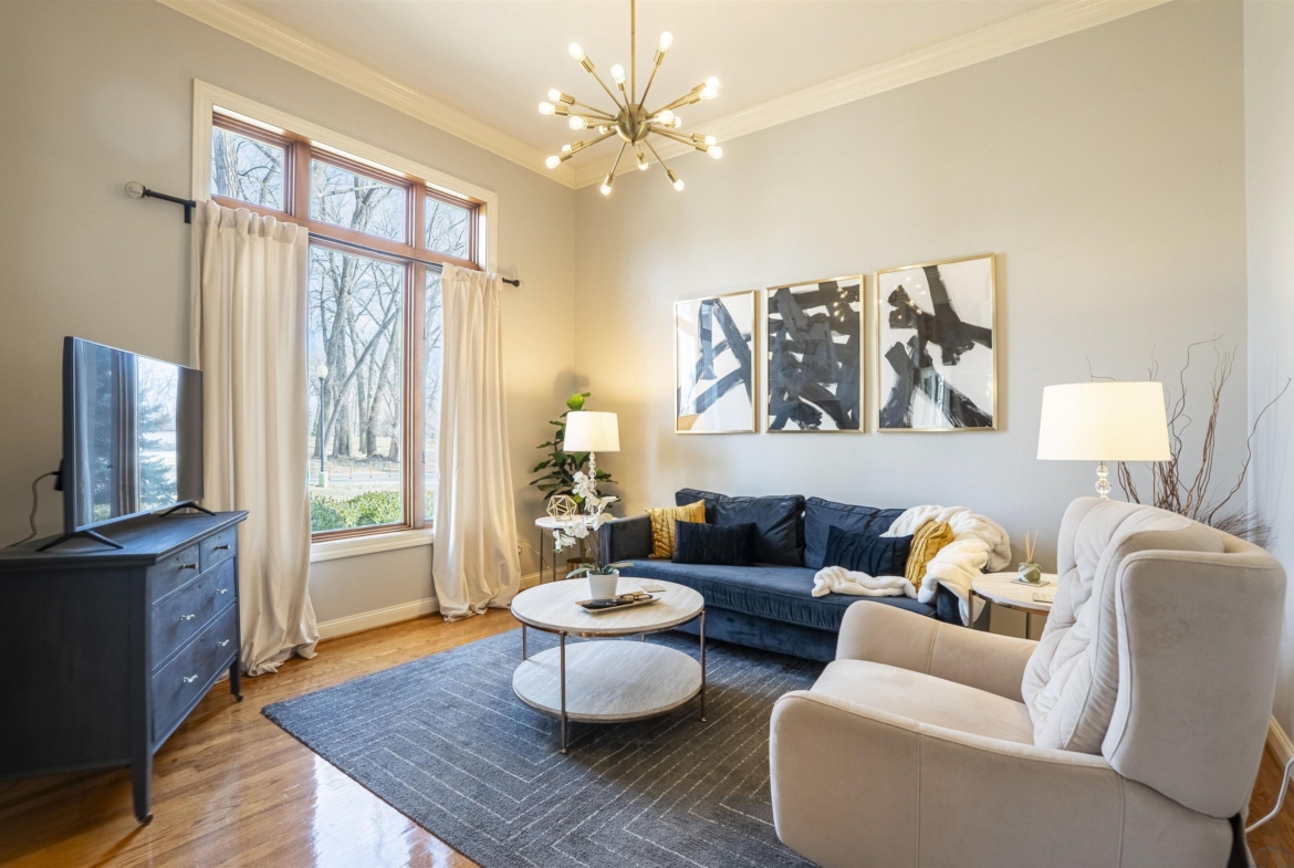 | Living | Main | 12x13 | Wood Flooring, Crown Moulding |