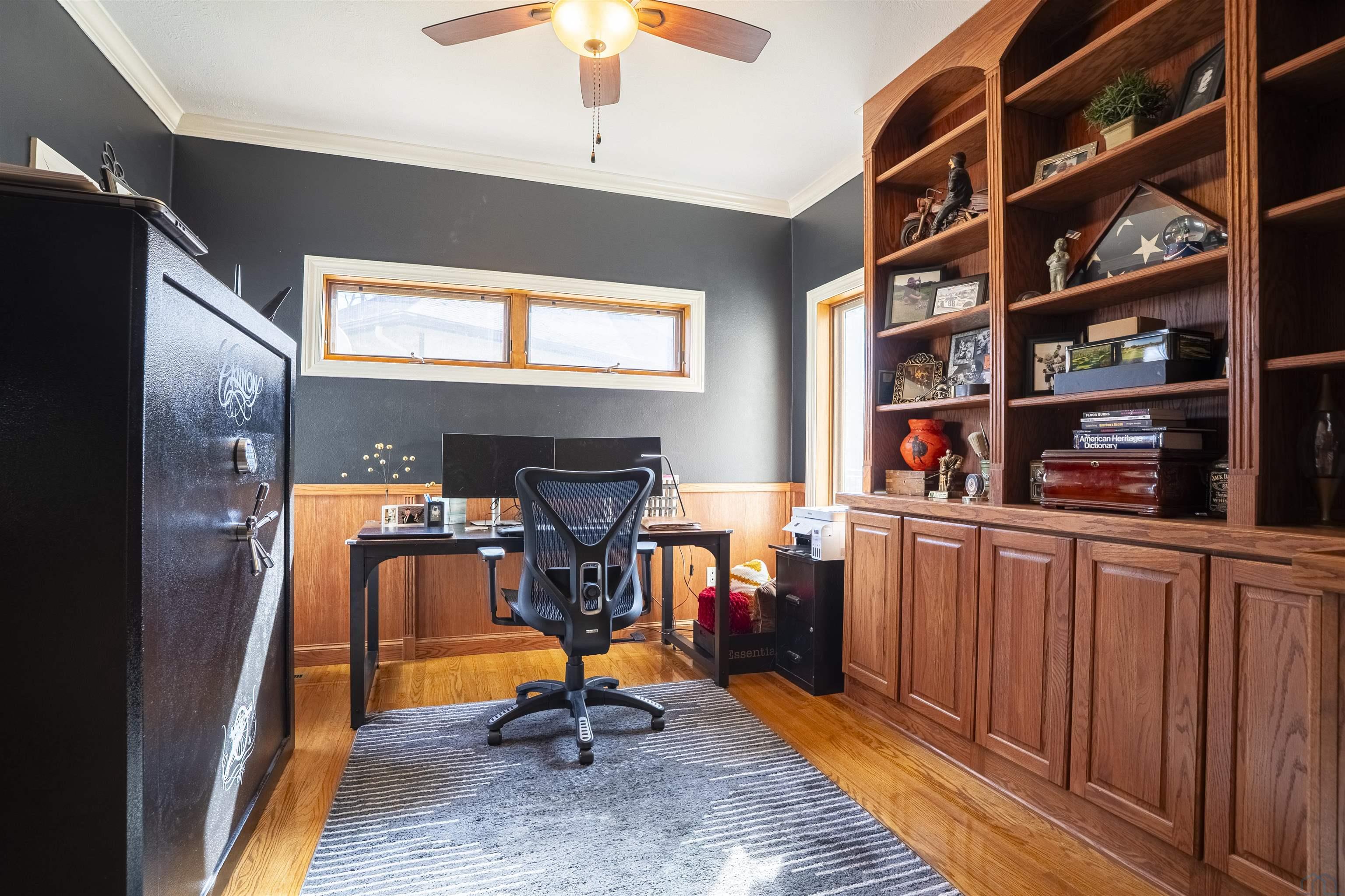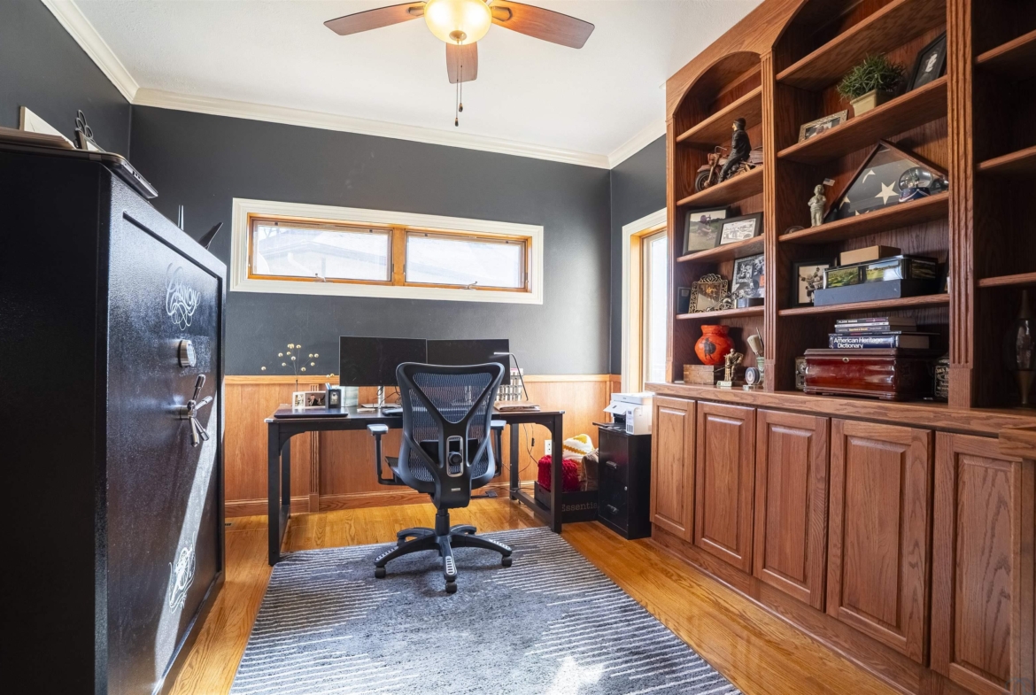 | Den | Main | 11x12 | Office, Wood Floors, French Doors and Bookcases |