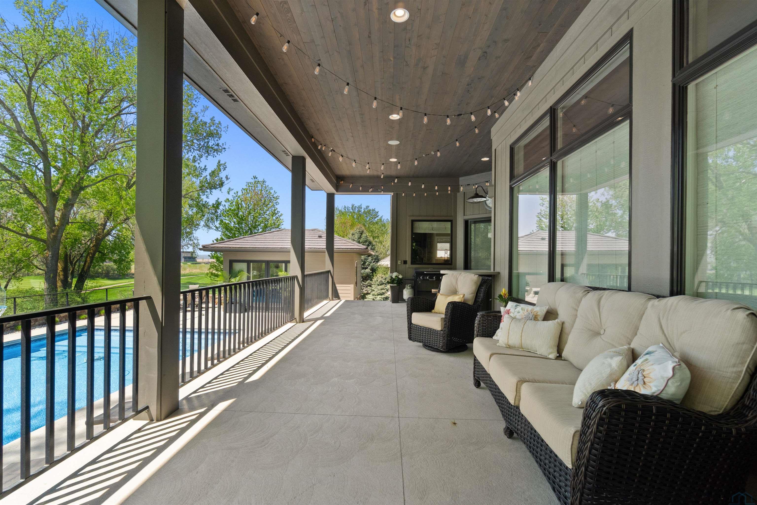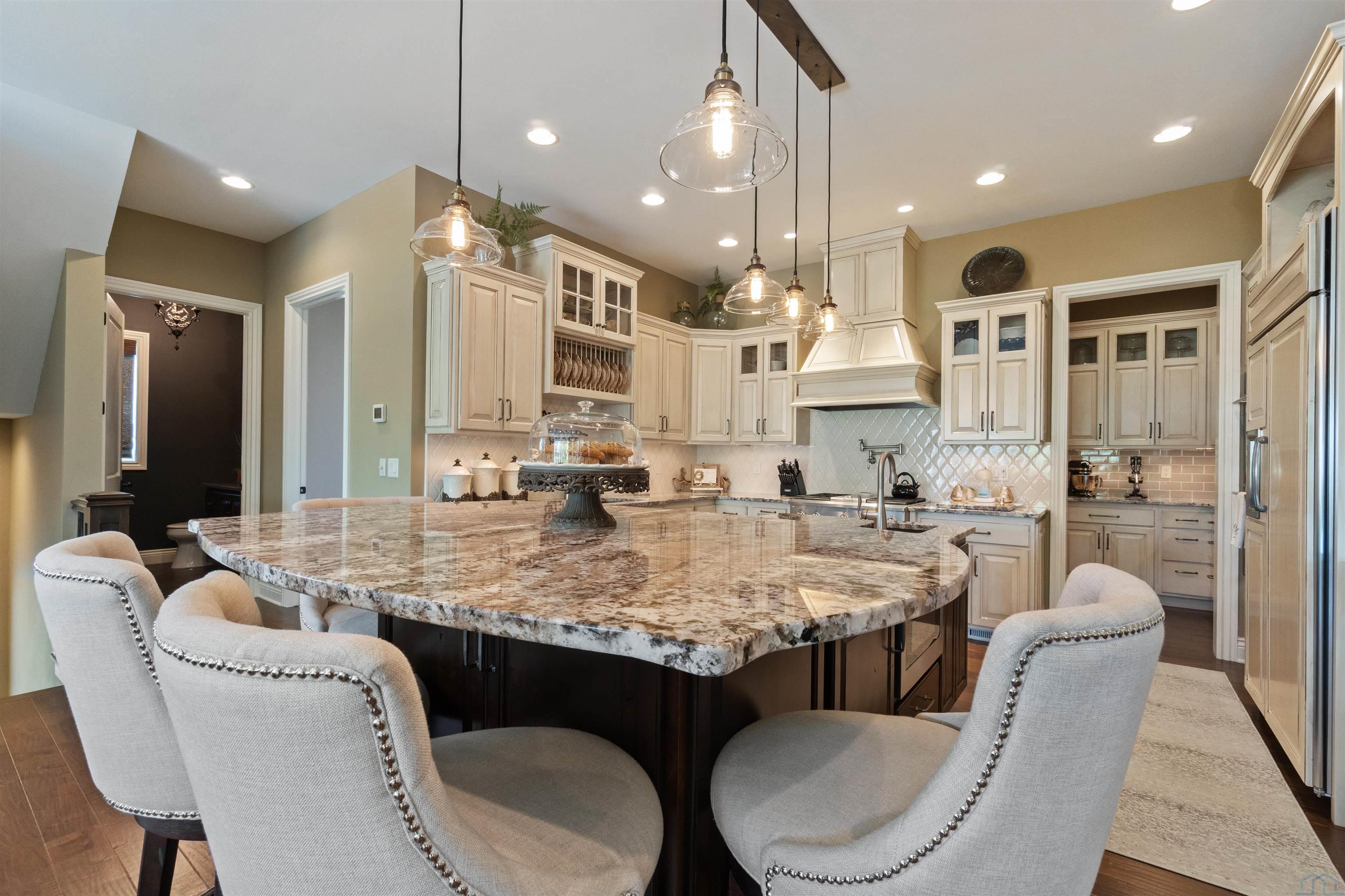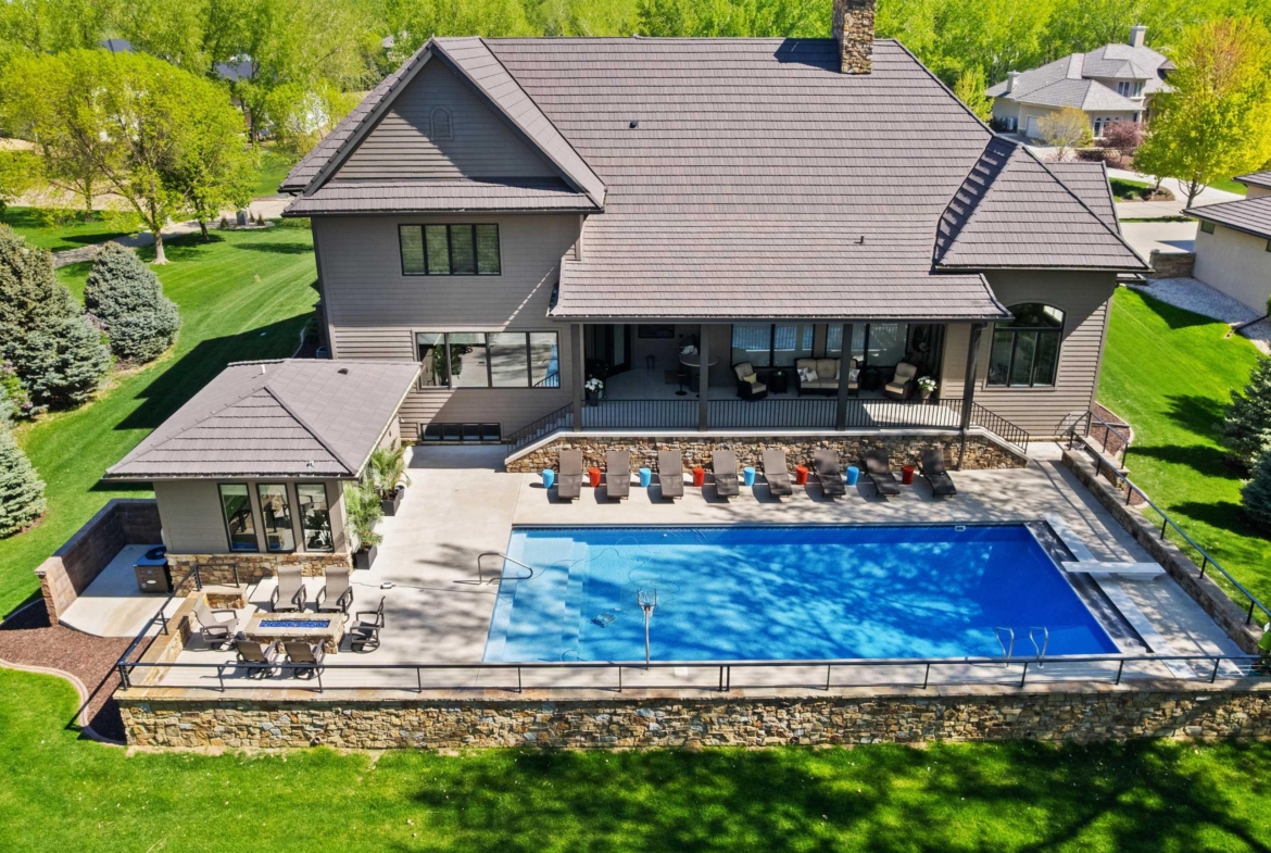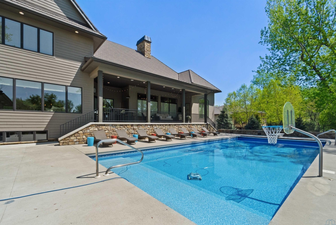 6 BD 7 BA 1 1/2 Story Home located in Dakota Dunes directly on Hole 15!!! Walk in to this truly amazing custom built home with close to 8,000 sq ft of finished, detailed perfection! Design is in the detail on this one!! Beautiful and functional around every corner! Detailed to perfection and spotlessly cared for through and through! This beautiful home with amazing views and great elevation is located just off The Dakota Dunes Golf Course but has plenty of privacy. The spacious main floor includes formal living and dining space, gourmet kitchen with large island and pass through pantry, large family room, master suite to die for with luxurious bath and large closet. The laundry/drop zone off the garage is well thought out, spacious and very well organized! The upper level has an additional living area, two mini suites and a convenient second laundry room. Just when you think you’ve seen it all, the lower level has a full bar, entertainment area, family room, workout room, two more bedrooms and tons of storage space. The resort like backyard is a get away in itself!! 20×46 in ground, salt water pool and outdoor cabana with bath and every amenity you can think of!