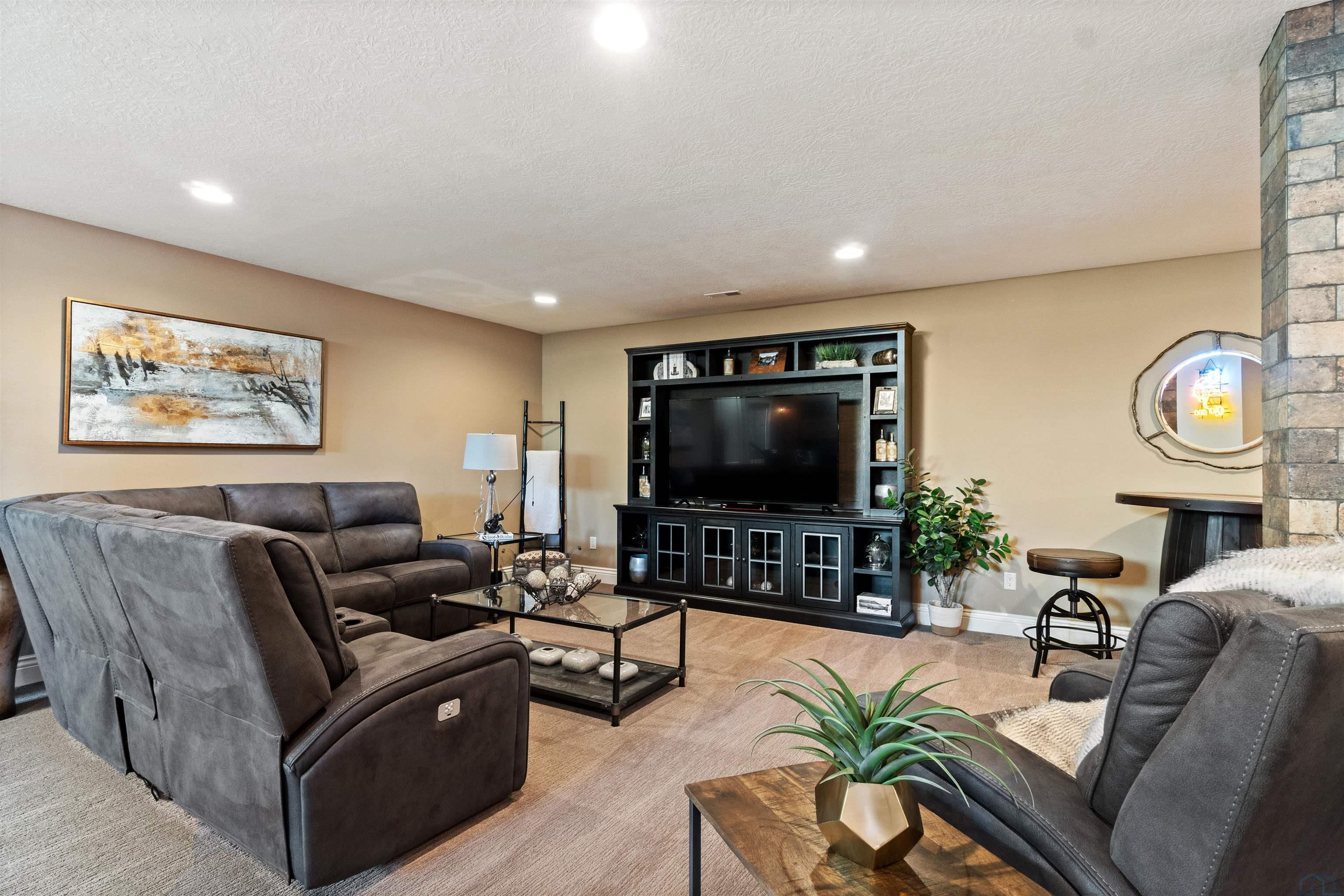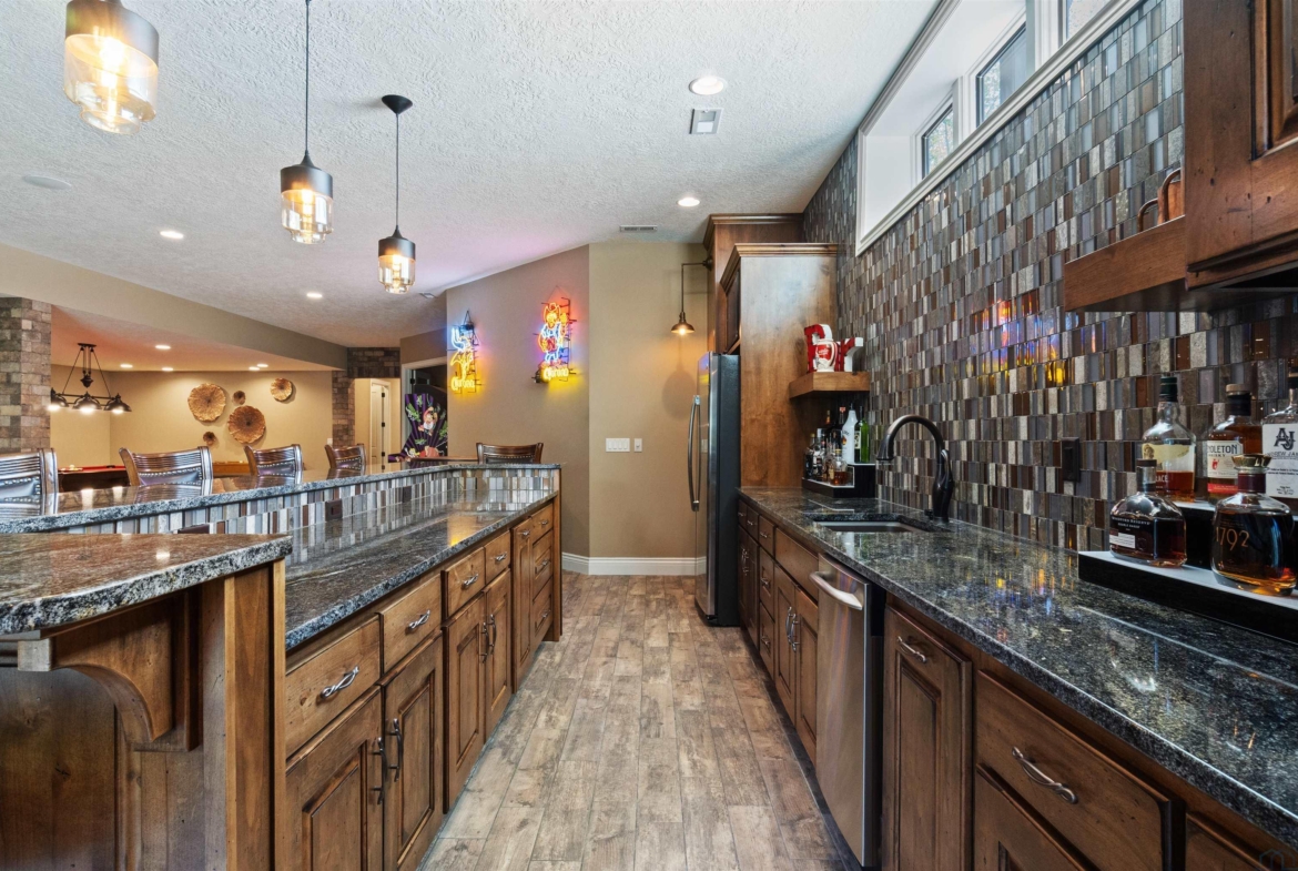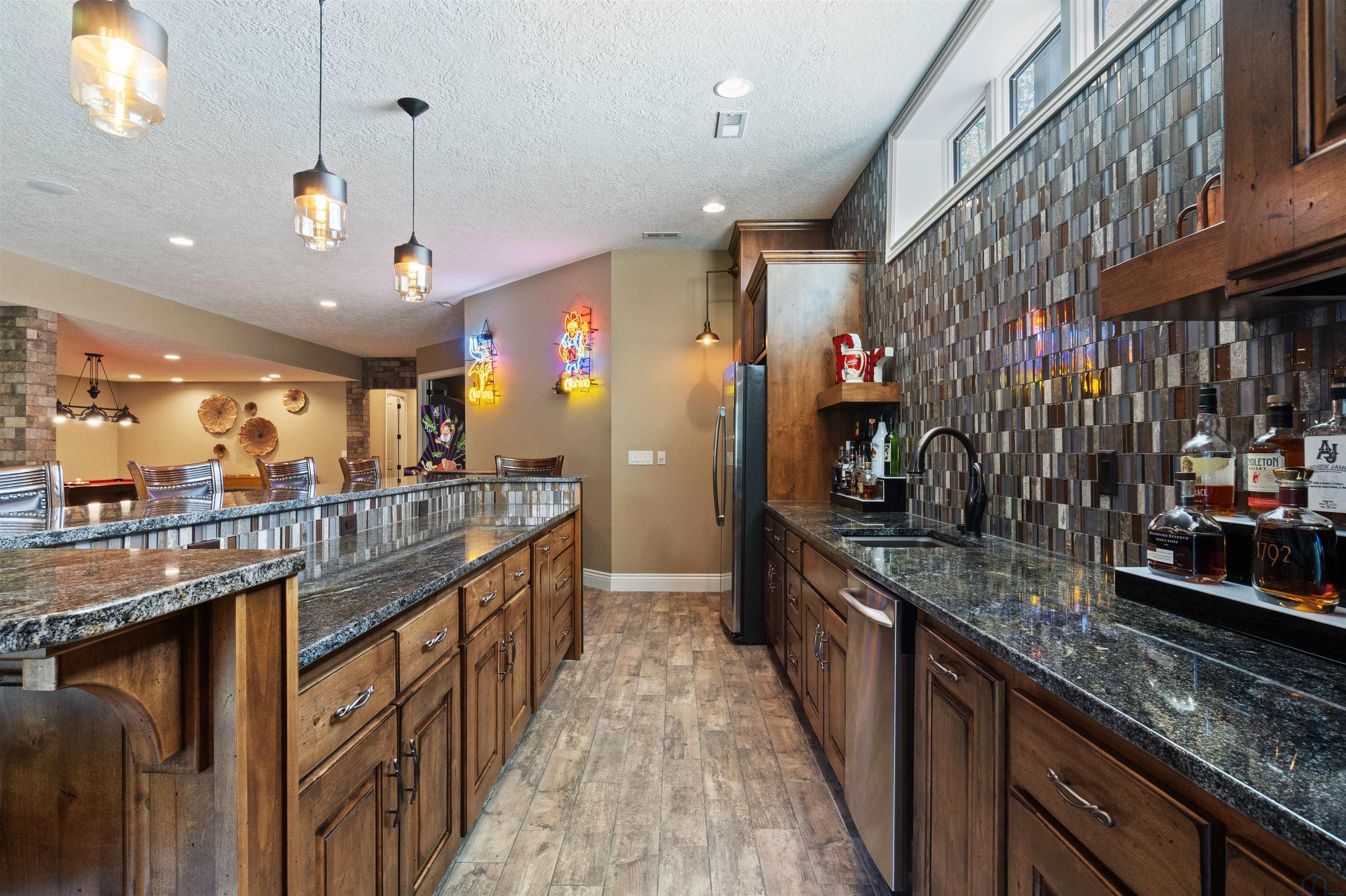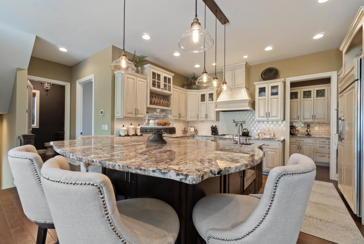 6 BD 7 BA 1 1/2 Story Home located in Dakota Dunes directly on Hole 15!!! Walk in to this truly amazing custom built home with close to 8,000 sq ft of finished, detailed perfection! Design is in the detail on this one!! Beautiful and functional around every corner! Detailed to perfection and spotlessly cared for through and through! This beautiful home with amazing views and great elevation is located just off The Dakota Dunes Golf Course but has plenty of privacy. The spacious main floor includes formal living and dining space, gourmet kitchen with large island and pass through pantry, large family room, master suite to die for with luxurious bath and large closet. The laundry/drop zone off the garage is well thought out, spacious and very well organized! The upper level has an additional living area, two mini suites and a convenient second laundry room. Just when you think you’ve seen it all, the lower level has a full bar, entertainment area, family room, workout room, two more bedrooms and tons of storage space. The resort like backyard is a get away in itself!! 20×46 in ground, salt water pool and outdoor cabana with bath and every amenity you can think of!