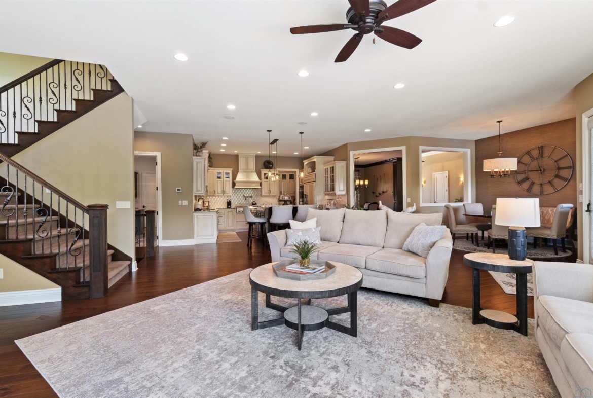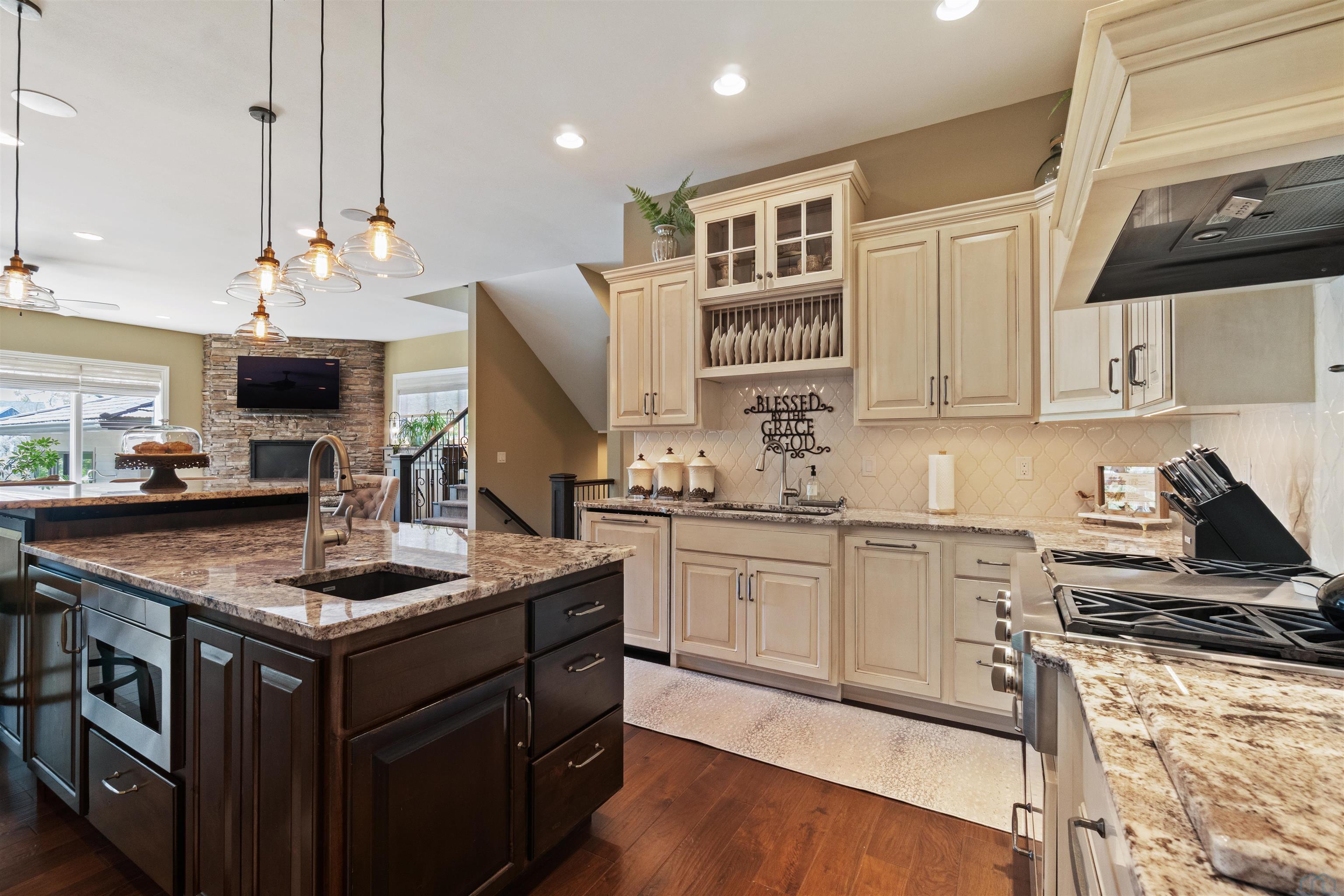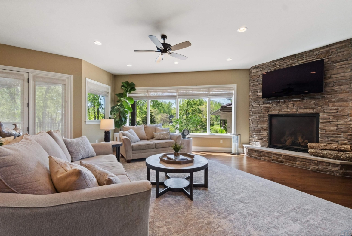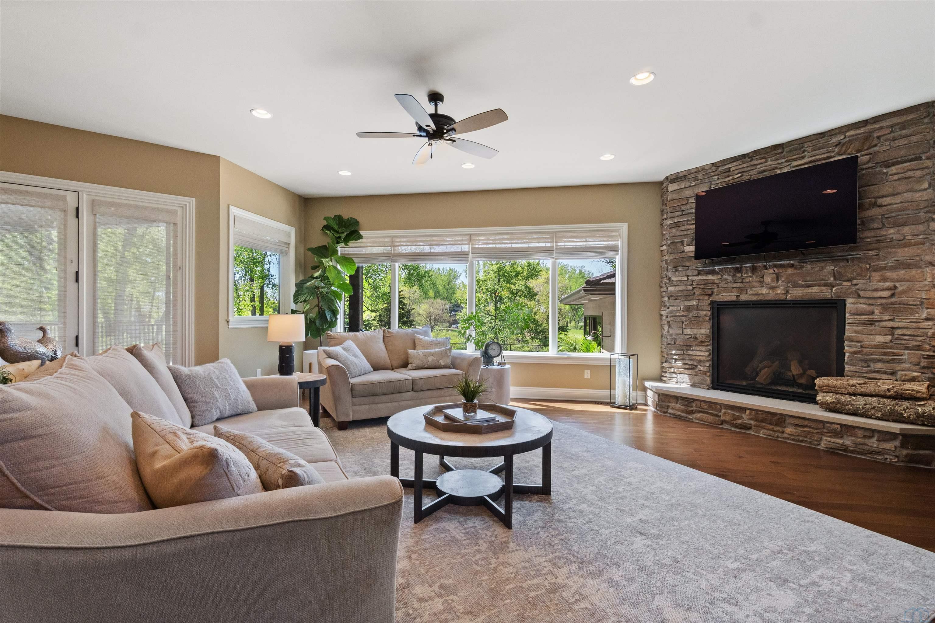 6 BD 7 BA 1 1/2 Story Home located in Dakota Dunes directly on Hole 15!!! Walk in to this truly amazing custom built home with close to 8,000 sq ft of finished, detailed perfection! Design is in the detail on this one!! Beautiful and functional around every corner! Detailed to perfection and spotlessly cared for through and through! This beautiful home with amazing views and great elevation is located just off The Dakota Dunes Golf Course but has plenty of privacy. The spacious main floor includes formal living and dining space, gourmet kitchen with large island and pass through pantry, large family room, master suite to die for with luxurious bath and large closet. The laundry/drop zone off the garage is well thought out, spacious and very well organized! The upper level has an additional living area, two mini suites and a convenient second laundry room. Just when you think you’ve seen it all, the lower level has a full bar, entertainment area, family room, workout room, two more bedrooms and tons of storage space. The resort like backyard is a get away in itself!! 20×46 in ground, salt water pool and outdoor cabana with bath and every amenity you can think of!