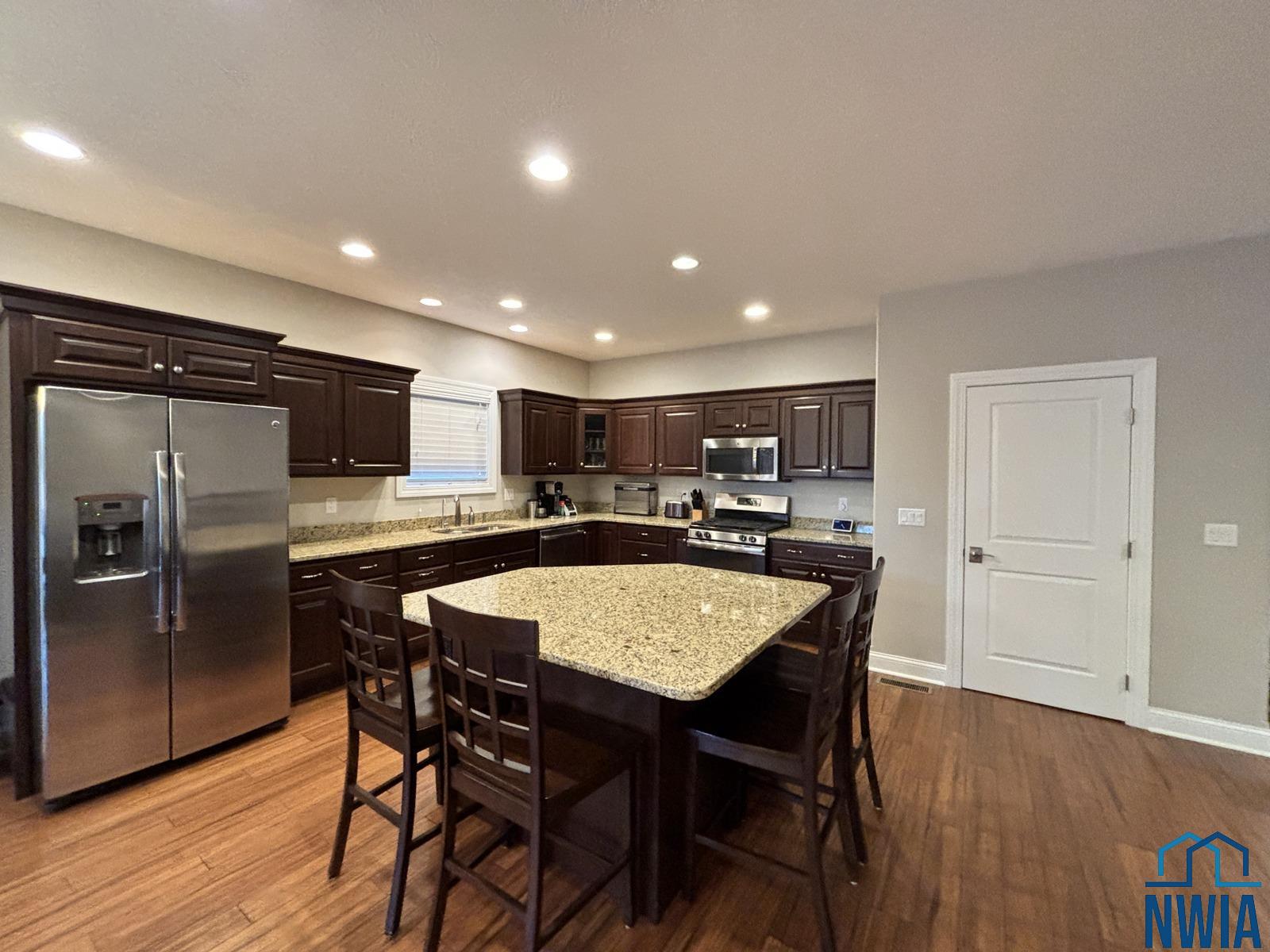 | Kitchen | Main | 17x15 | Granite, stainless, wood flooring, island, pantry |